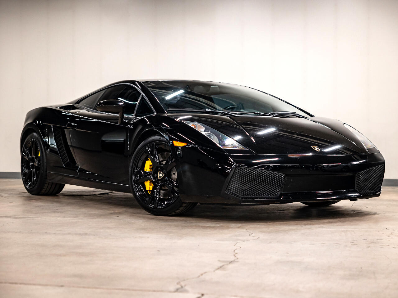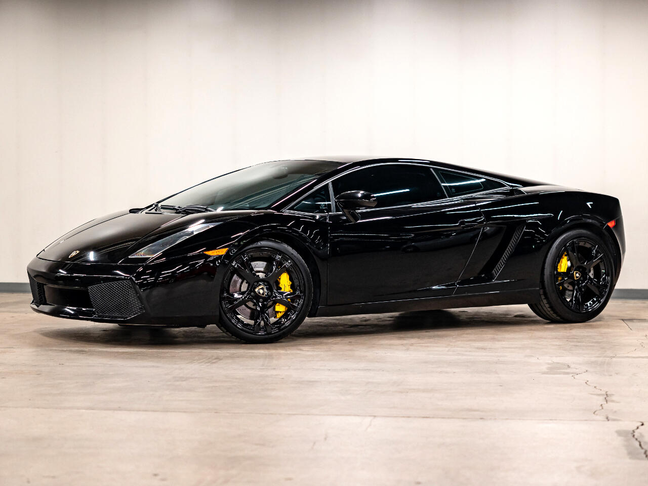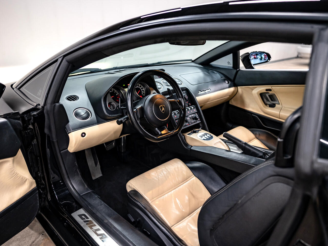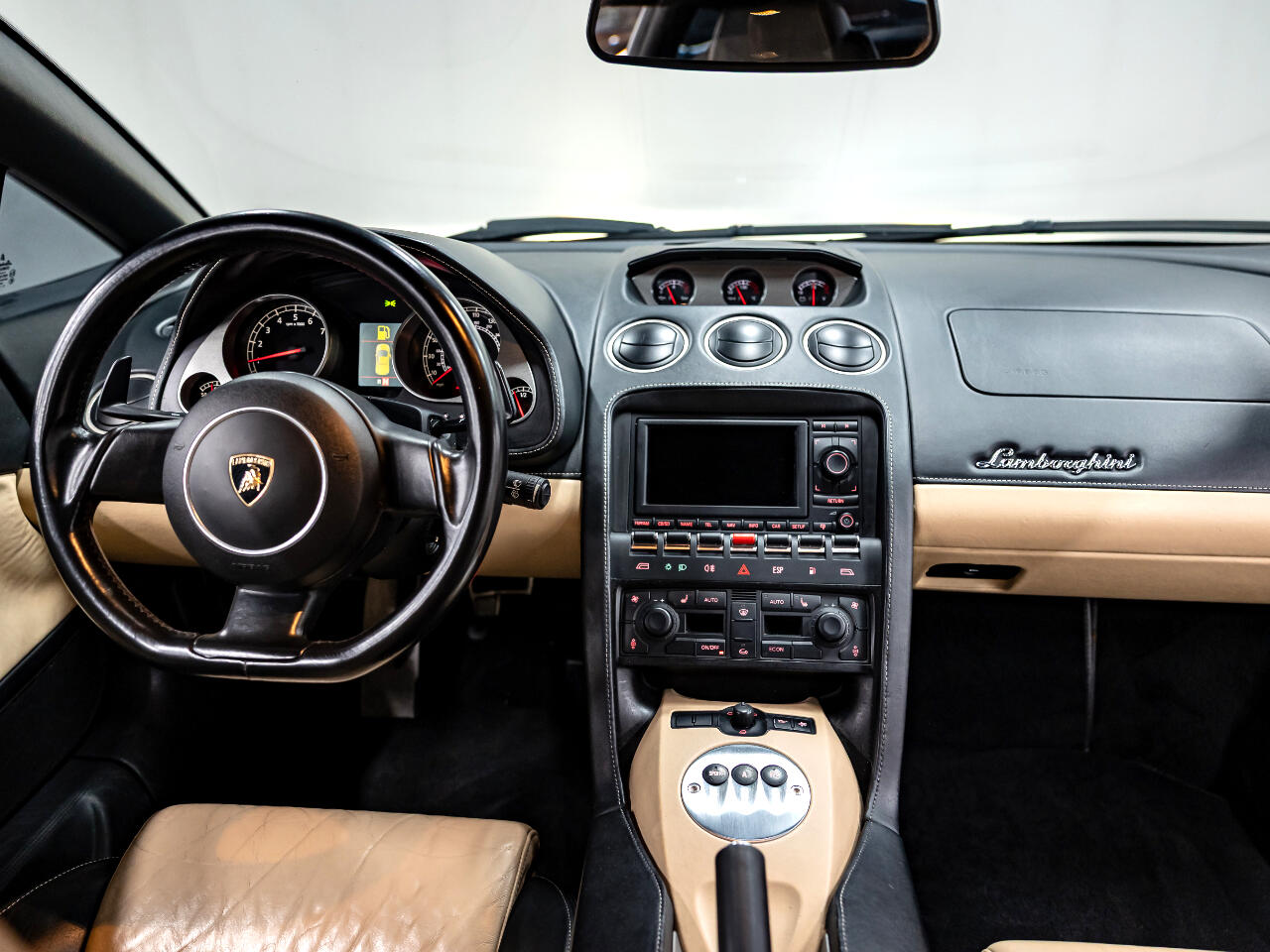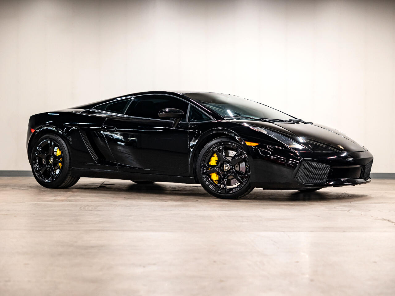 This 2006 Lamborghini Gallardo Coupe is finished in Nero Noctis over a black and beige bi-color leather interior. Power comes from a 5.0L V10 producing 493 hp and 376 lb-ft of torque, sent to all four wheels through a 6-speed “E-Gear” automated manual transmission.