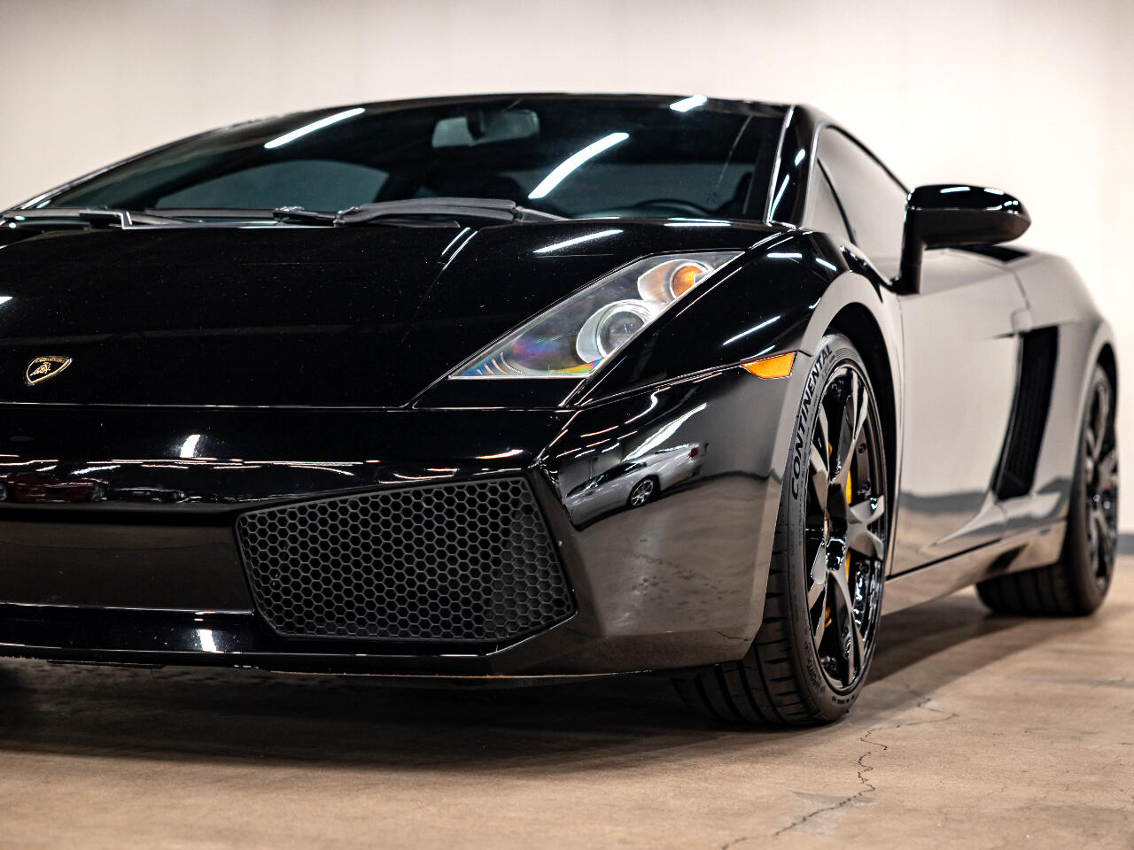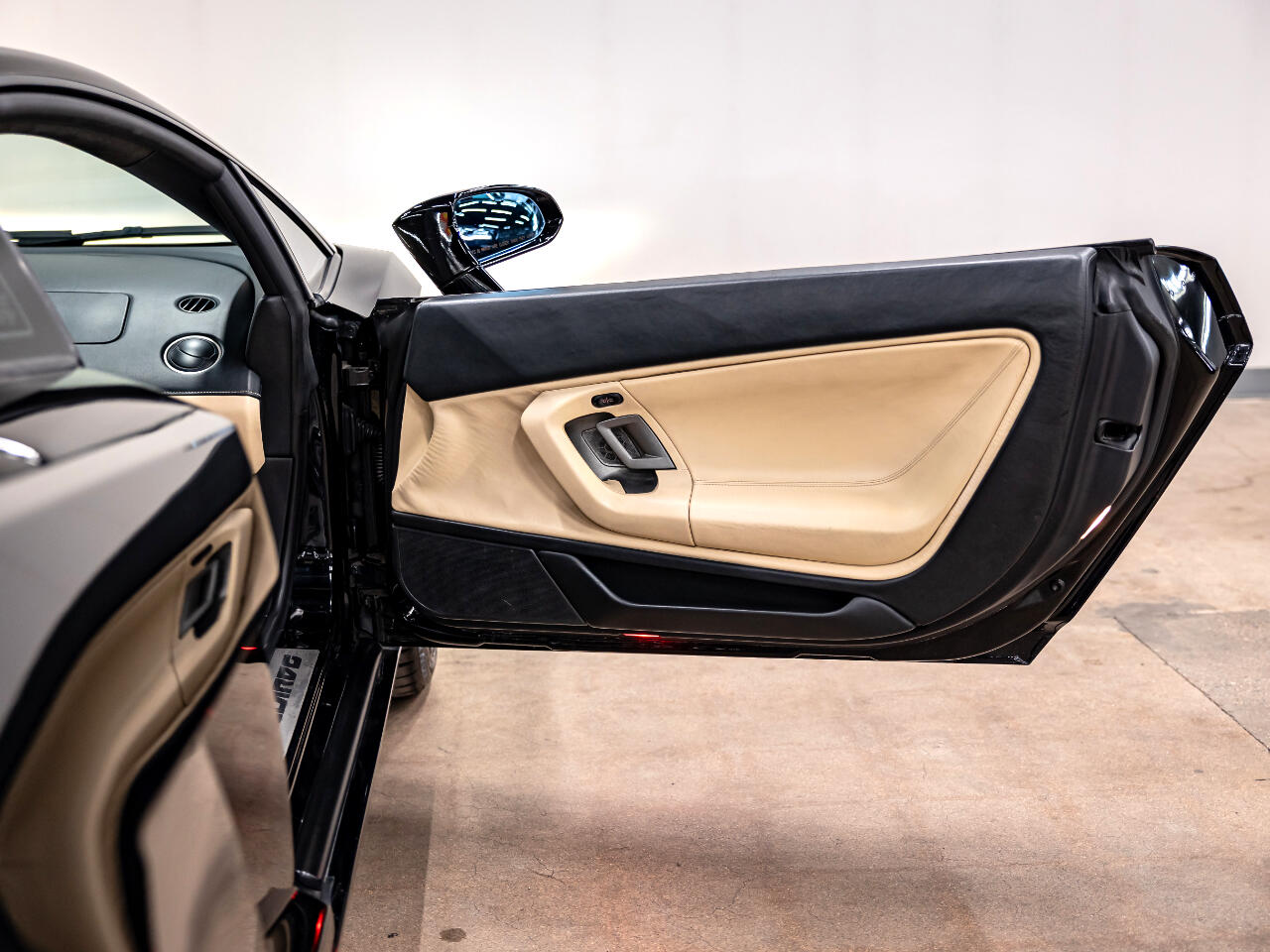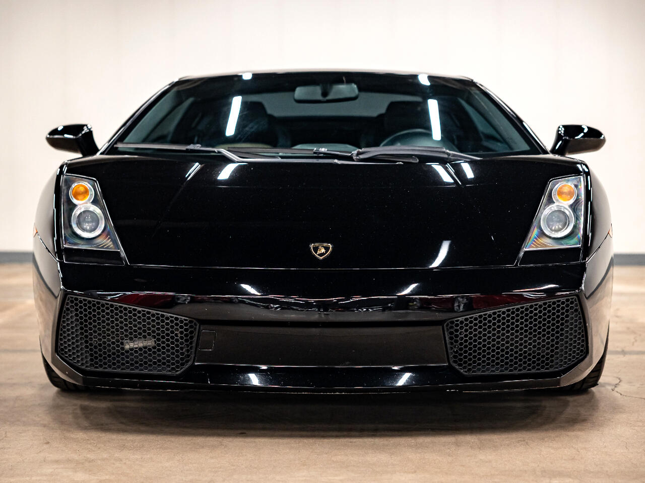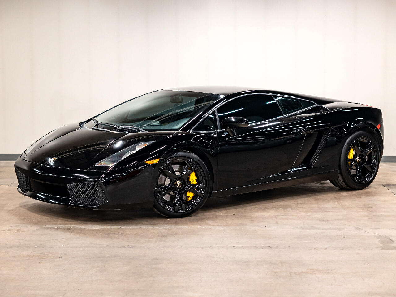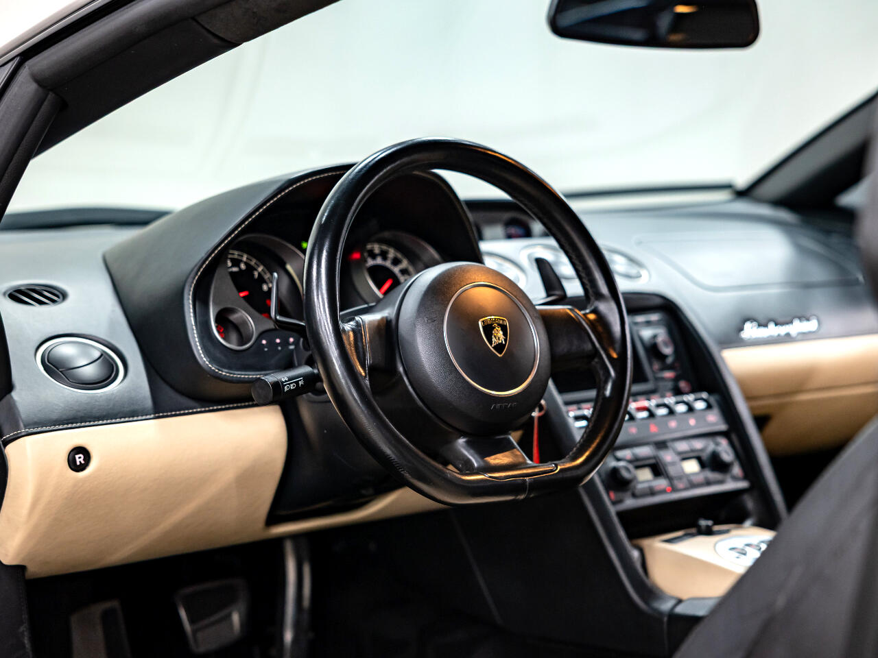 This 2006 Lamborghini Gallardo Coupe is finished in Nero Noctis over a black and beige bi-color leather interior. Power comes from a 5.0L V10 producing 493 hp and 376 lb-ft of torque, sent to all four wheels through a 6-speed “E-Gear” automated manual transmission.
