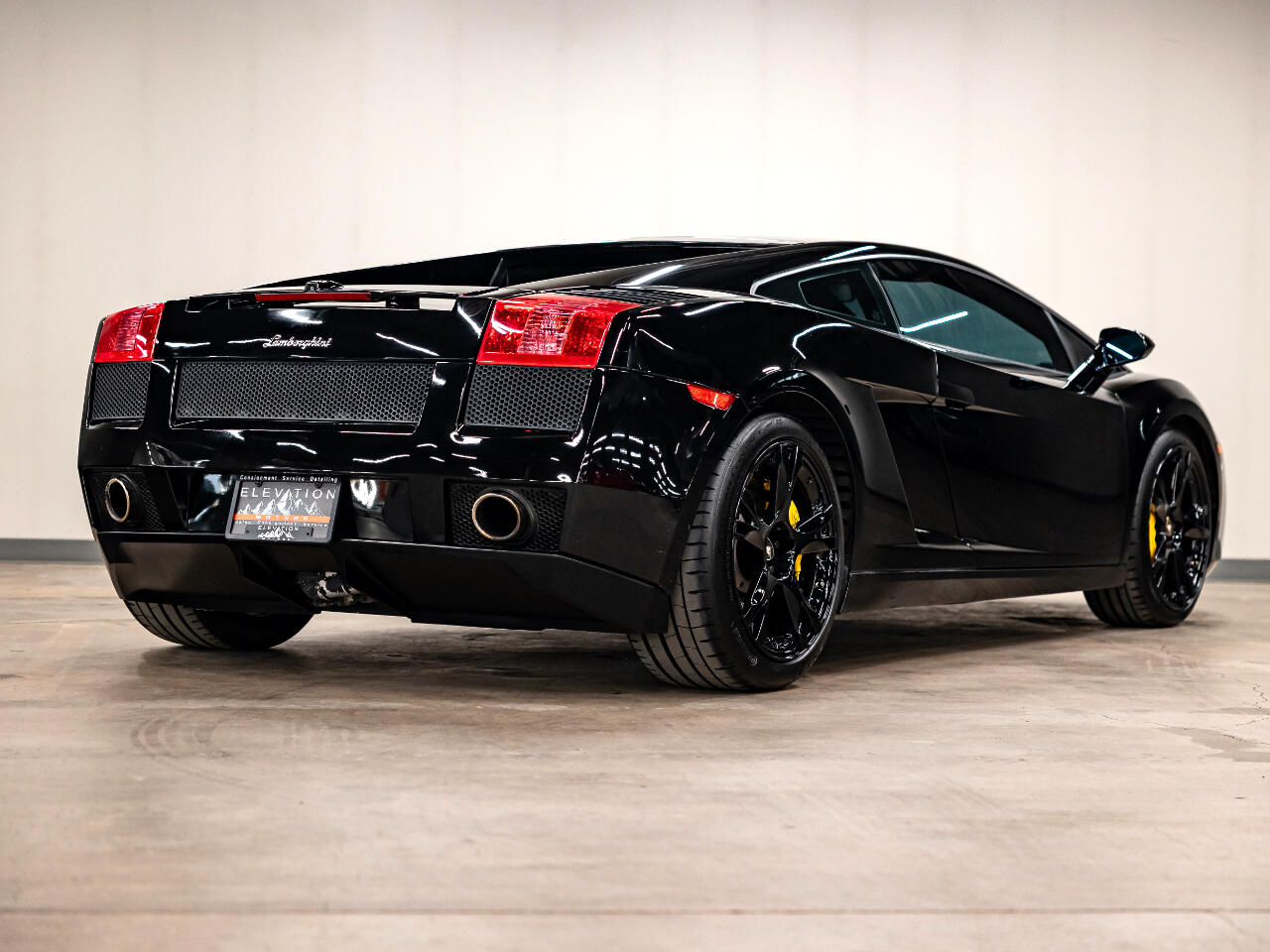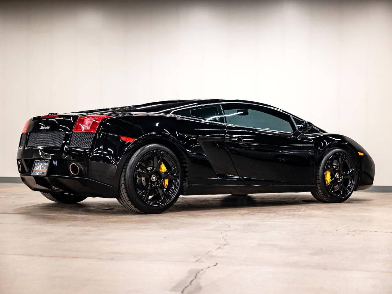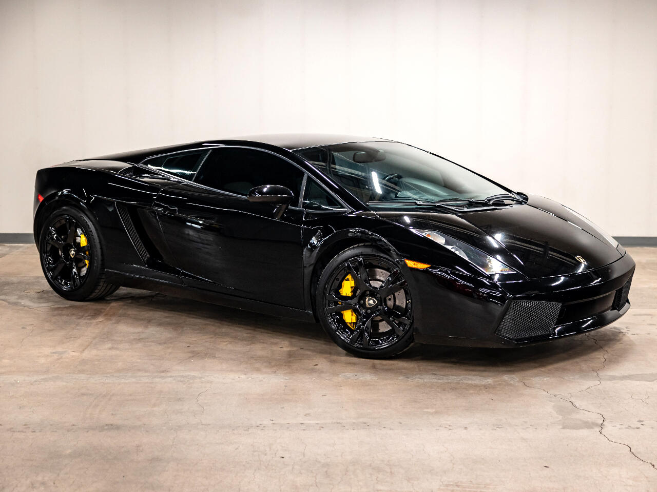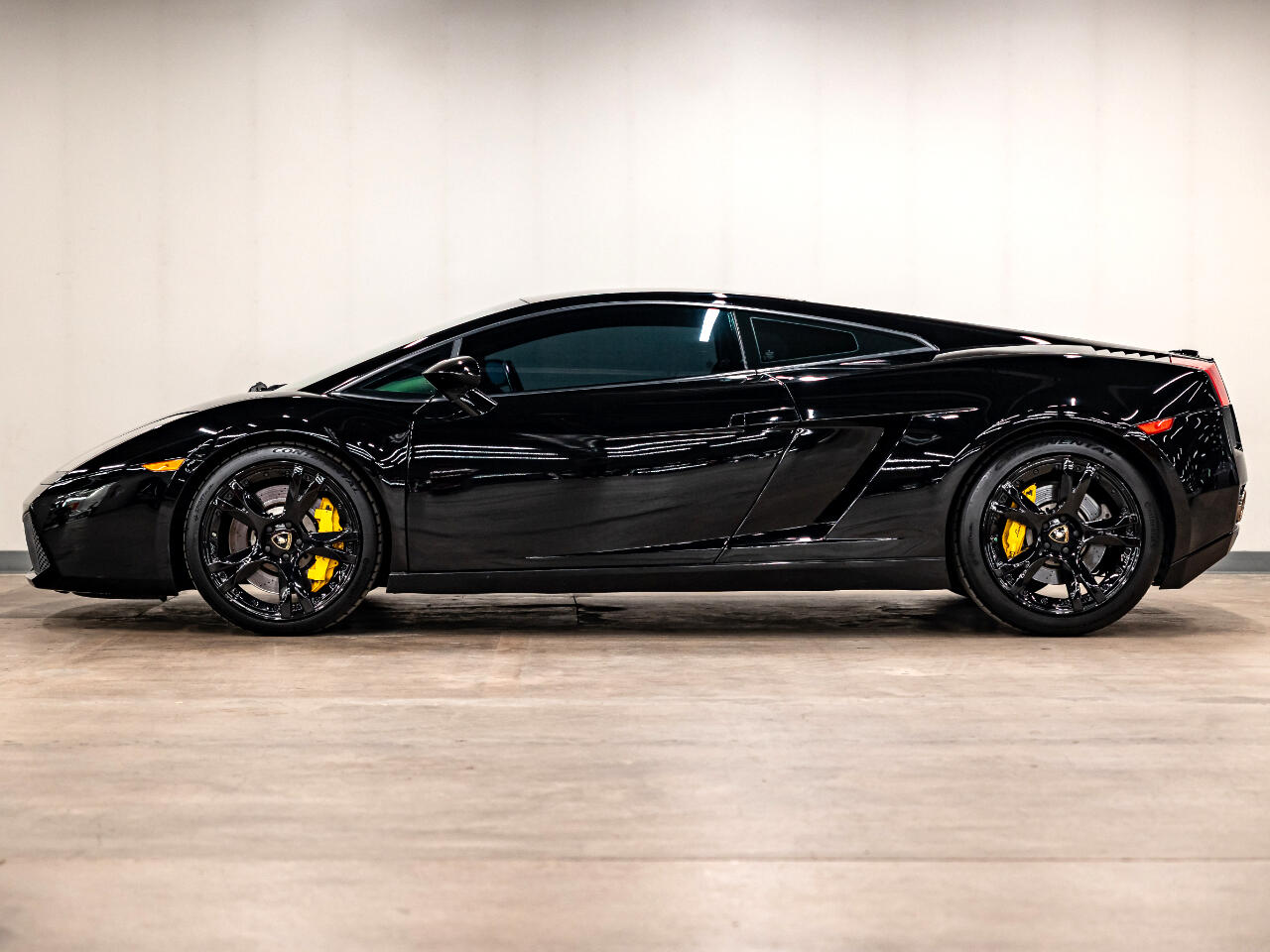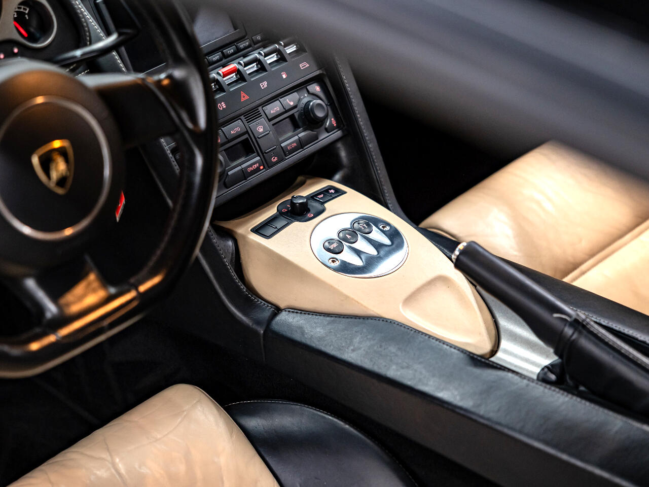 This 2006 Lamborghini Gallardo Coupe is finished in Nero Noctis over a black and beige bi-color leather interior. Power comes from a 5.0L V10 producing 493 hp and 376 lb-ft of torque, sent to all four wheels through a 6-speed “E-Gear” automated manual transmission.