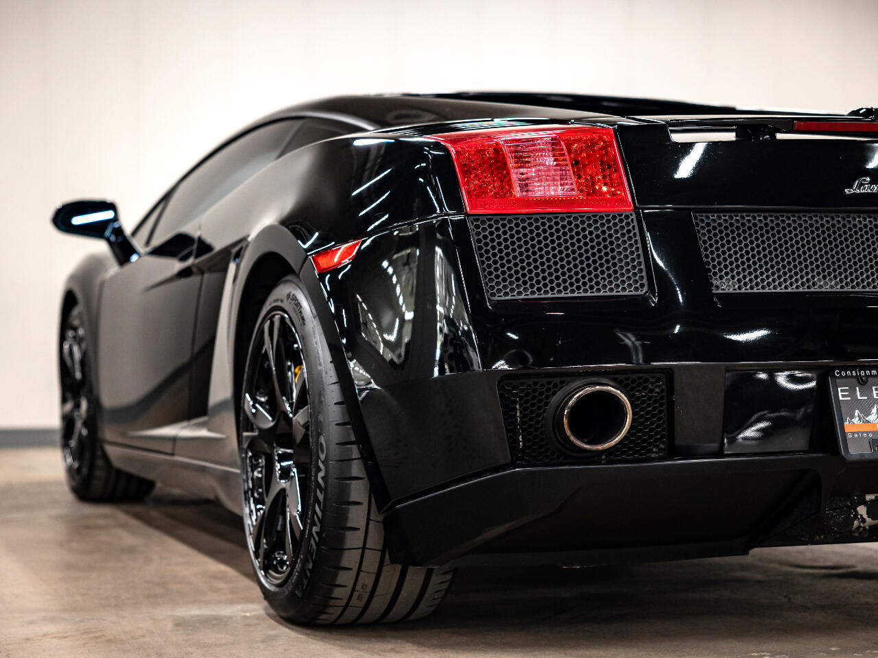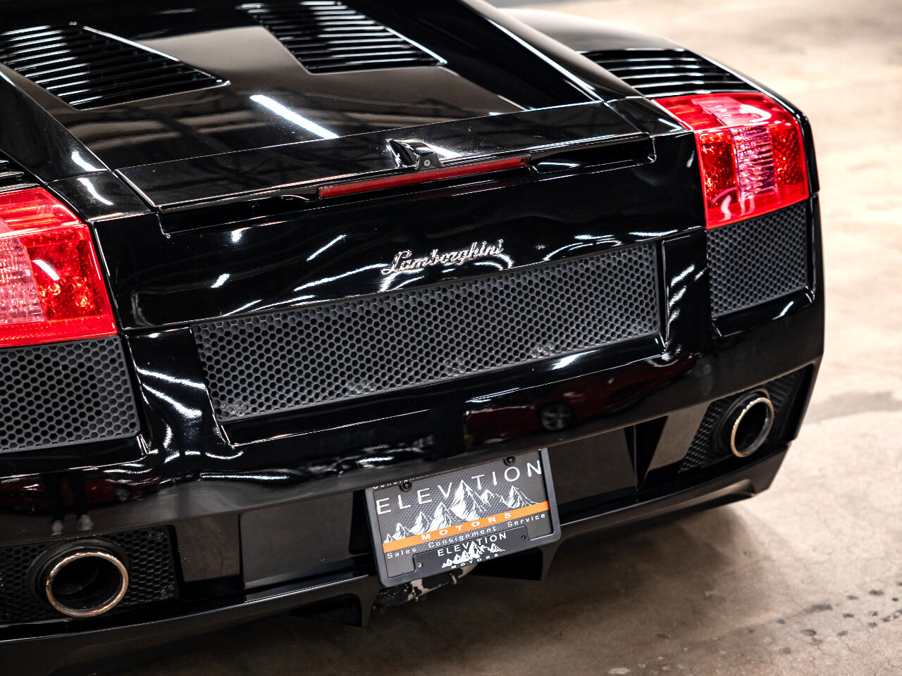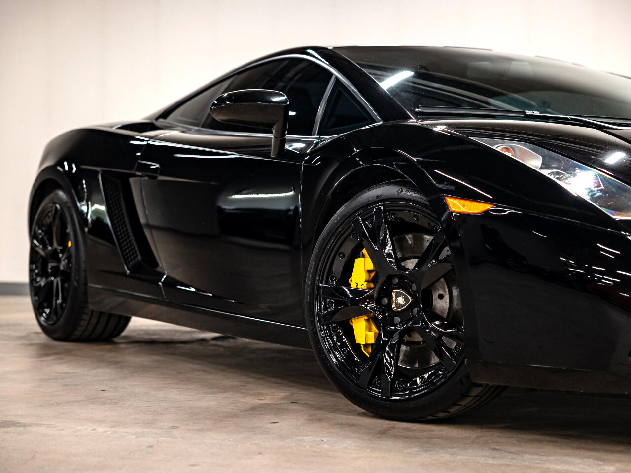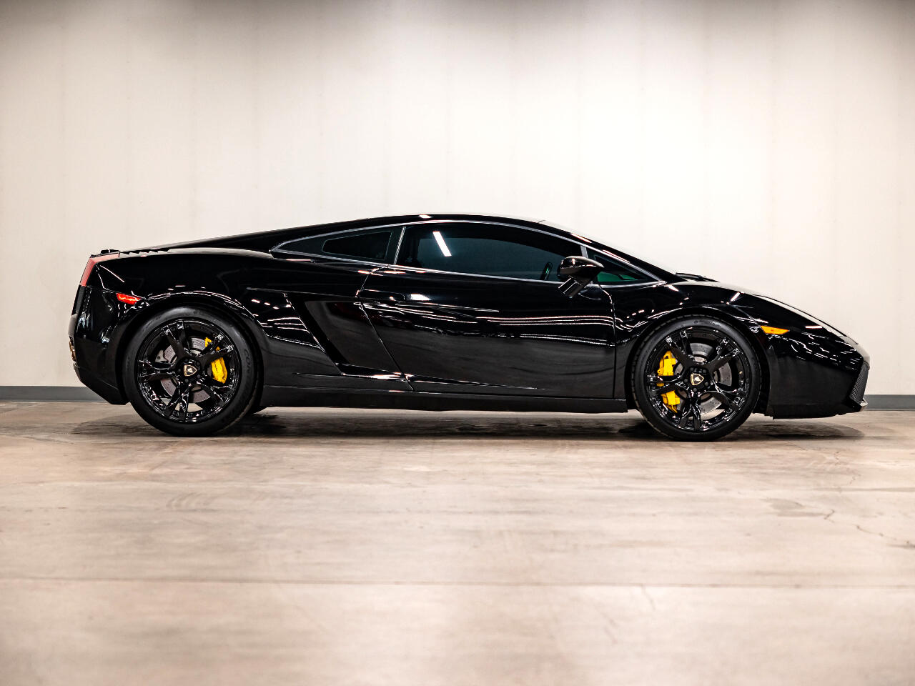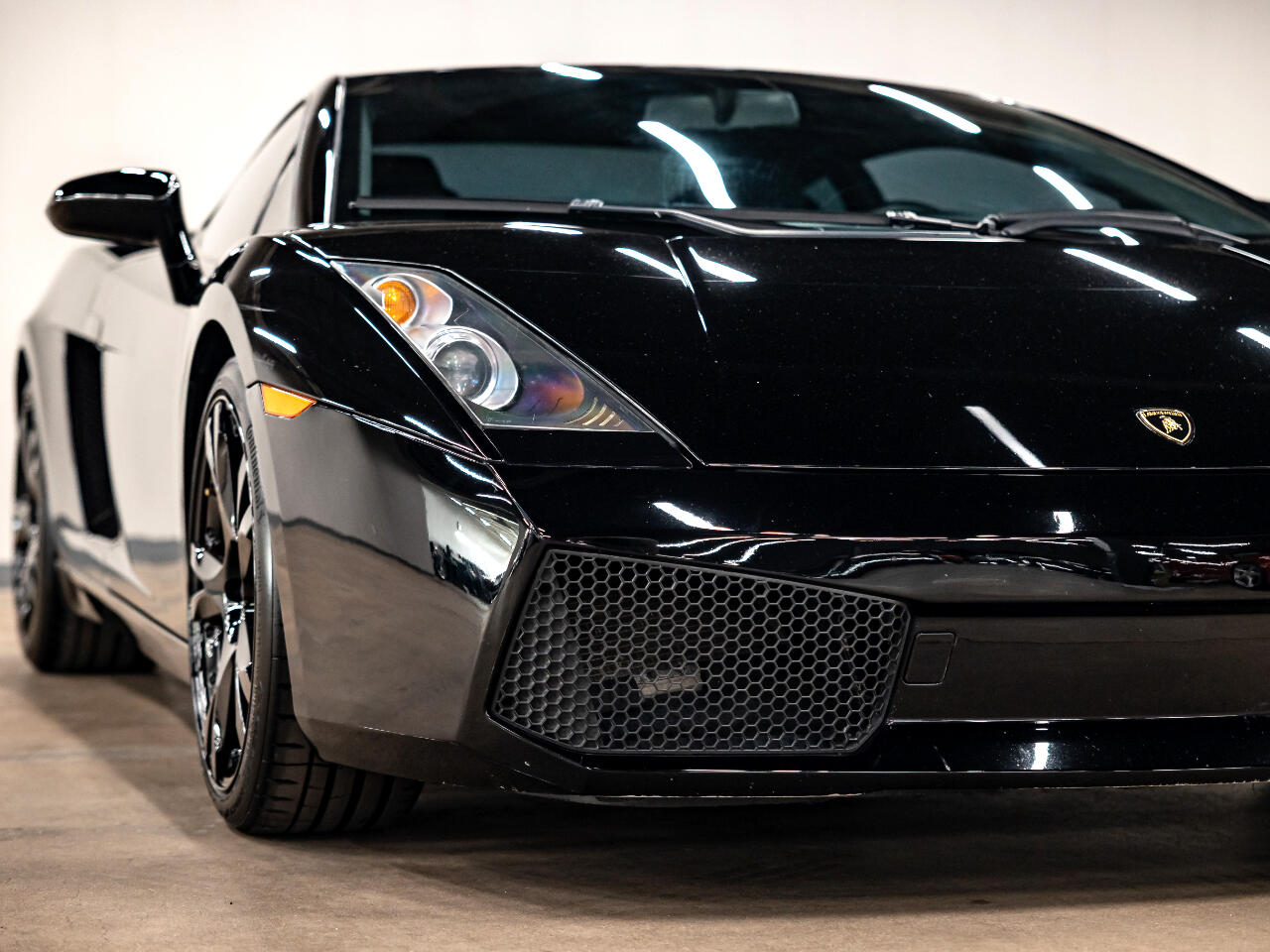 This 2006 Lamborghini Gallardo Coupe is finished in Nero Noctis over a black and beige bi-color leather interior. Power comes from a 5.0L V10 producing 493 hp and 376 lb-ft of torque, sent to all four wheels through a 6-speed “E-Gear” automated manual transmission.