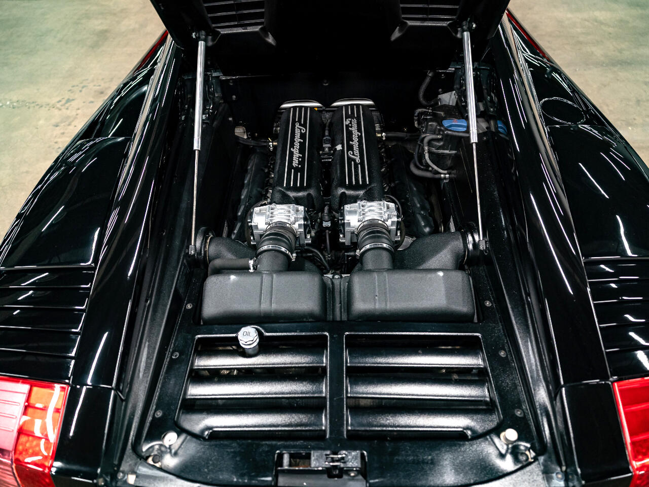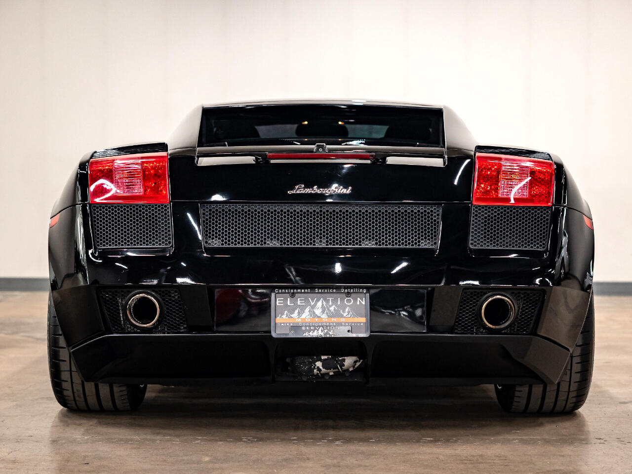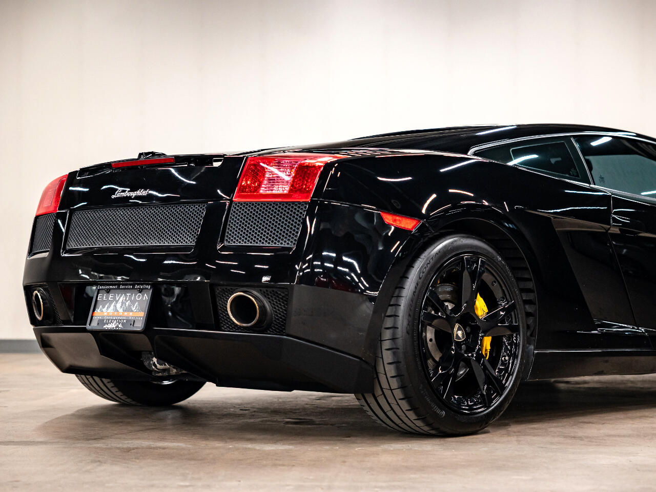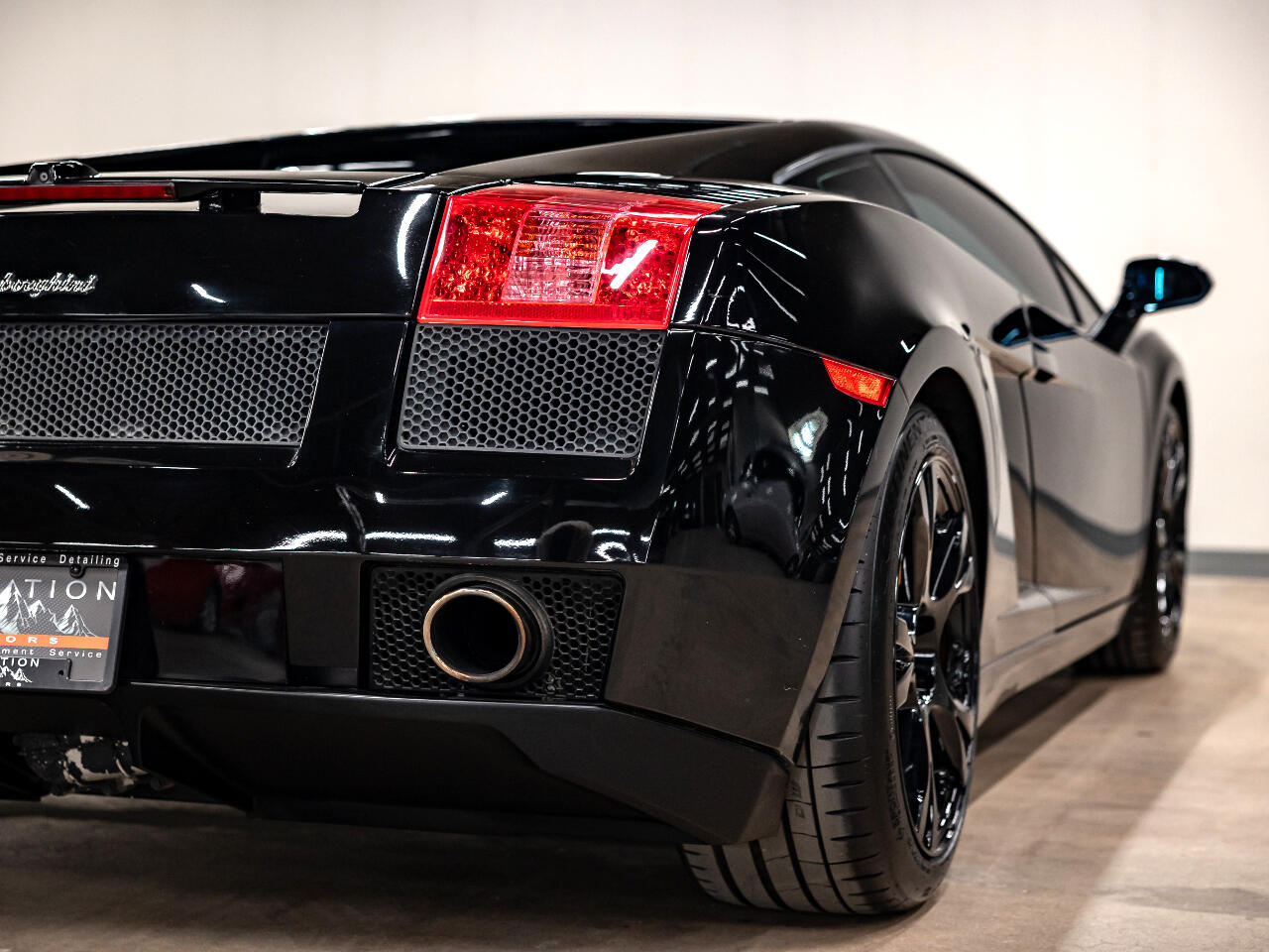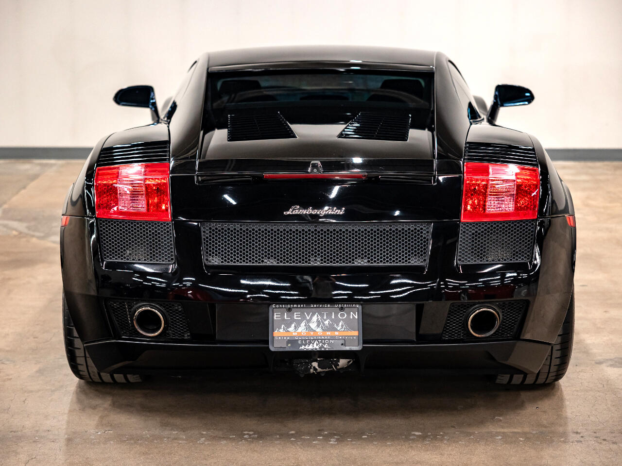 This 2006 Lamborghini Gallardo Coupe is finished in Nero Noctis over a black and beige bi-color leather interior. Power comes from a 5.0L V10 producing 493 hp and 376 lb-ft of torque, sent to all four wheels through a 6-speed “E-Gear” automated manual transmission.
