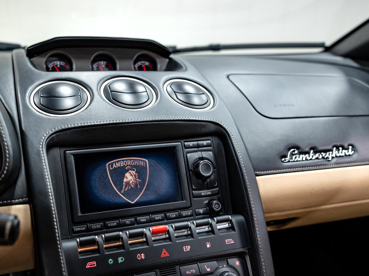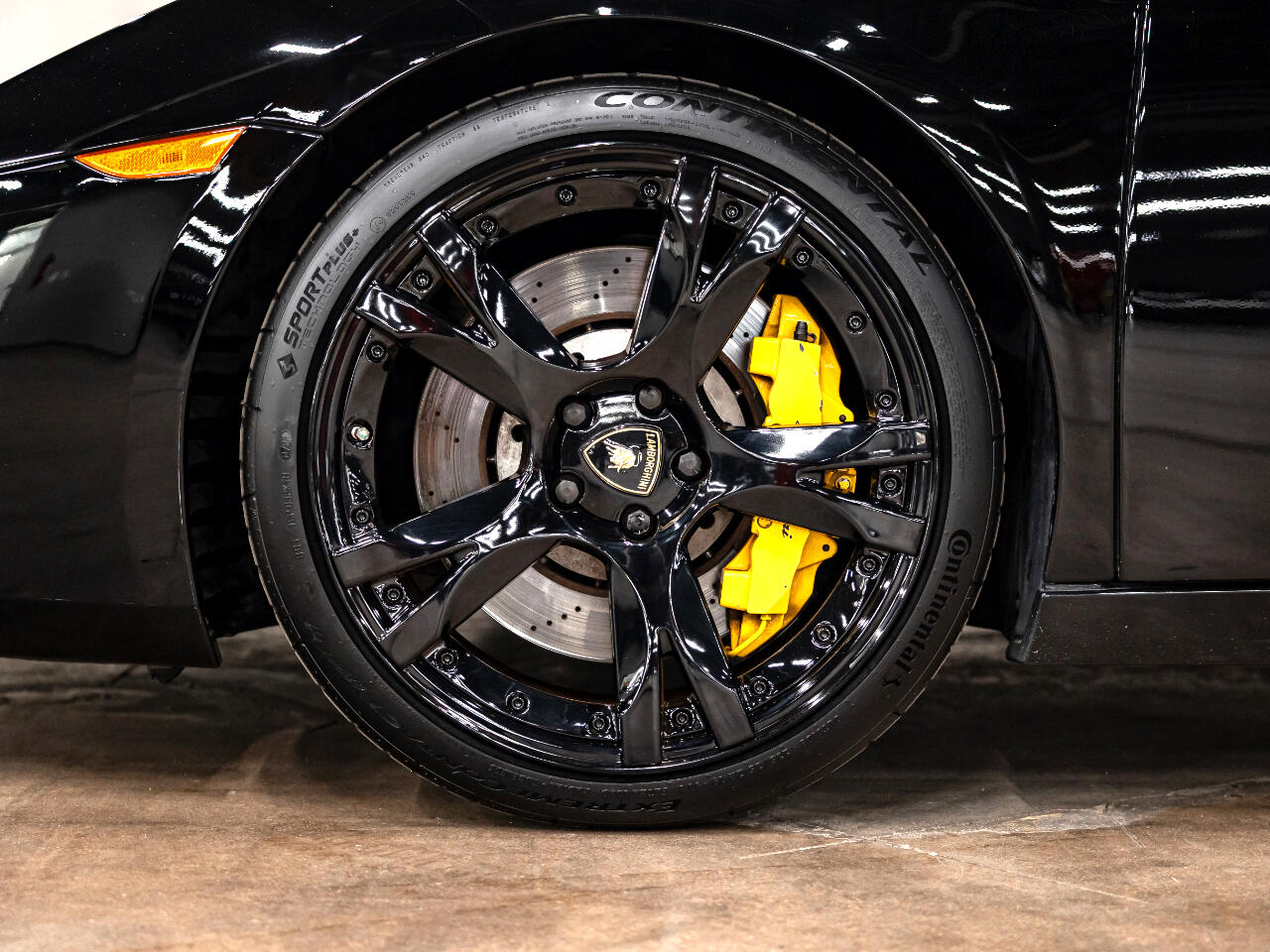 This Gallardo comes well-equipped with features including a front axle lift system, power-adjustable heated seats, automated climate control, and a rearview camera. It currently rides on black 19-inch wheels wrapped in new Continental ExtremeContact tires.