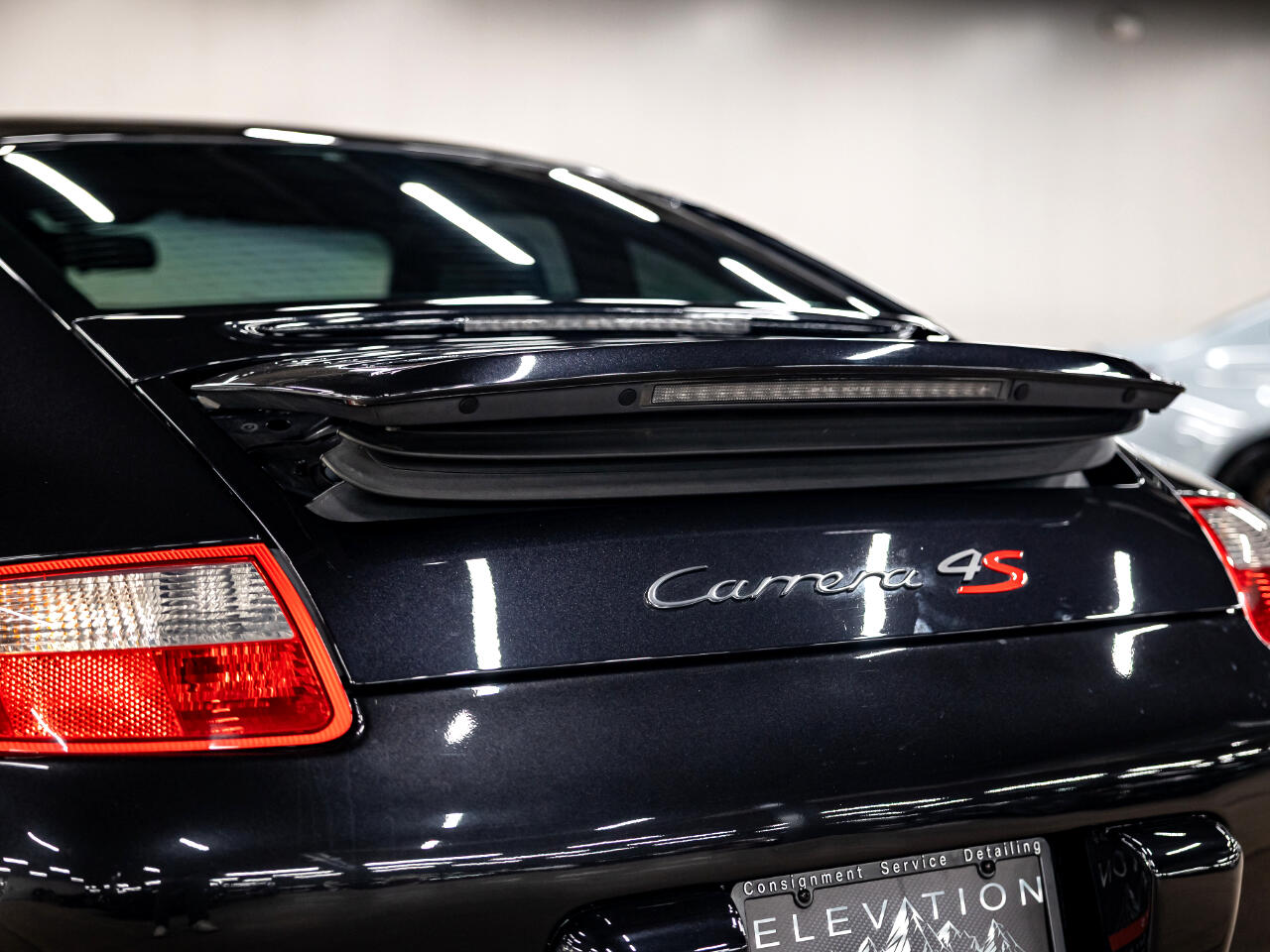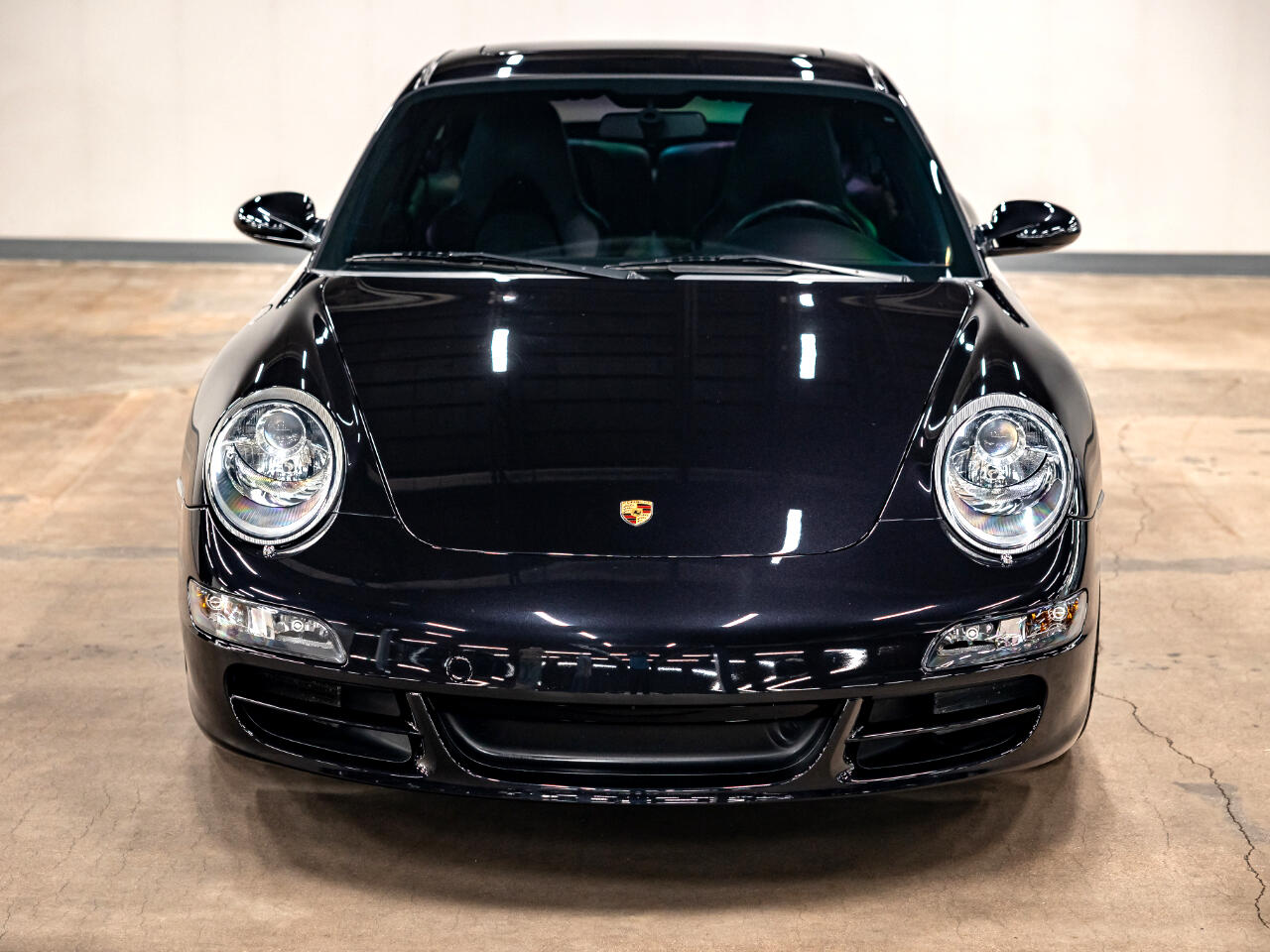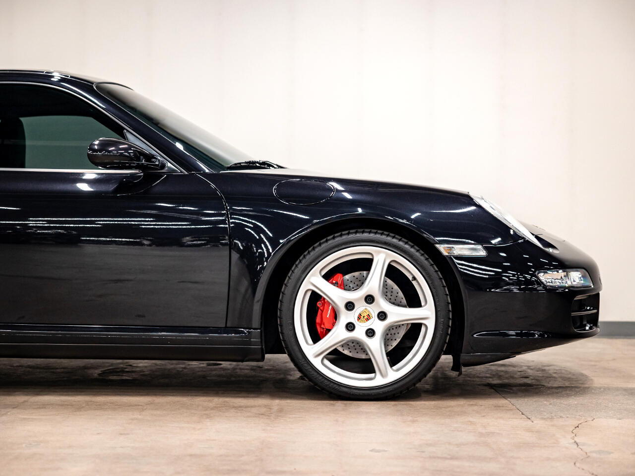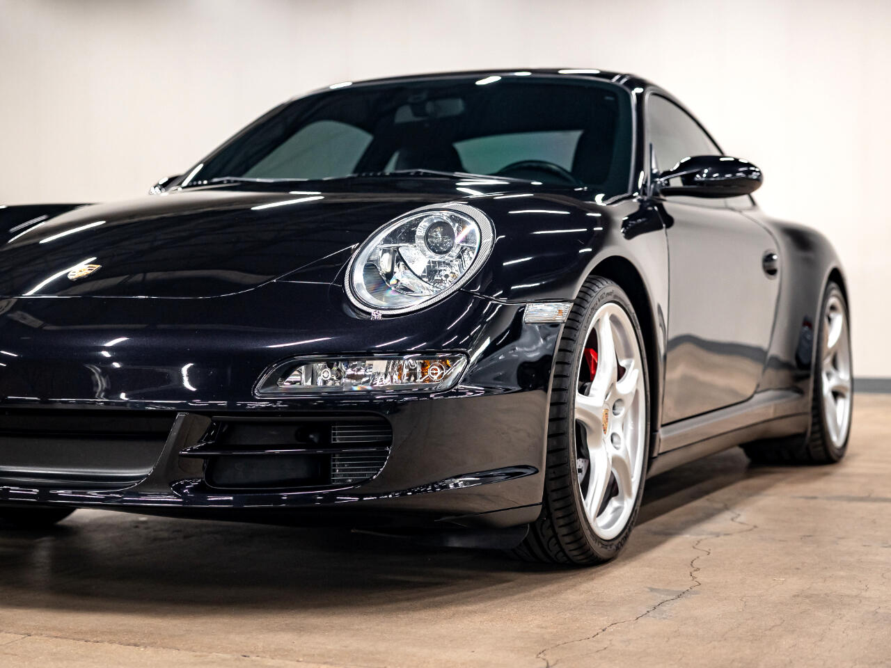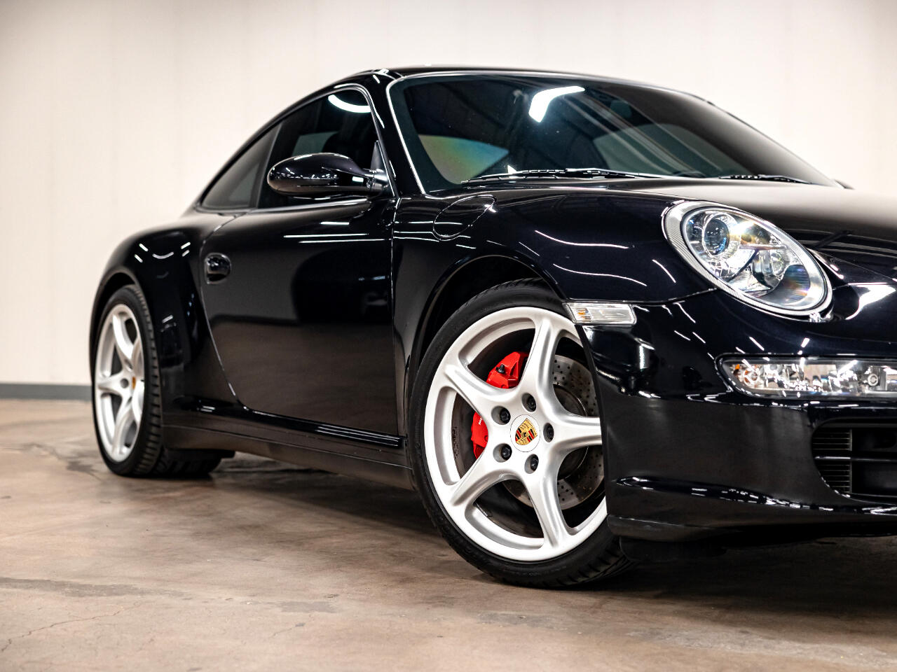 2006 Porsche 911 Carrera 4S finished in Basalt Black over Black Leather. Power comes from a 3.8L flat-six producing 355 horsepower and 295 lb-ft of torque, sent to all four wheels through a 6-speed manual transmission.