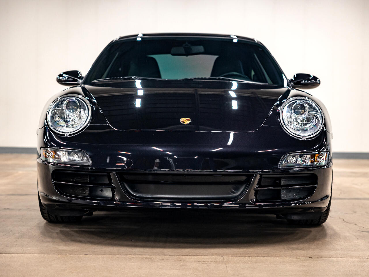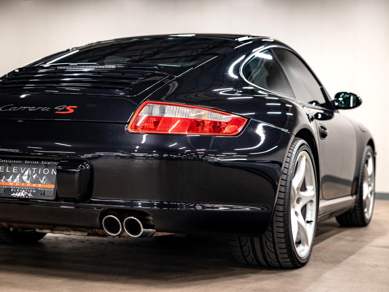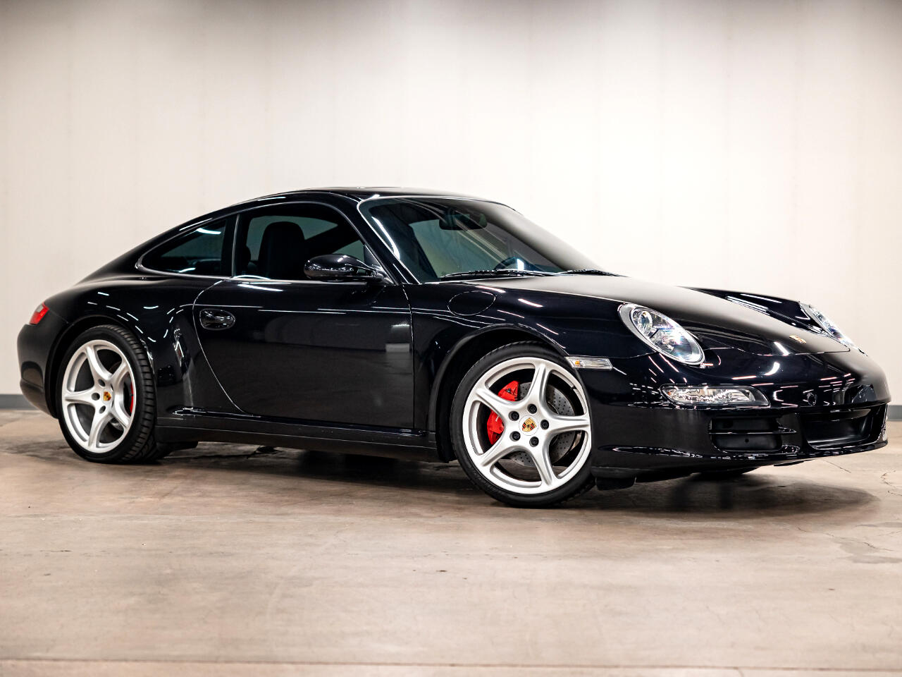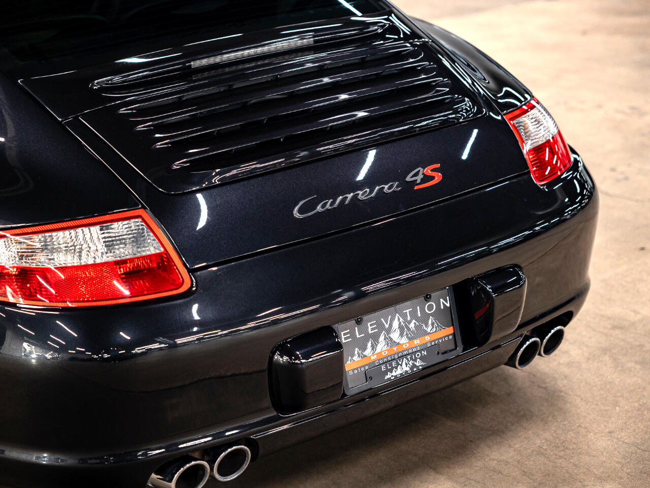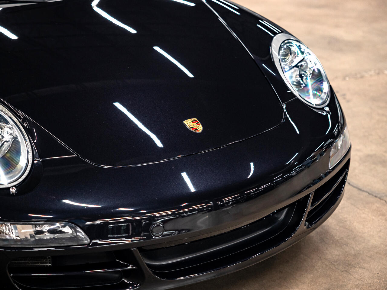 2006 Porsche 911 Carrera 4S finished in Basalt Black over Black Leather. Power comes from a 3.8L flat-six producing 355 horsepower and 295 lb-ft of torque, sent to all four wheels through a 6-speed manual transmission.