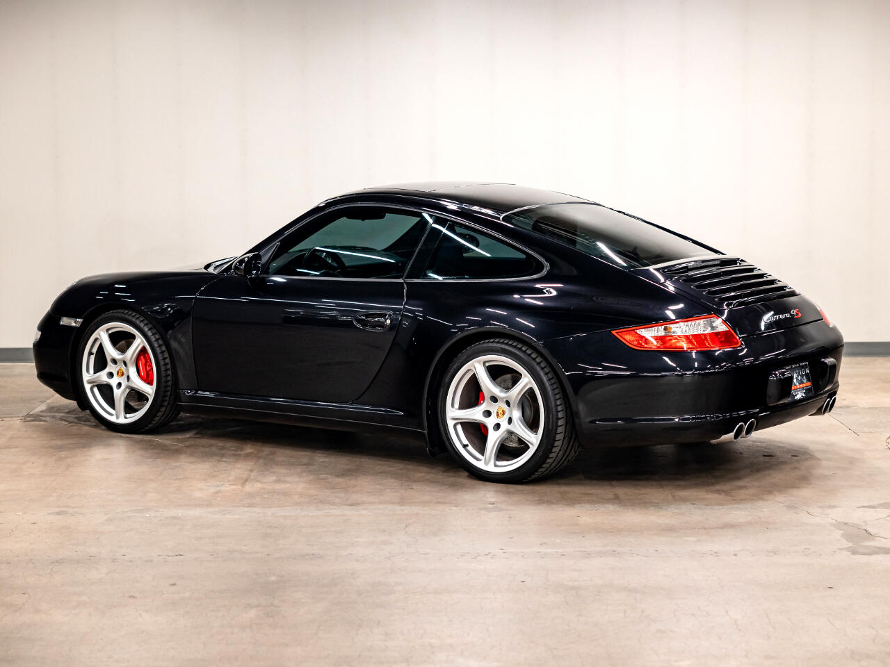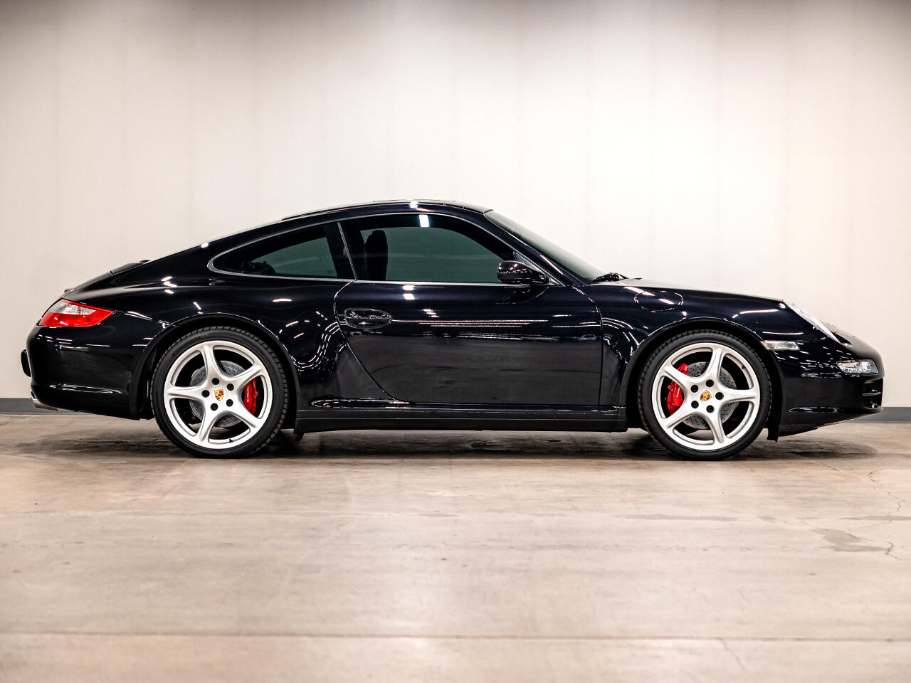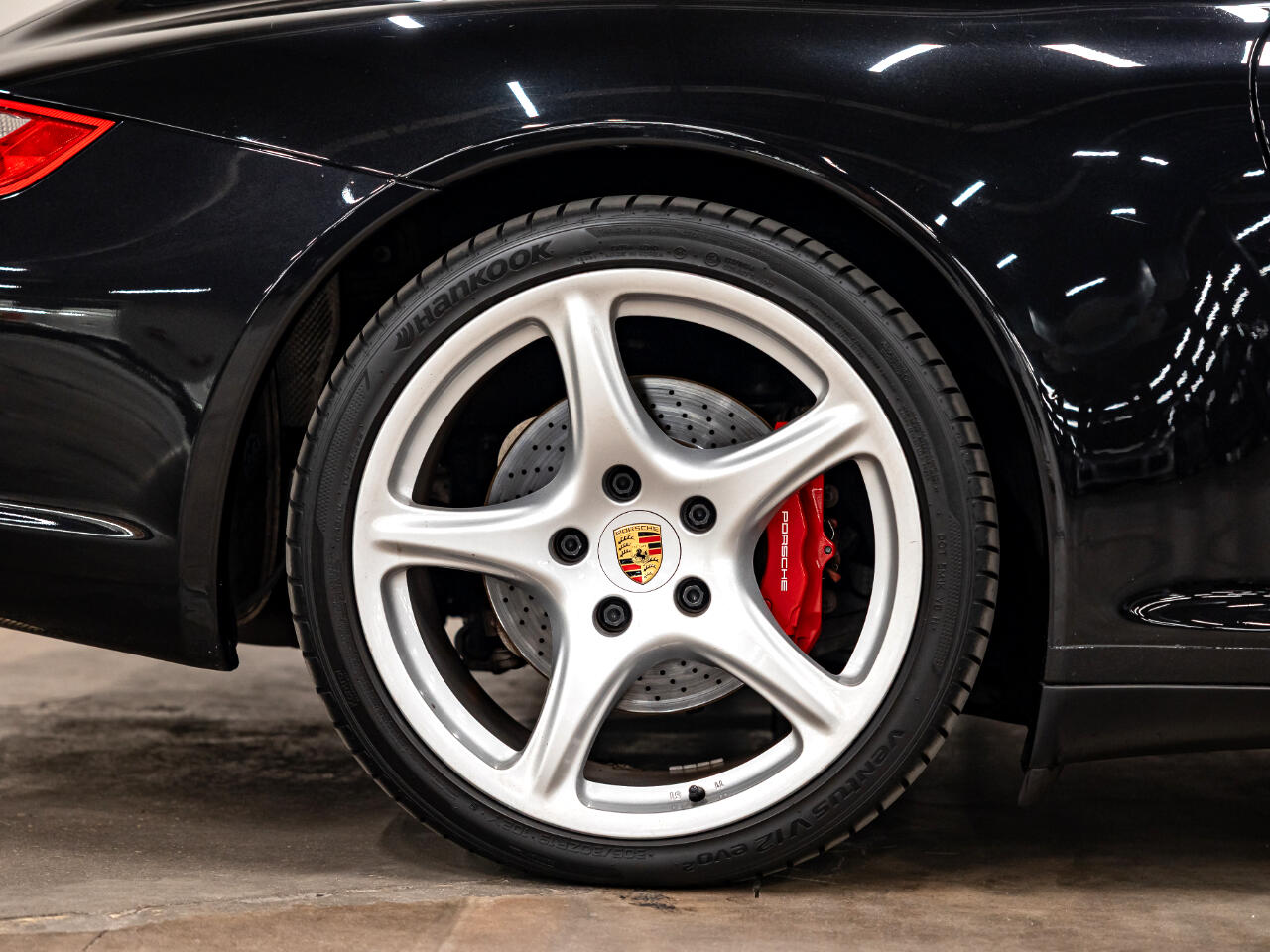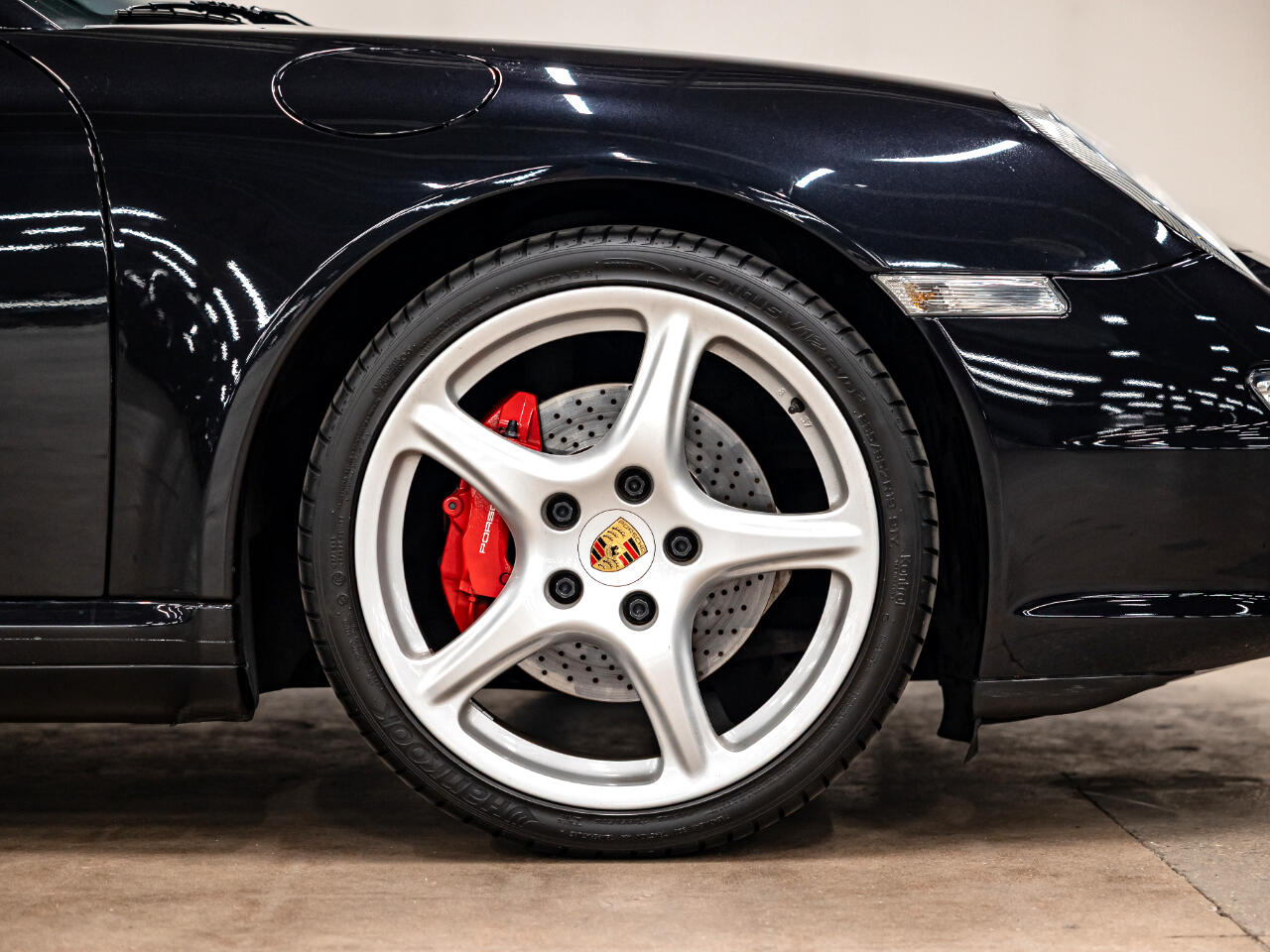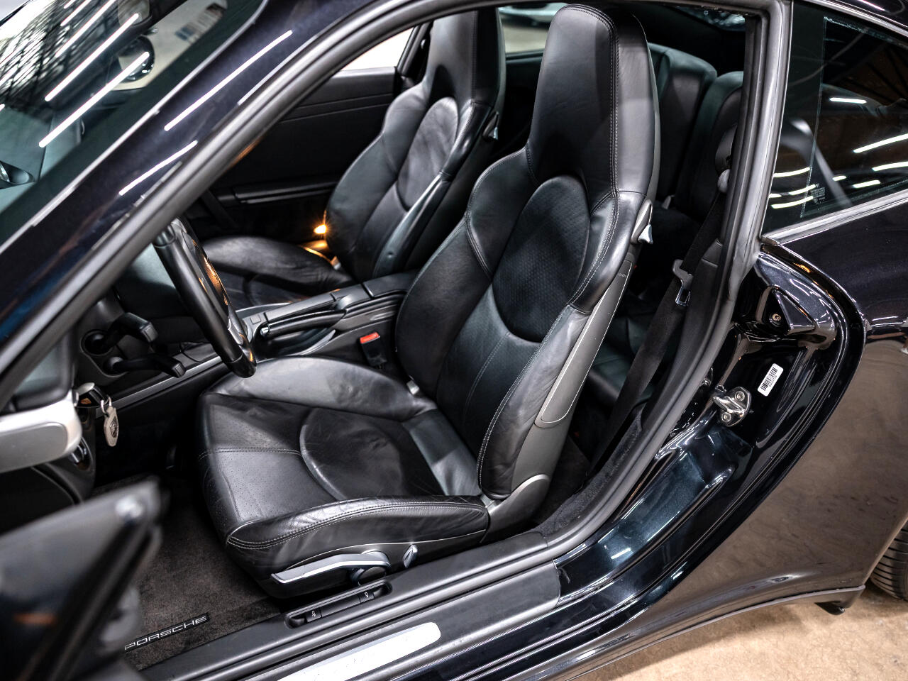 2006 Porsche 911 Carrera 4S finished in Basalt Black over Black Leather. Power comes from a 3.8L flat-six producing 355 horsepower and 295 lb-ft of torque, sent to all four wheels through a 6-speed manual transmission.