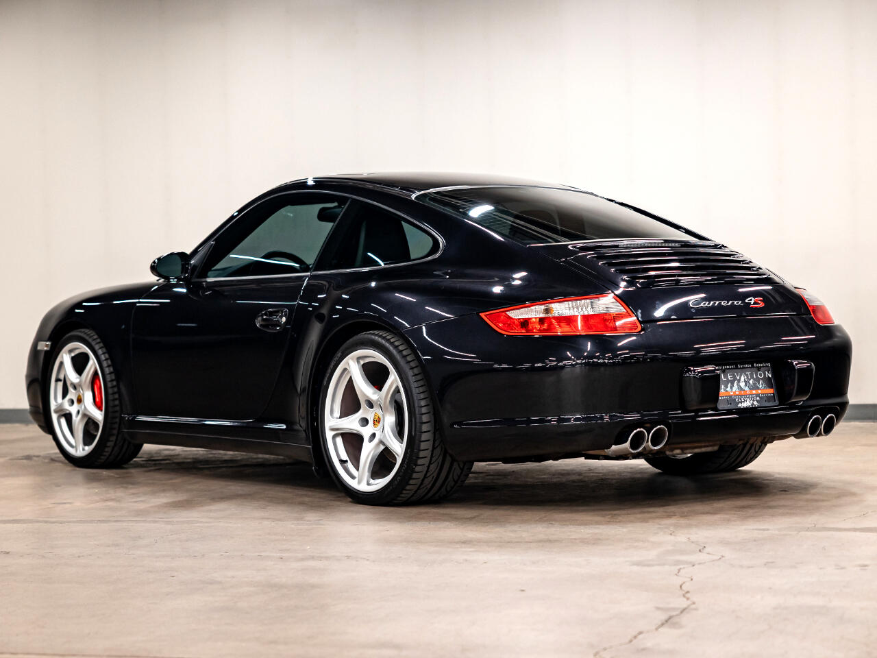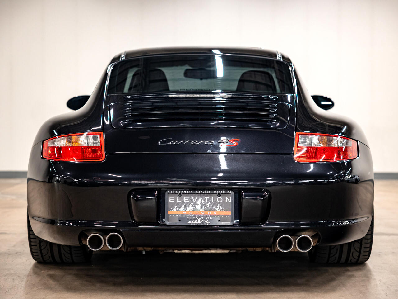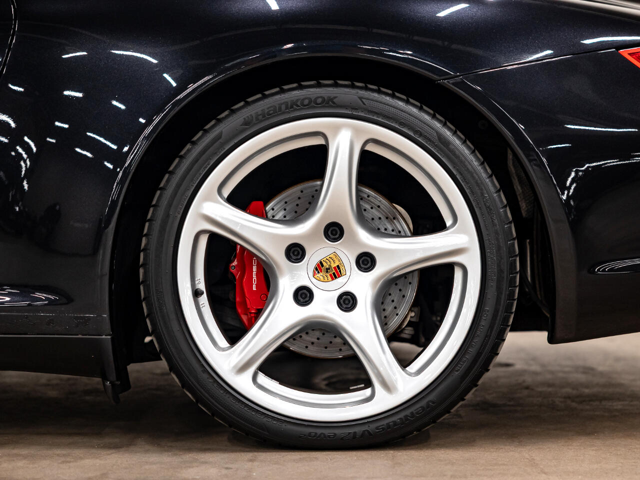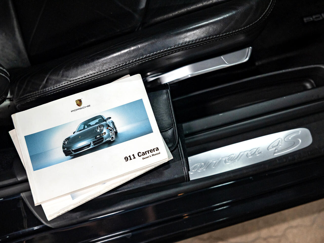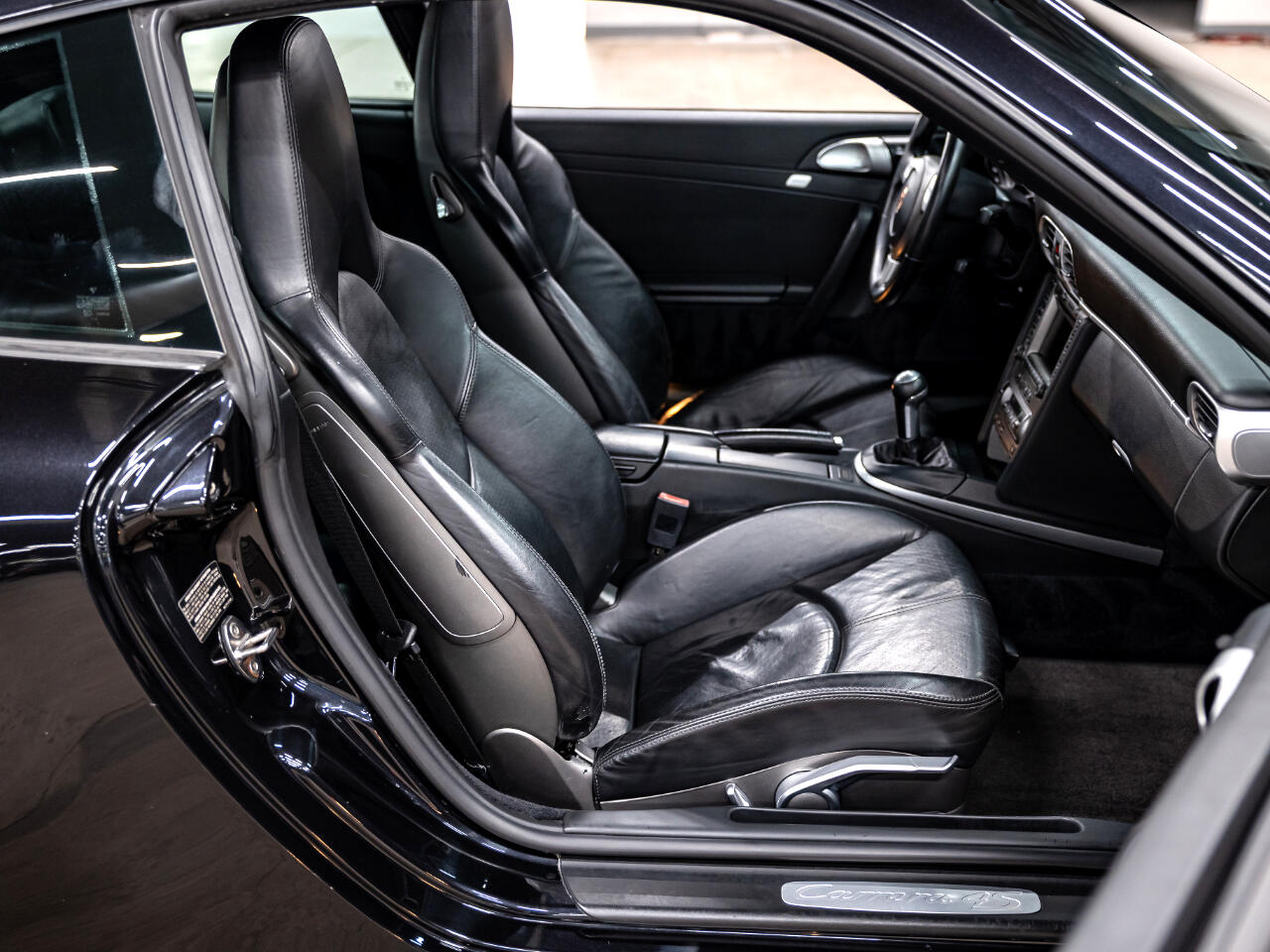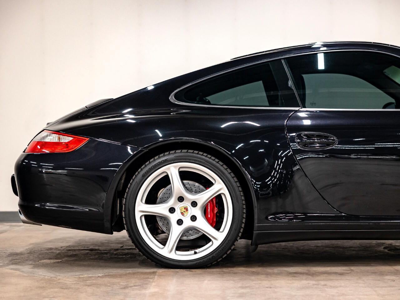 2006 Porsche 911 Carrera 4S finished in Basalt Black over Black Leather. Power comes from a 3.8L flat-six producing 355 horsepower and 295 lb-ft of torque, sent to all four wheels through a 6-speed manual transmission.