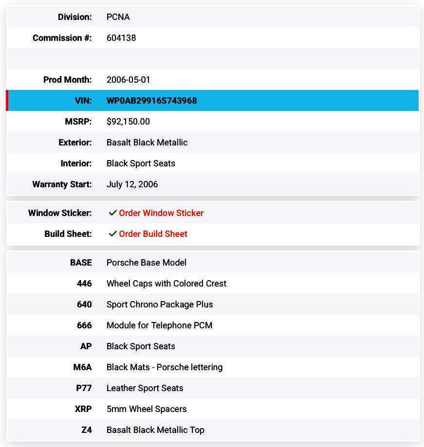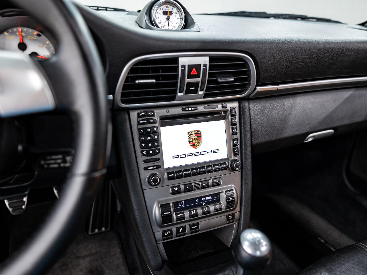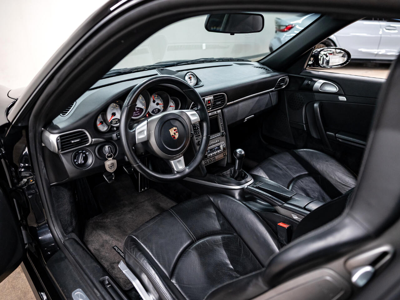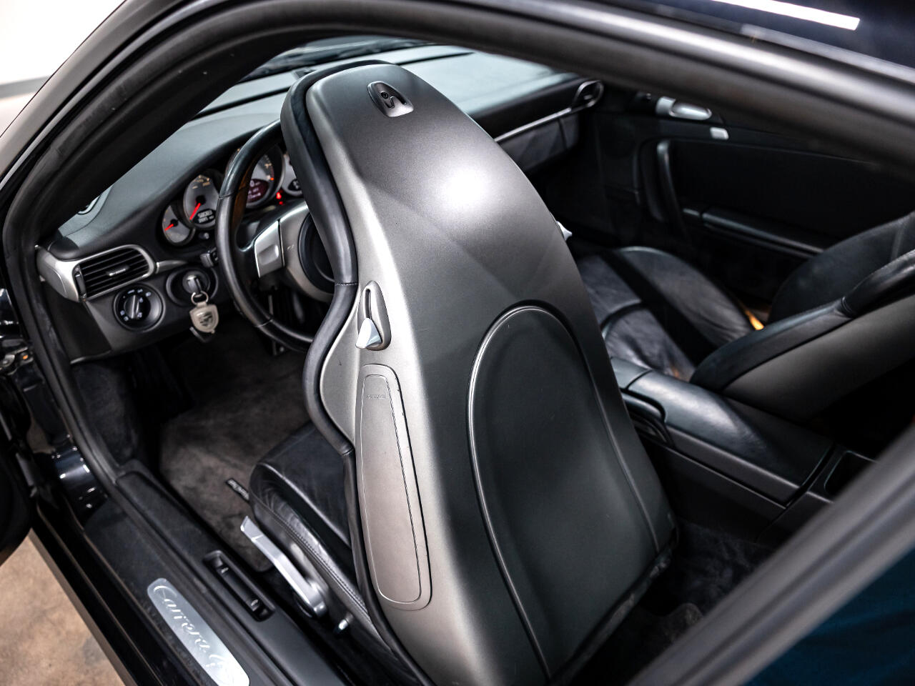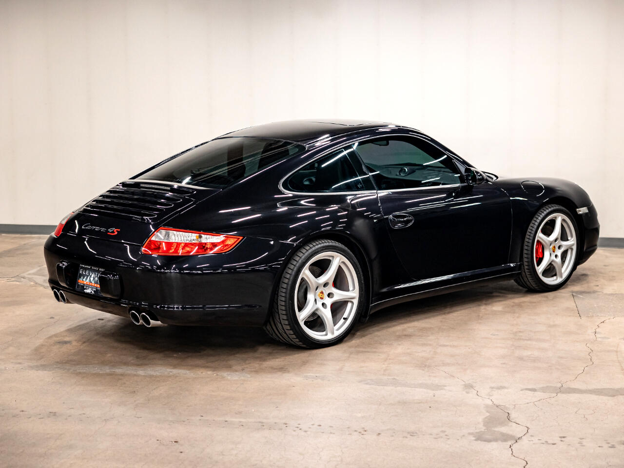 2006 Porsche 911 Carrera 4S finished in Basalt Black over Black Leather. Power comes from a 3.8L flat-six producing 355 horsepower and 295 lb-ft of torque, sent to all four wheels through a 6-speed manual transmission.