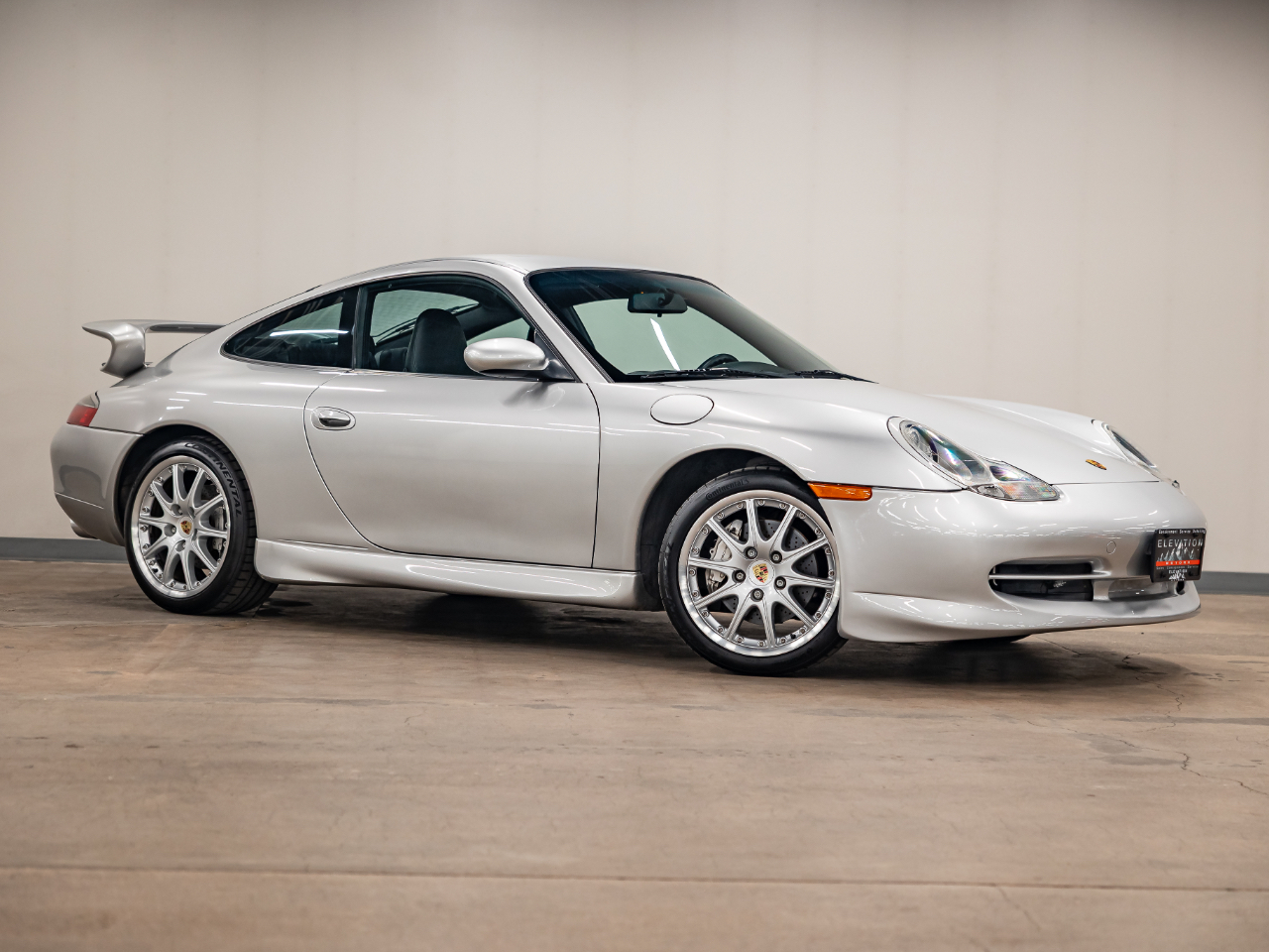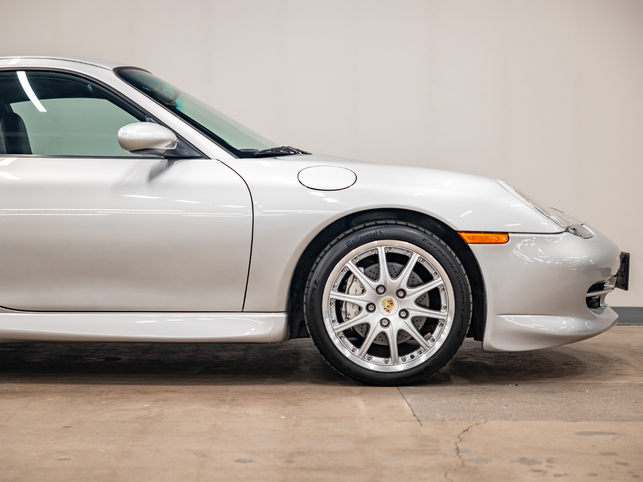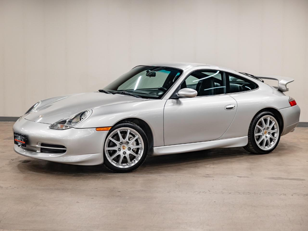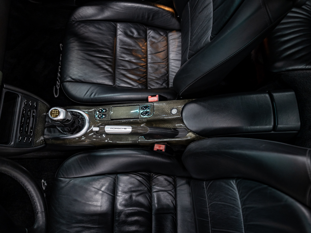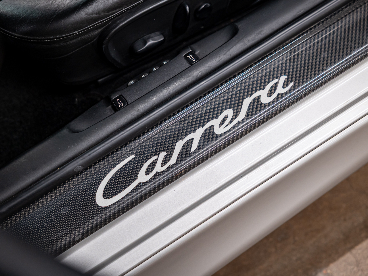 This 2001 Porsche 911 Carrera 4 Factory Aerokit is finished in Arctic Silver Metallic over a black full leather interior with the Full Carbon Interior Package. Power comes from a 3.4L flat-6 producing 300 hp and 258 lb-ft of torque, sent to all four wheels through a 6-speed manual transmission.