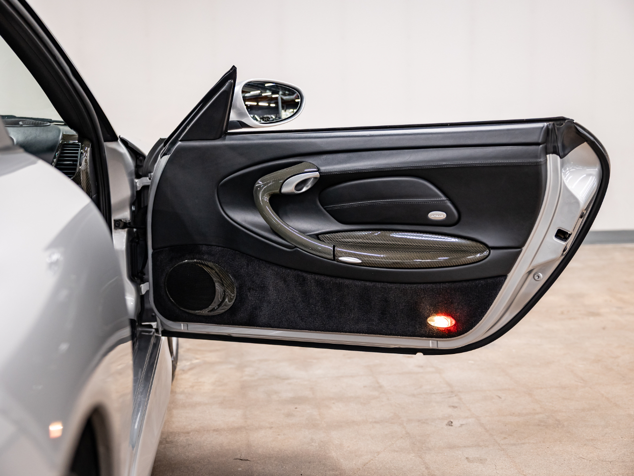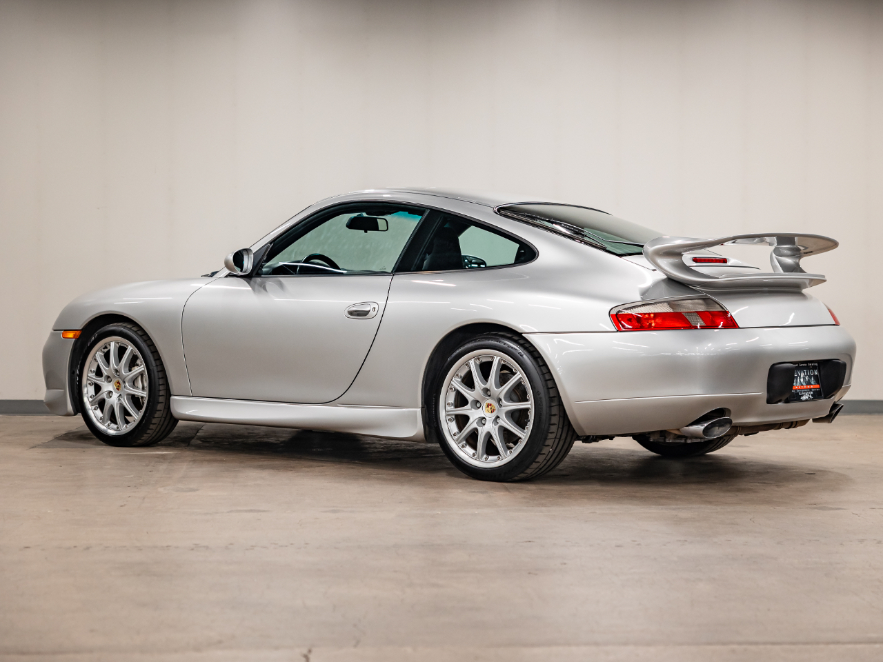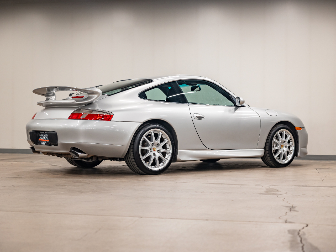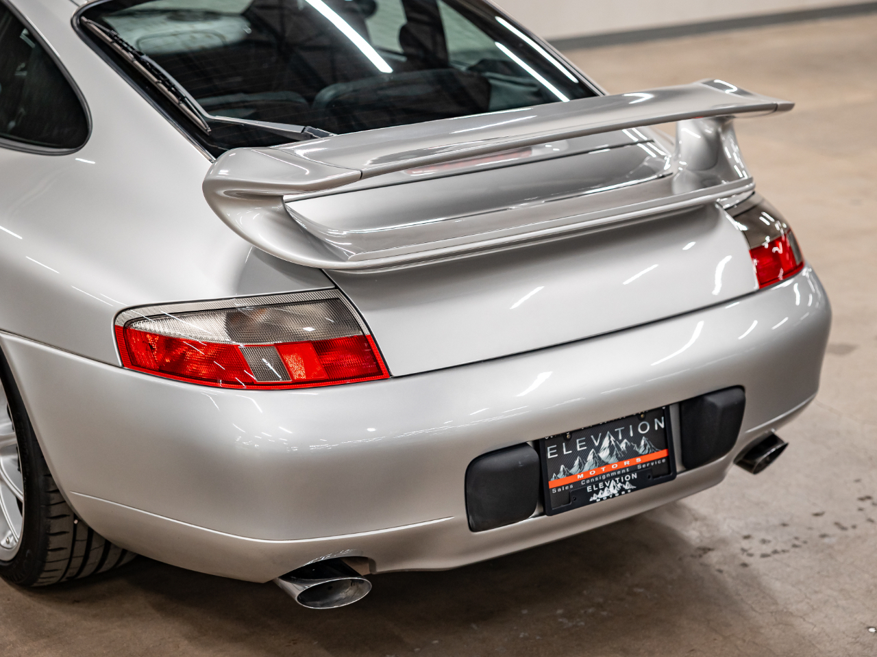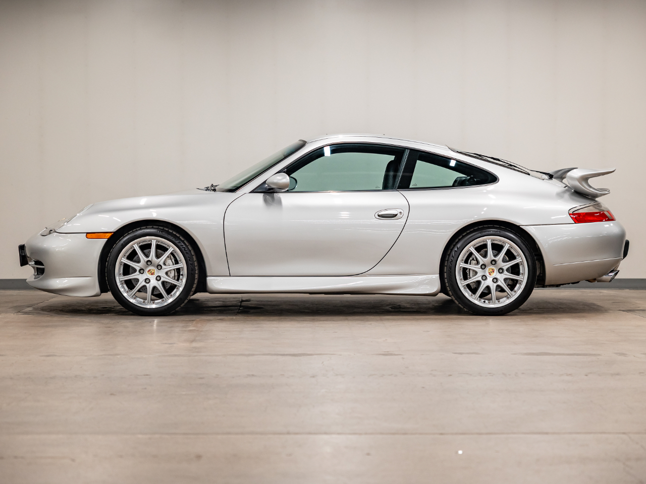 This 2001 Porsche 911 Carrera 4 Factory Aerokit is finished in Arctic Silver Metallic over a black full leather interior with the Full Carbon Interior Package. Power comes from a 3.4L flat-6 producing 300 hp and 258 lb-ft of torque, sent to all four wheels through a 6-speed manual transmission.