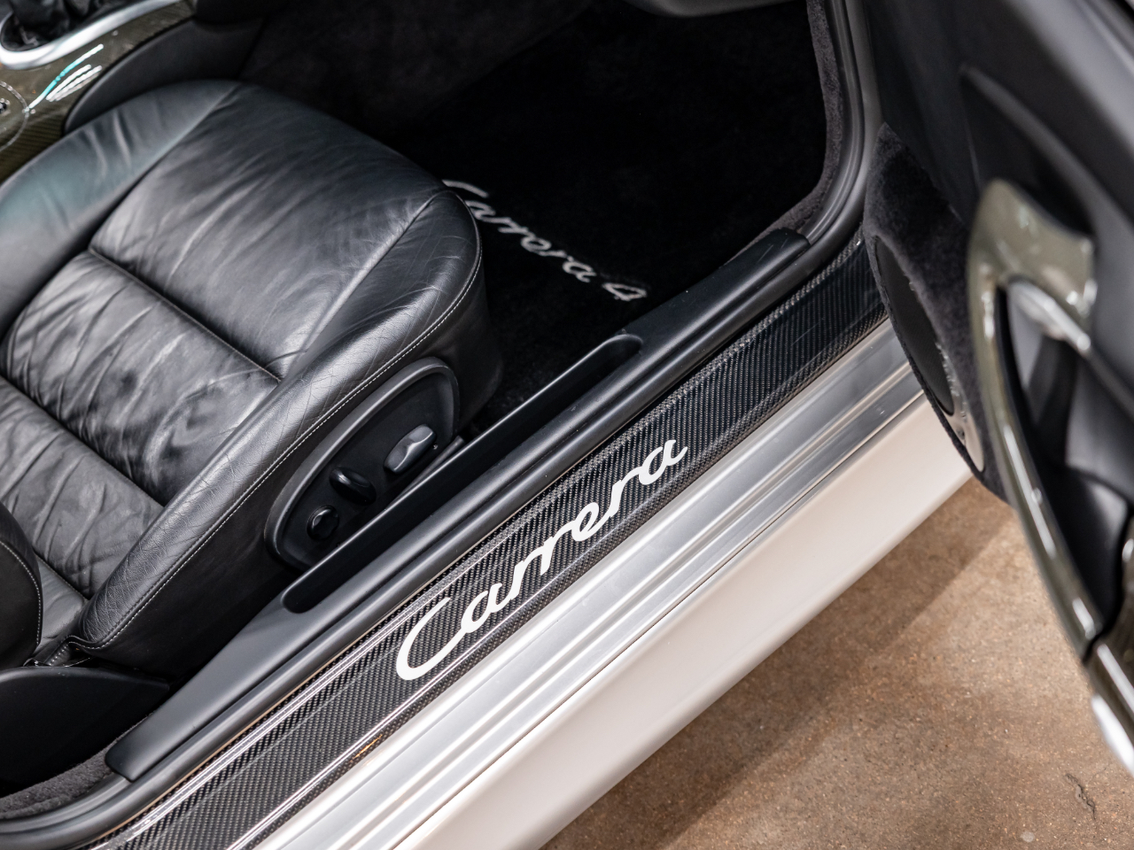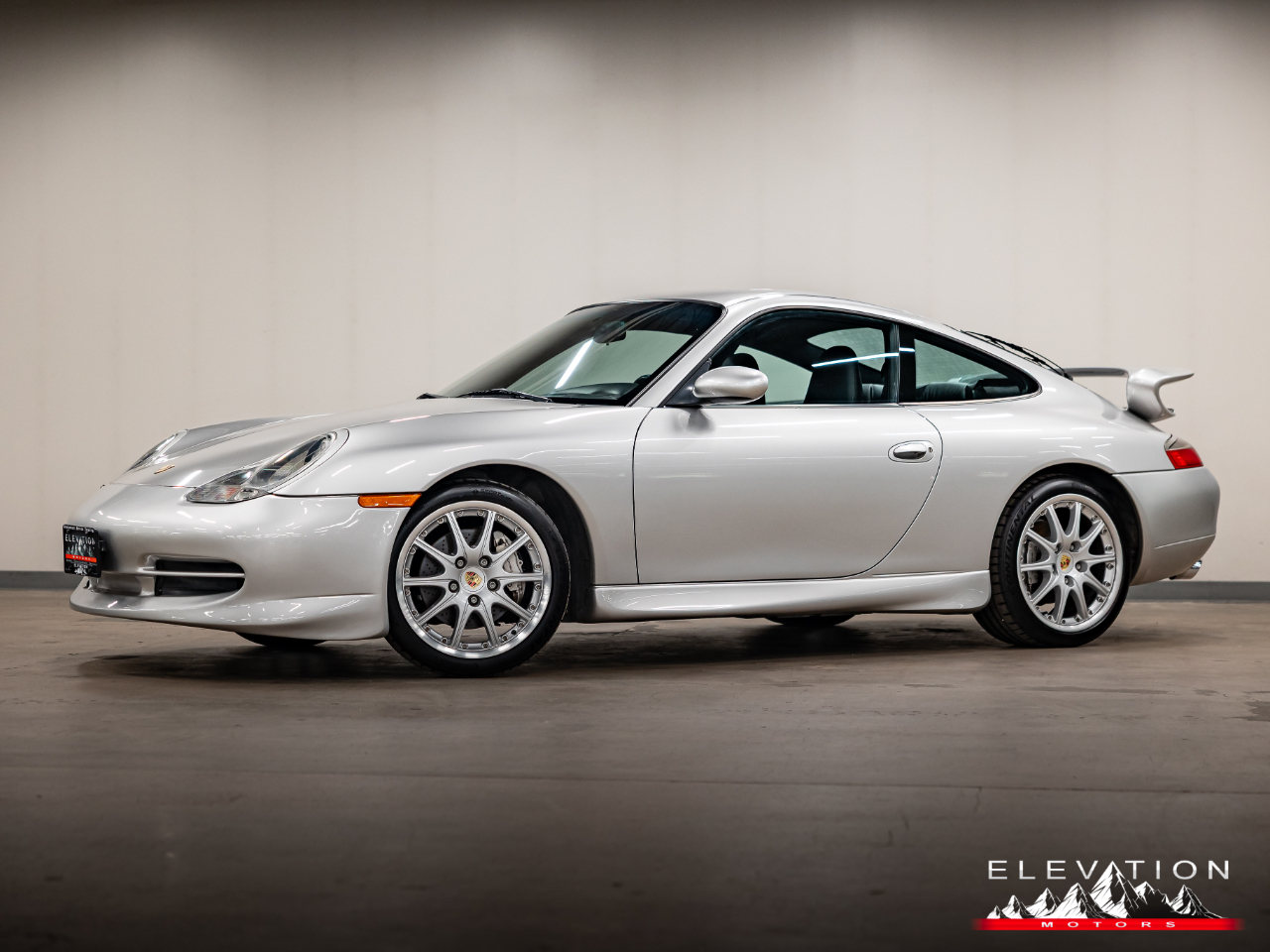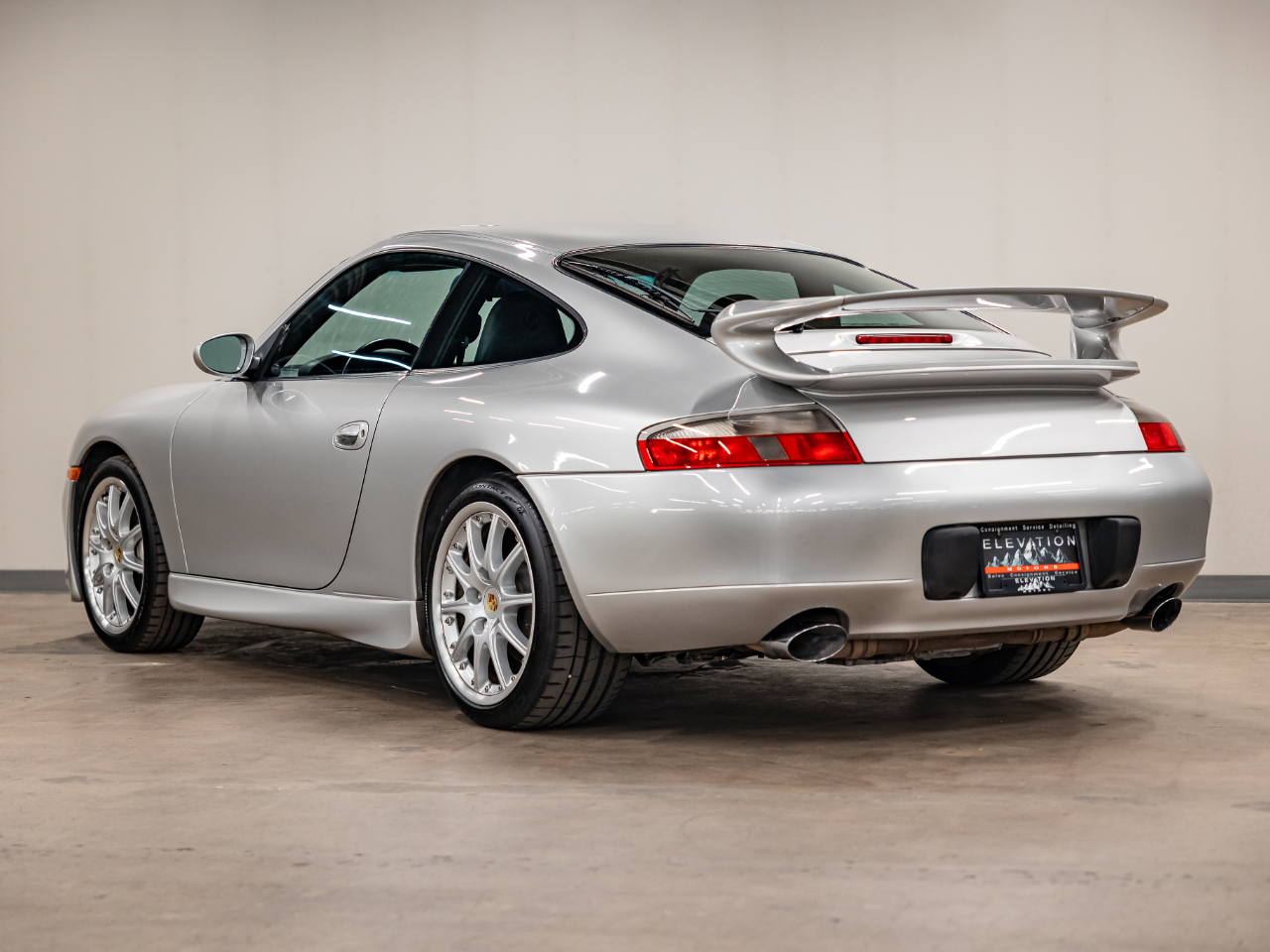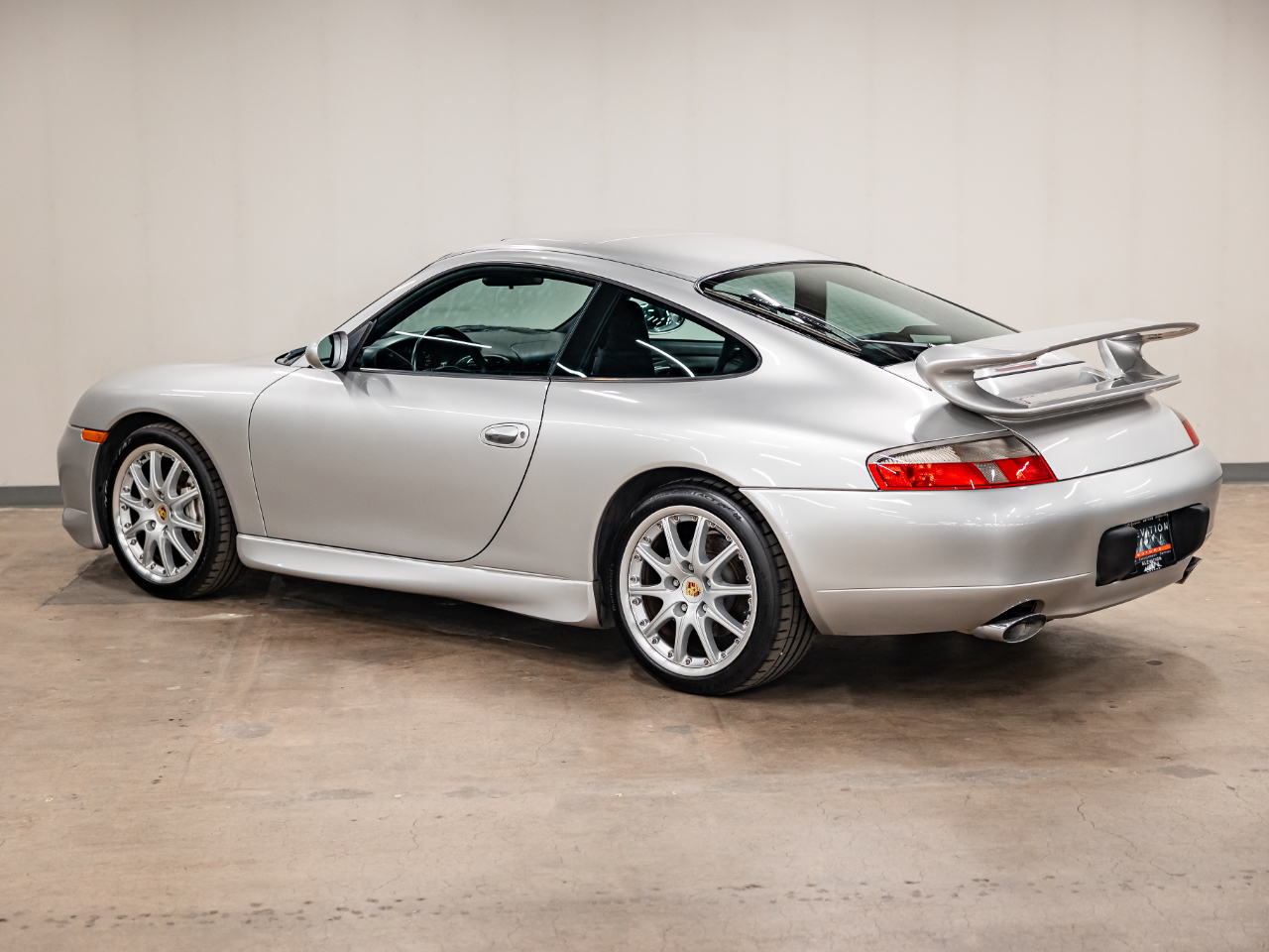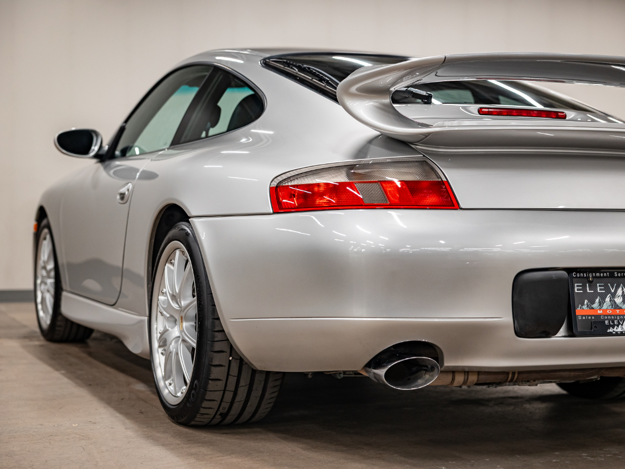 This 2001 Porsche 911 Carrera 4 Factory Aerokit is finished in Arctic Silver Metallic over a black full leather interior with the Full Carbon Interior Package. Power comes from a 3.4L flat-6 producing 300 hp and 258 lb-ft of torque, sent to all four wheels through a 6-speed manual transmission.