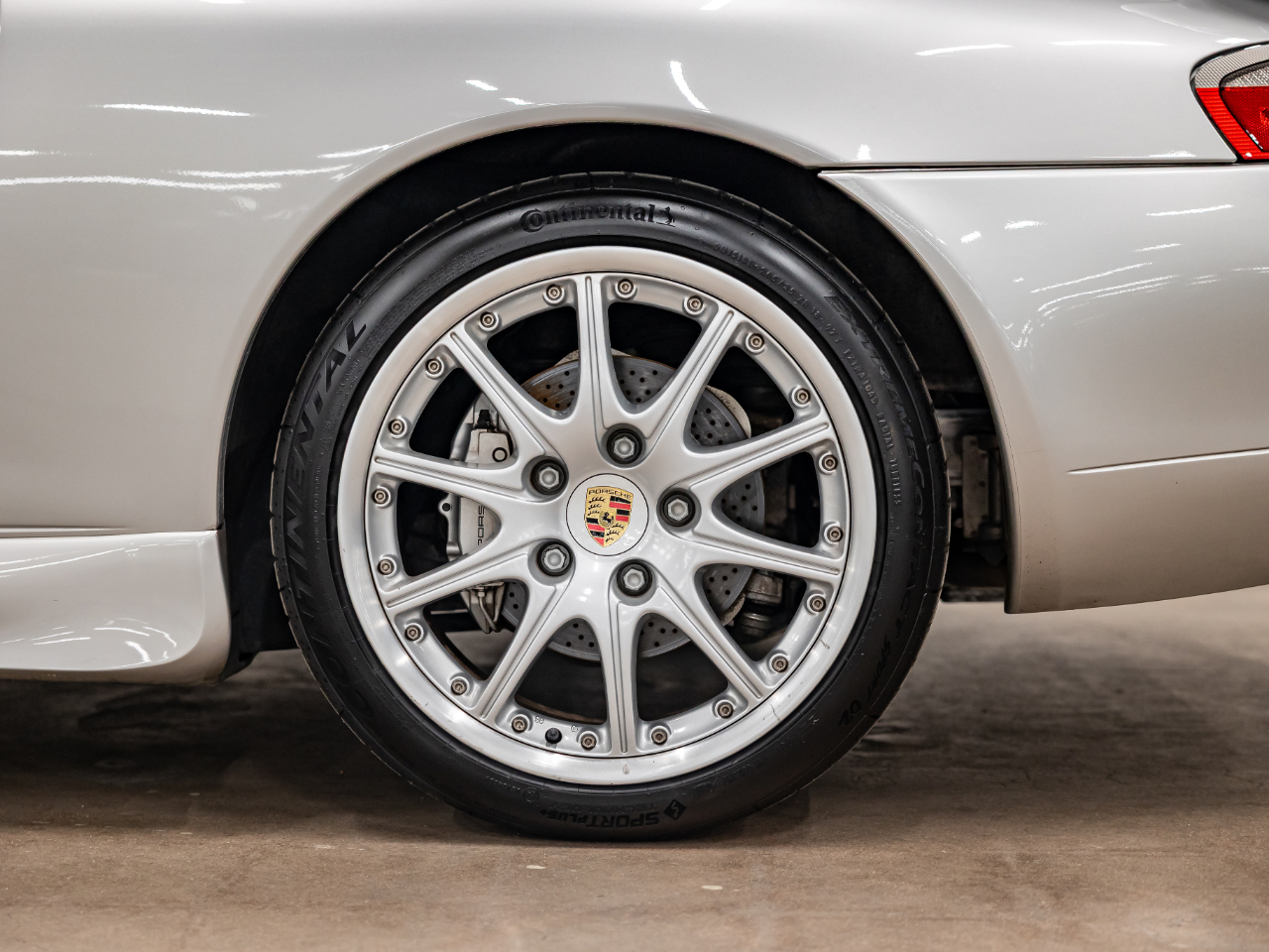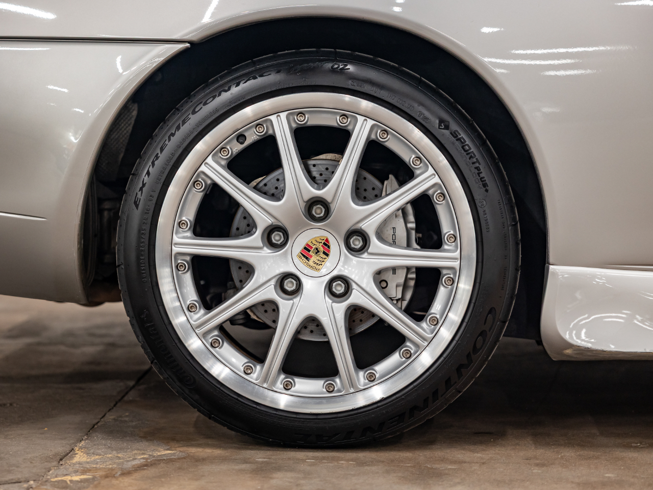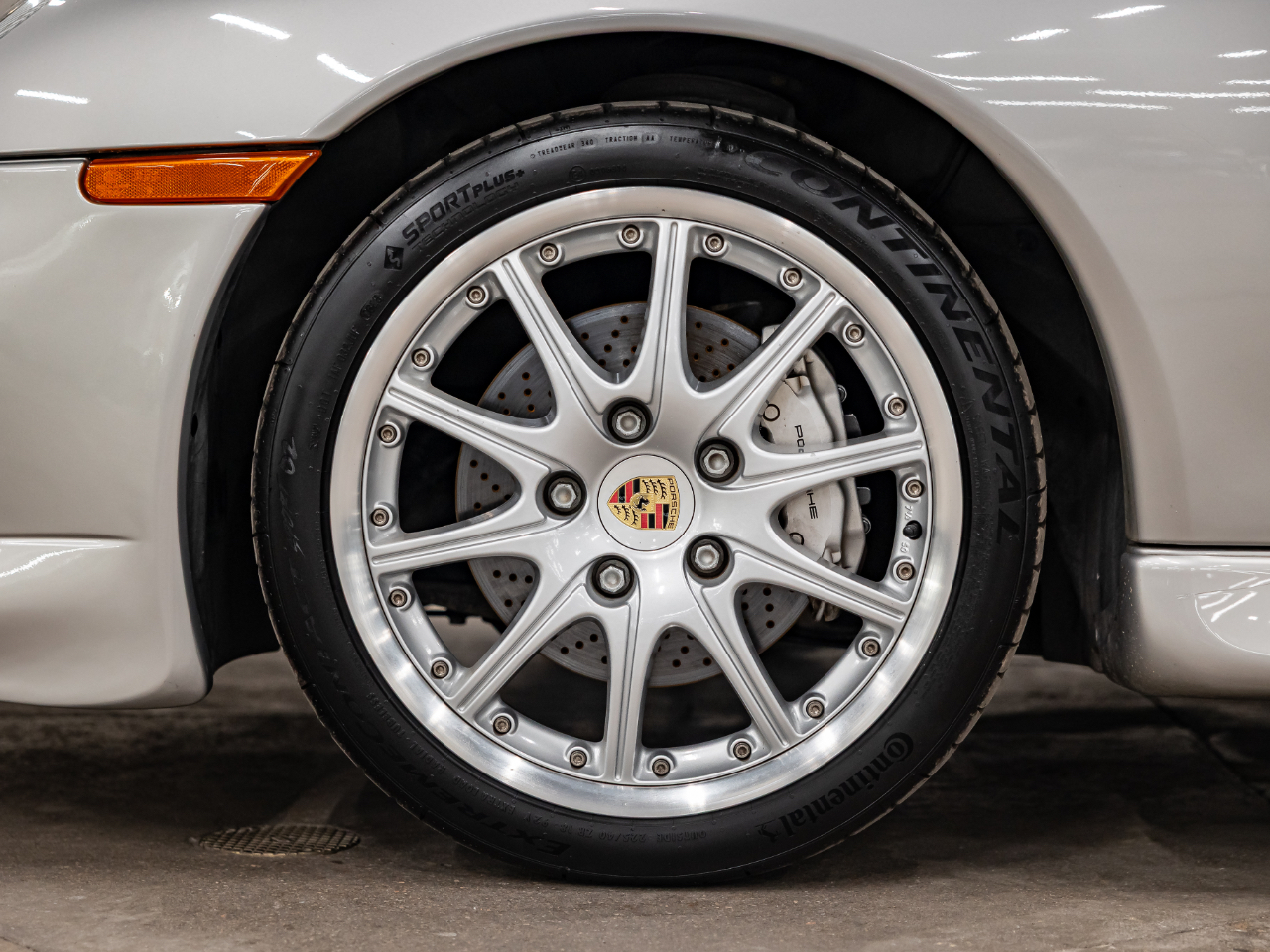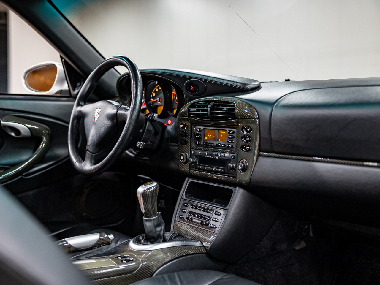 This 996 comes well-equipped with features including the XAA Factory Aerokit, 030 Special Chassis Rigidly Tuned suspension, advanced technic package, 3-spoke steering wheel, stainless steel exhaust pipes, and Porsche-branded floor mats. It currently rides on 18-inch Sport Design wheels with colored Porsche crests, wrapped in new Continental ExtremeContact Sport 02 tires.