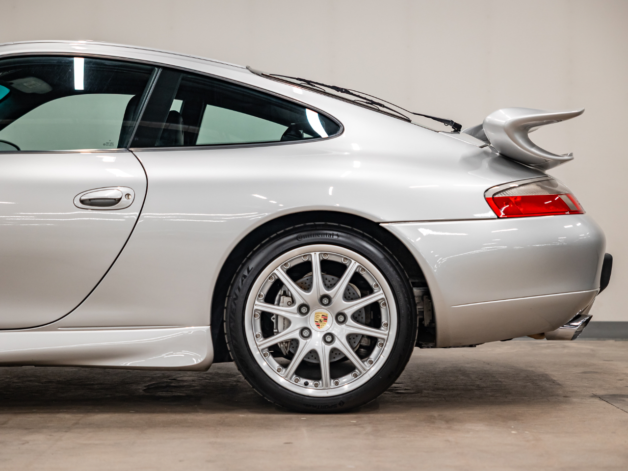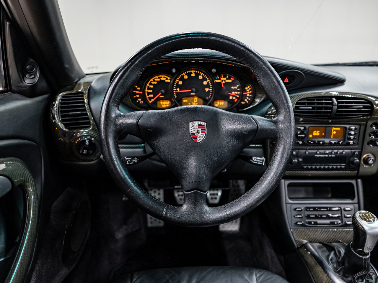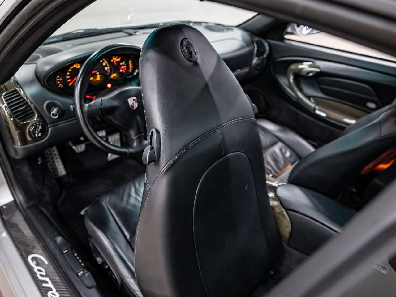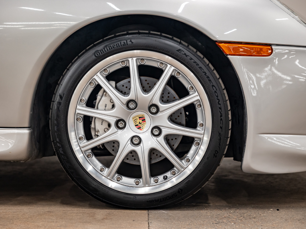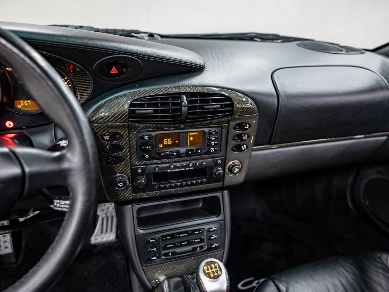 This 996 comes well-equipped with features including the XAA Factory Aerokit, 030 Special Chassis Rigidly Tuned suspension, advanced technic package, 3-spoke steering wheel, stainless steel exhaust pipes, and Porsche-branded floor mats. It currently rides on 18-inch Sport Design wheels with colored Porsche crests, wrapped in new Continental ExtremeContact Sport 02 tires.