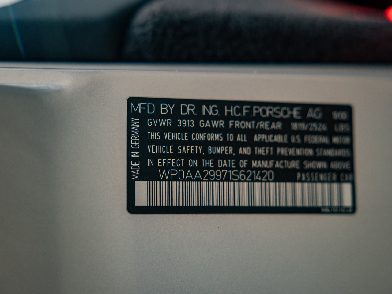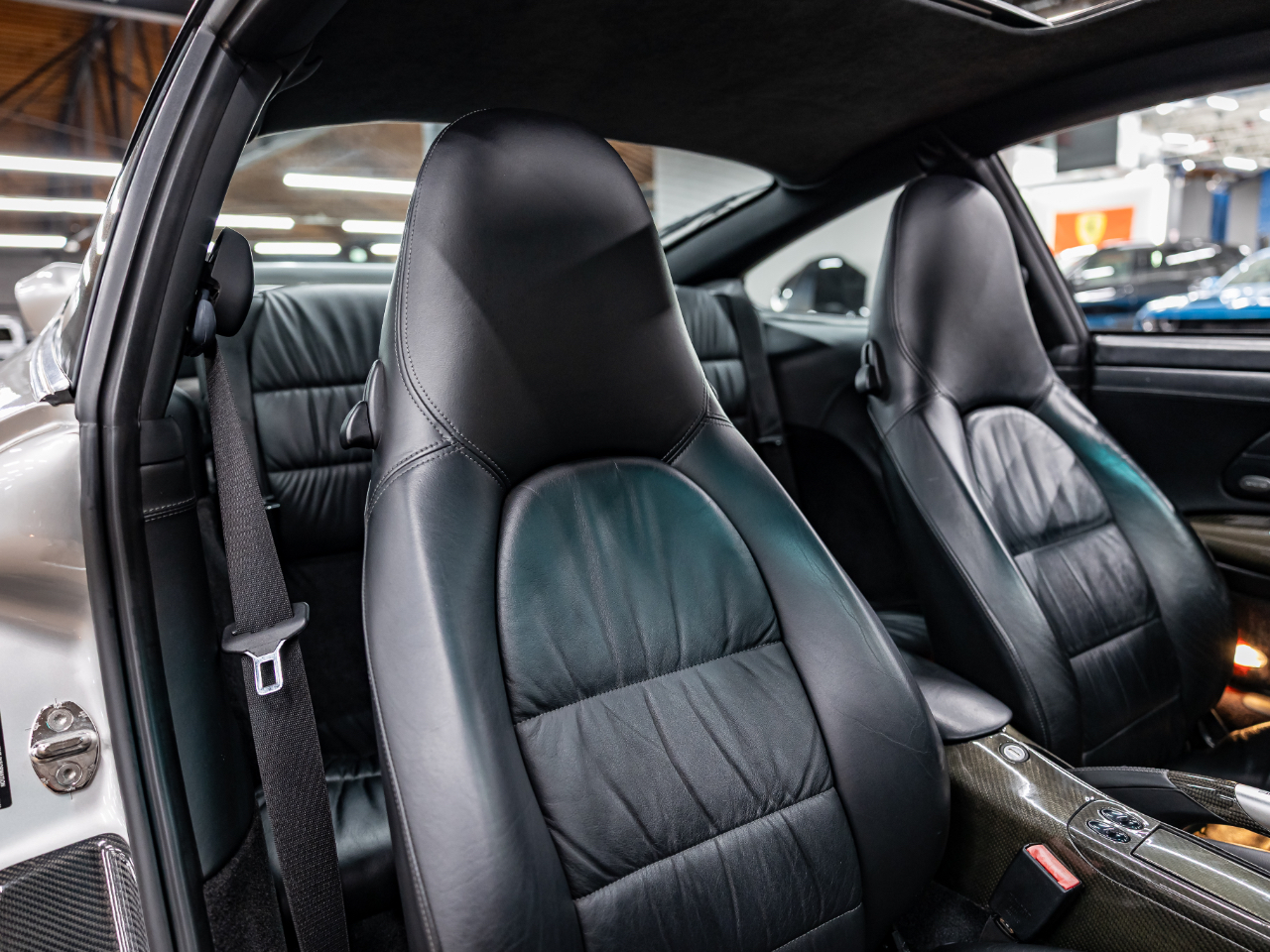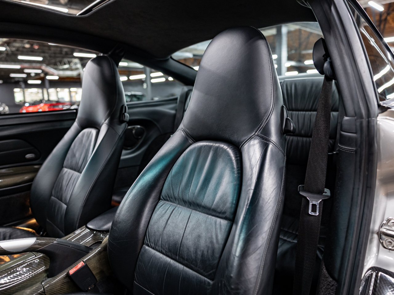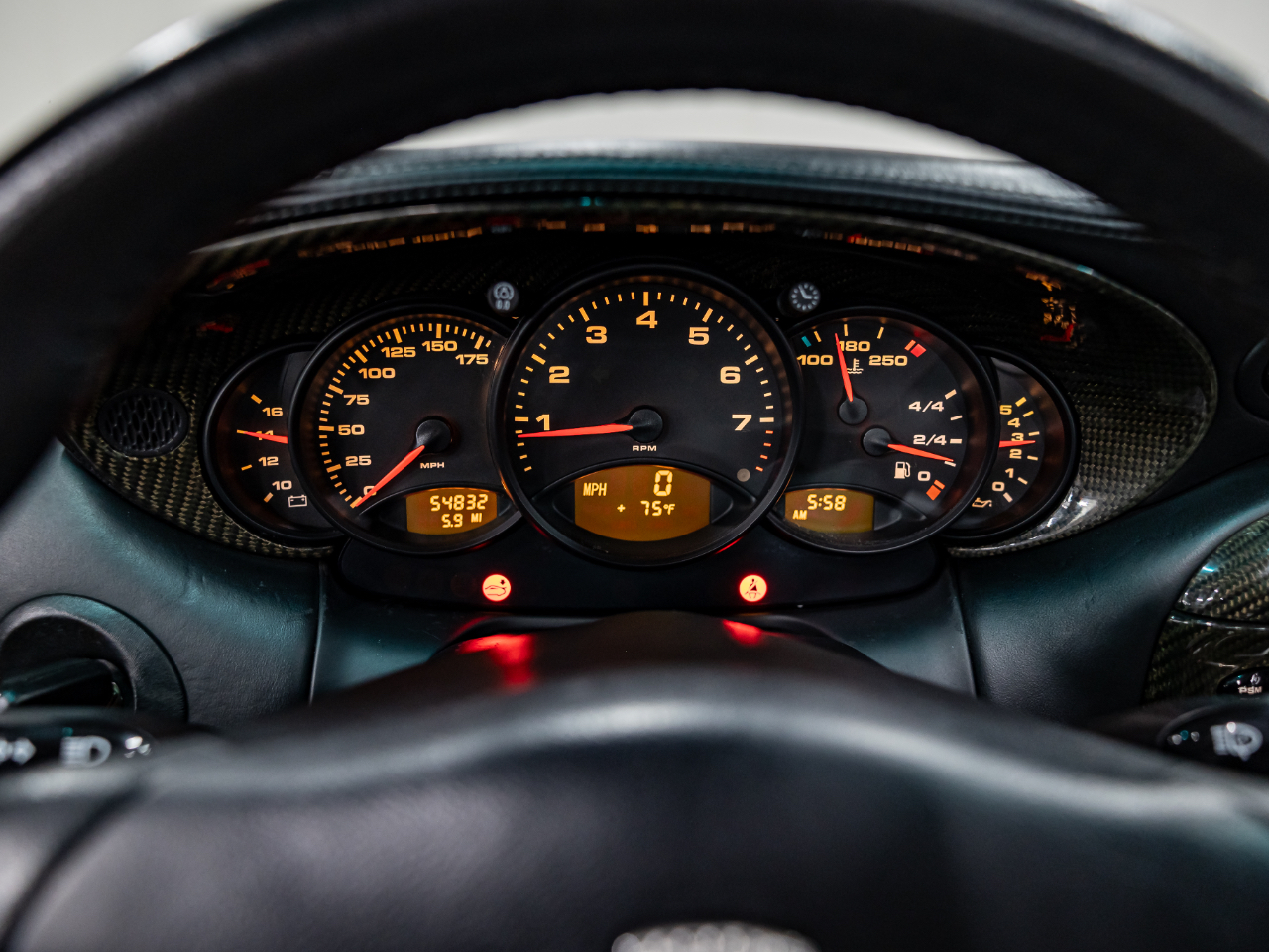 This 996 comes well-equipped with features including the XAA Factory Aerokit, 030 Special Chassis Rigidly Tuned suspension, advanced technic package, 3-spoke steering wheel, stainless steel exhaust pipes, and Porsche-branded floor mats. It currently rides on 18-inch Sport Design wheels with colored Porsche crests, wrapped in new Continental ExtremeContact Sport 02 tires.