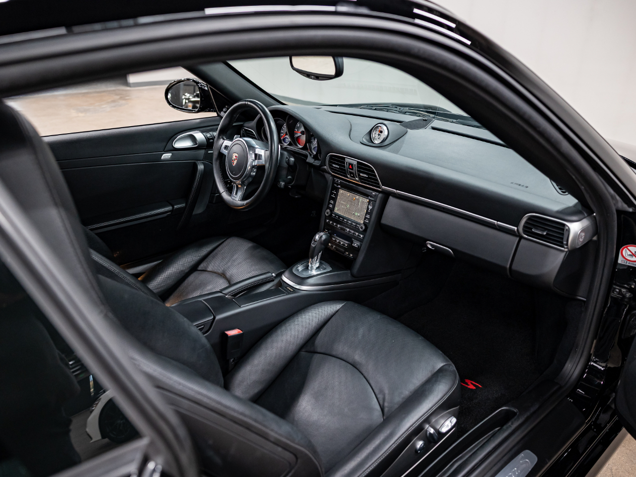 This 2011 Porsche 911 Carrera S Coupe is finished in Black over Black Standard Leather. Power comes from a 3.8-liter flat-six engine producing 385 horsepower and 310 lb-ft of torque, sent to the rear wheels through a 7-speed PDK dual-clutch automatic transmission.
