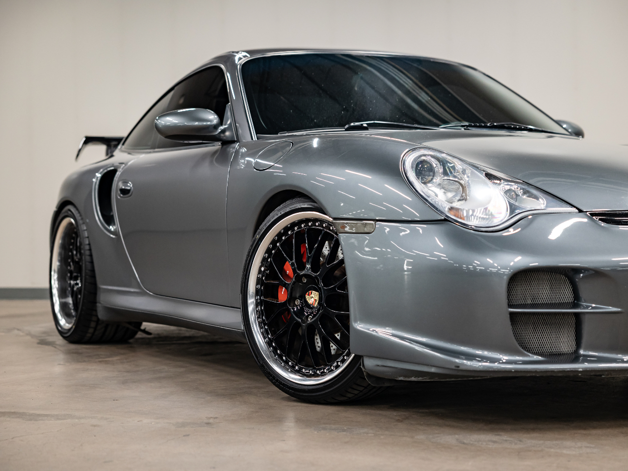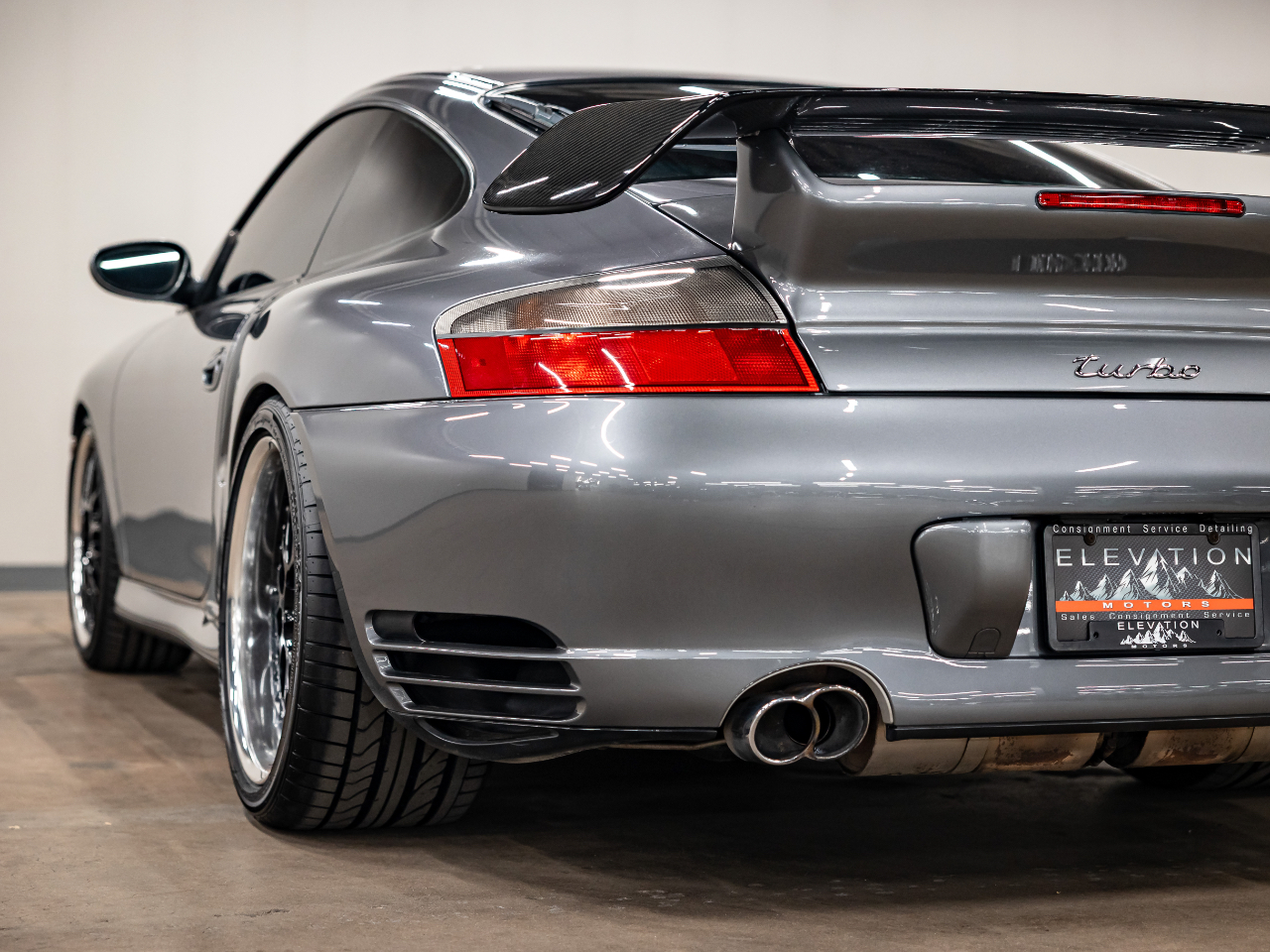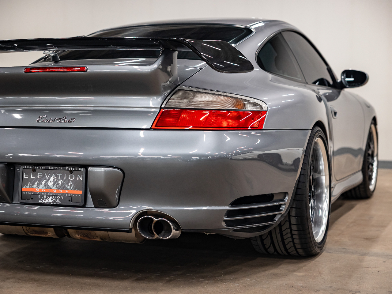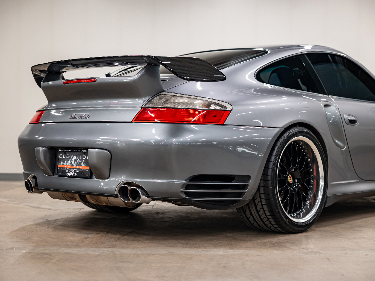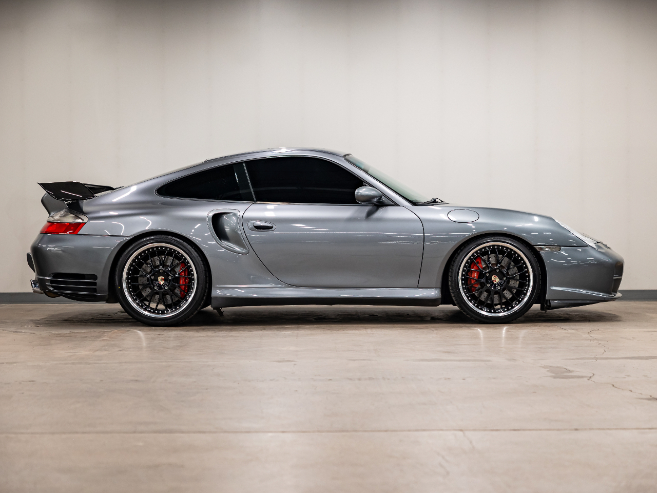 This 2002 Porsche 911 Turbo is finished in Seal Gray Metallic over Black Leather and is powered by a built twin-turbocharged 3.6-liter flat-six paired with a 6-speed manual transmission and all-wheel drive. The engine was professionally rebuilt in 2019 at a cost of approximately $20,000 and has fewer than 30,000 miles since the build, featuring Carrillo connecting rods, a 102.7mm piston and cylinder set, ID1300 fuel injectors, rebuilt cylinder heads, and welded coolant lines—creating a significantly strengthened foundation for the upgraded turbo system. Factory output was rated at 415 horsepower and 413 lb-ft of torque, though real-world figures are expected to be notably higher with these enhancements.