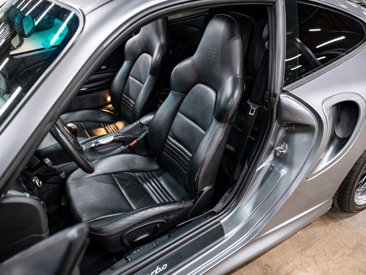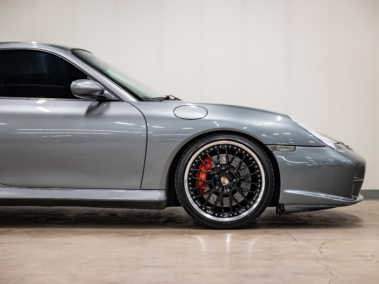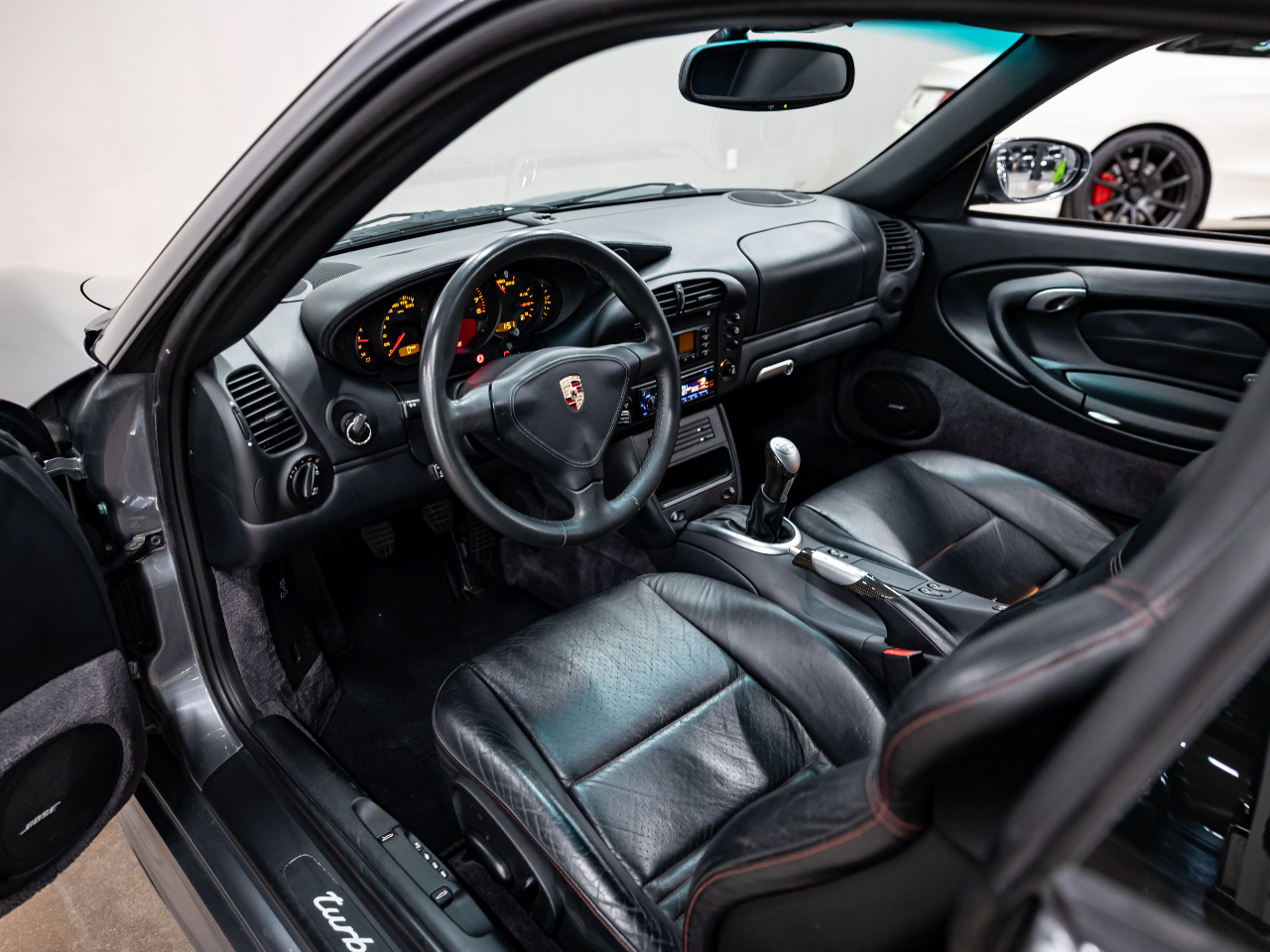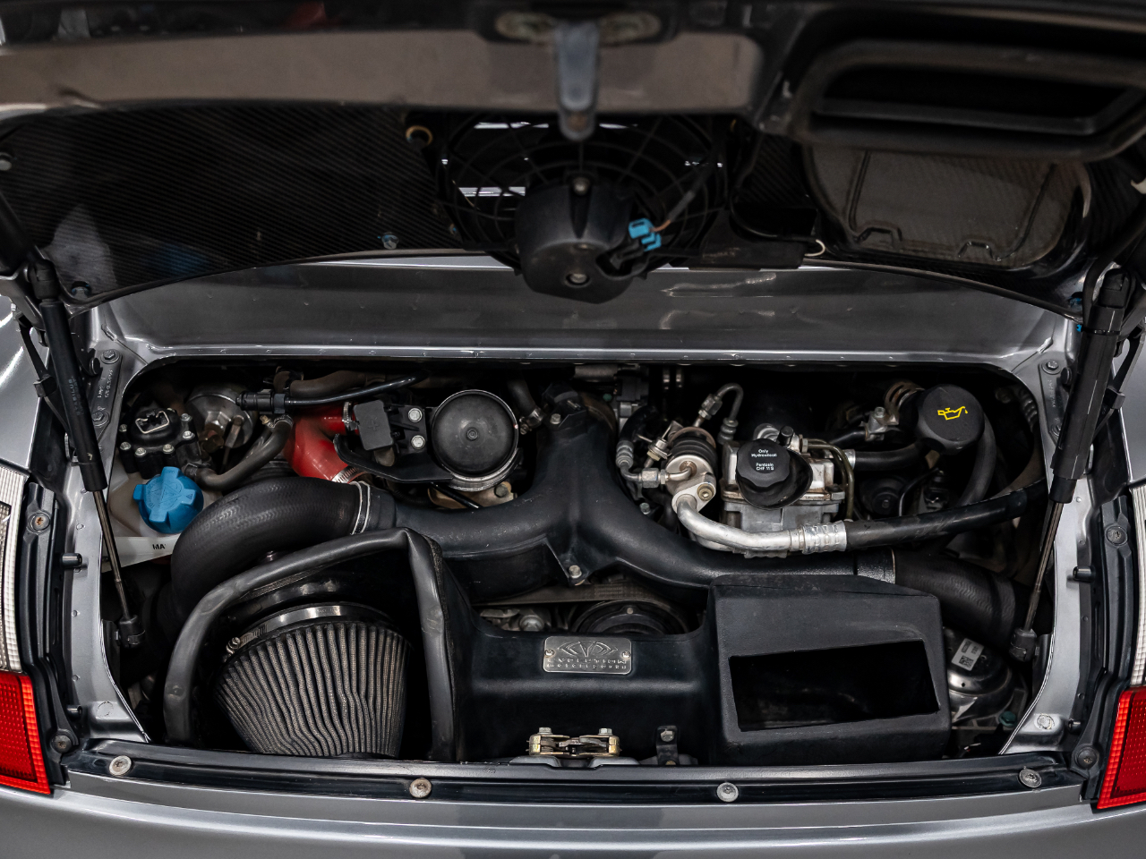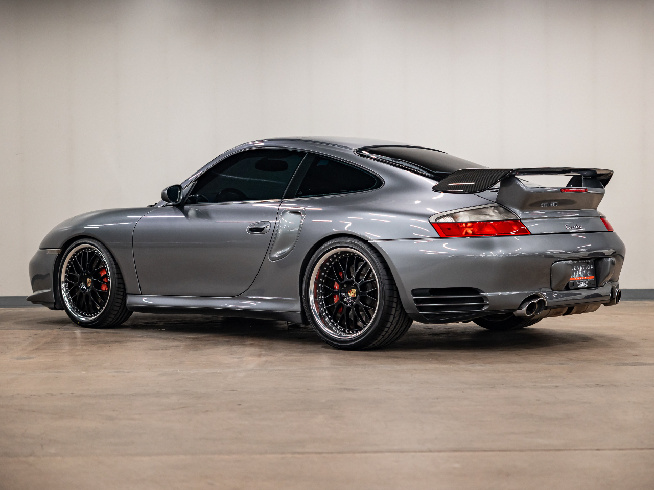 This 2002 Porsche 911 Turbo is finished in Seal Gray Metallic over Black Leather and is powered by a built twin-turbocharged 3.6-liter flat-six paired with a 6-speed manual transmission and all-wheel drive. The engine was professionally rebuilt in 2019 at a cost of approximately $20,000 and has fewer than 30,000 miles since the build, featuring Carrillo connecting rods, a 102.7mm piston and cylinder set, ID1300 fuel injectors, rebuilt cylinder heads, and welded coolant lines—creating a significantly strengthened foundation for the upgraded turbo system. Factory output was rated at 415 horsepower and 413 lb-ft of torque, though real-world figures are expected to be notably higher with these enhancements.