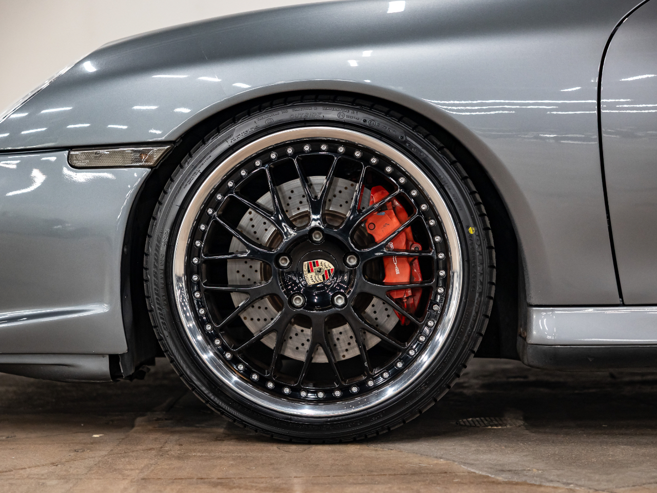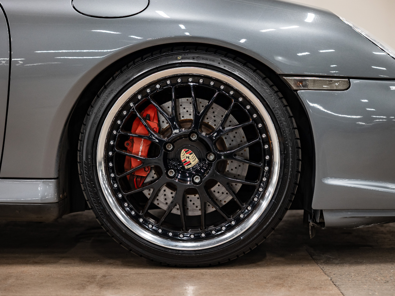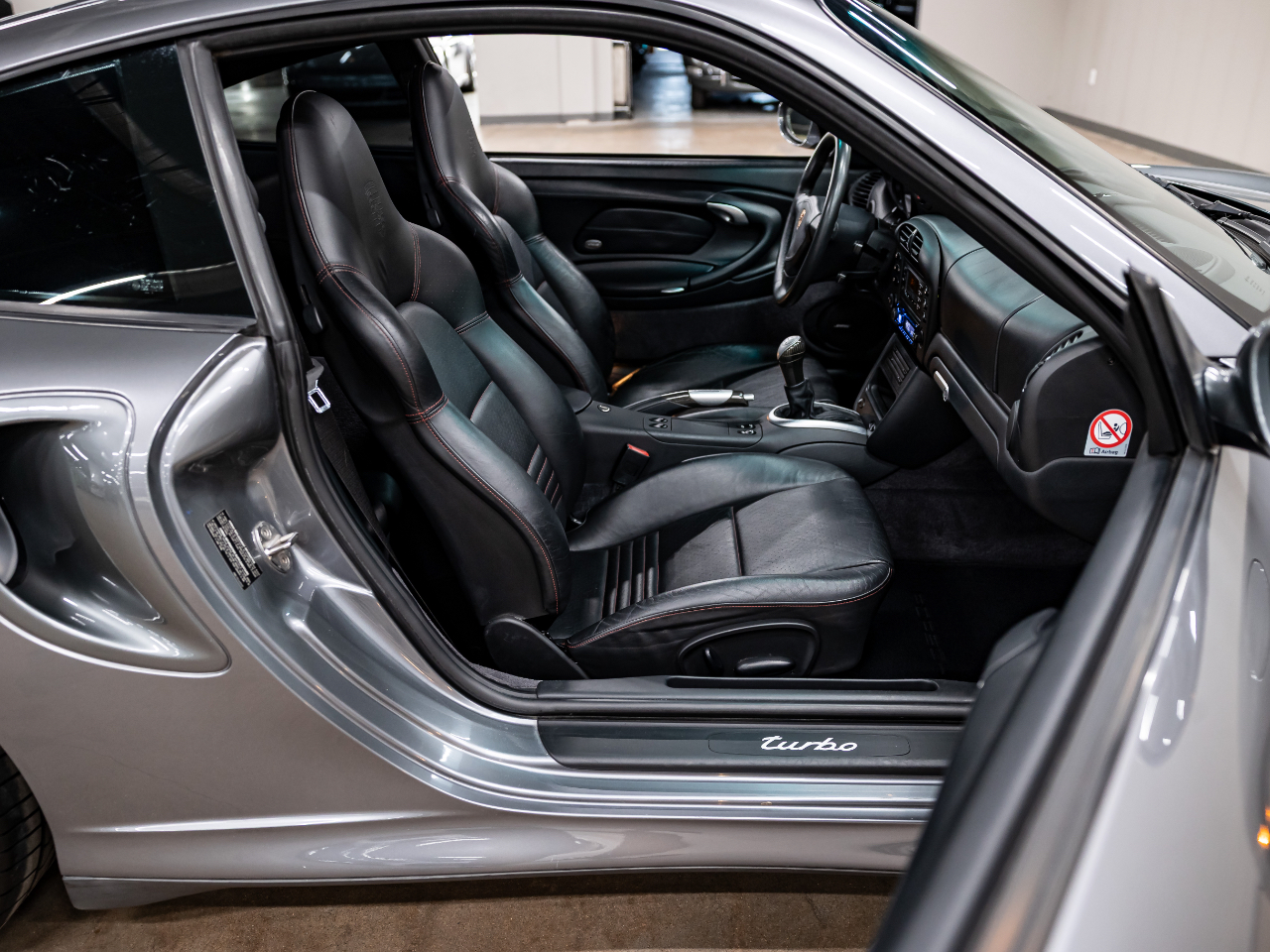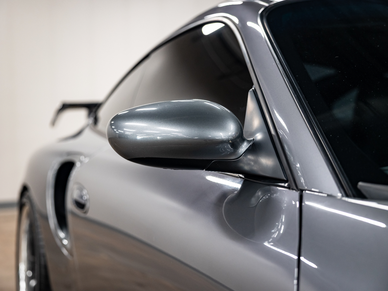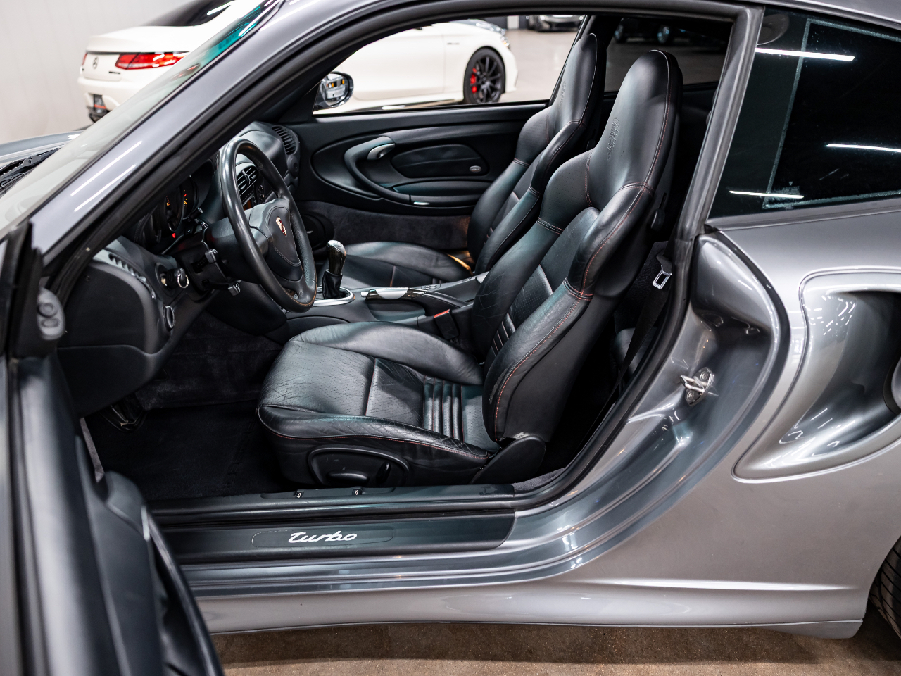 This 2002 Porsche 911 Turbo is finished in Seal Gray Metallic over Black Leather and is powered by a built twin-turbocharged 3.6-liter flat-six paired with a 6-speed manual transmission and all-wheel drive. The engine was professionally rebuilt in 2019 at a cost of approximately $20,000 and has fewer than 30,000 miles since the build, featuring Carrillo connecting rods, a 102.7mm piston and cylinder set, ID1300 fuel injectors, rebuilt cylinder heads, and welded coolant lines—creating a significantly strengthened foundation for the upgraded turbo system. Factory output was rated at 415 horsepower and 413 lb-ft of torque, though real-world figures are expected to be notably higher with these enhancements.