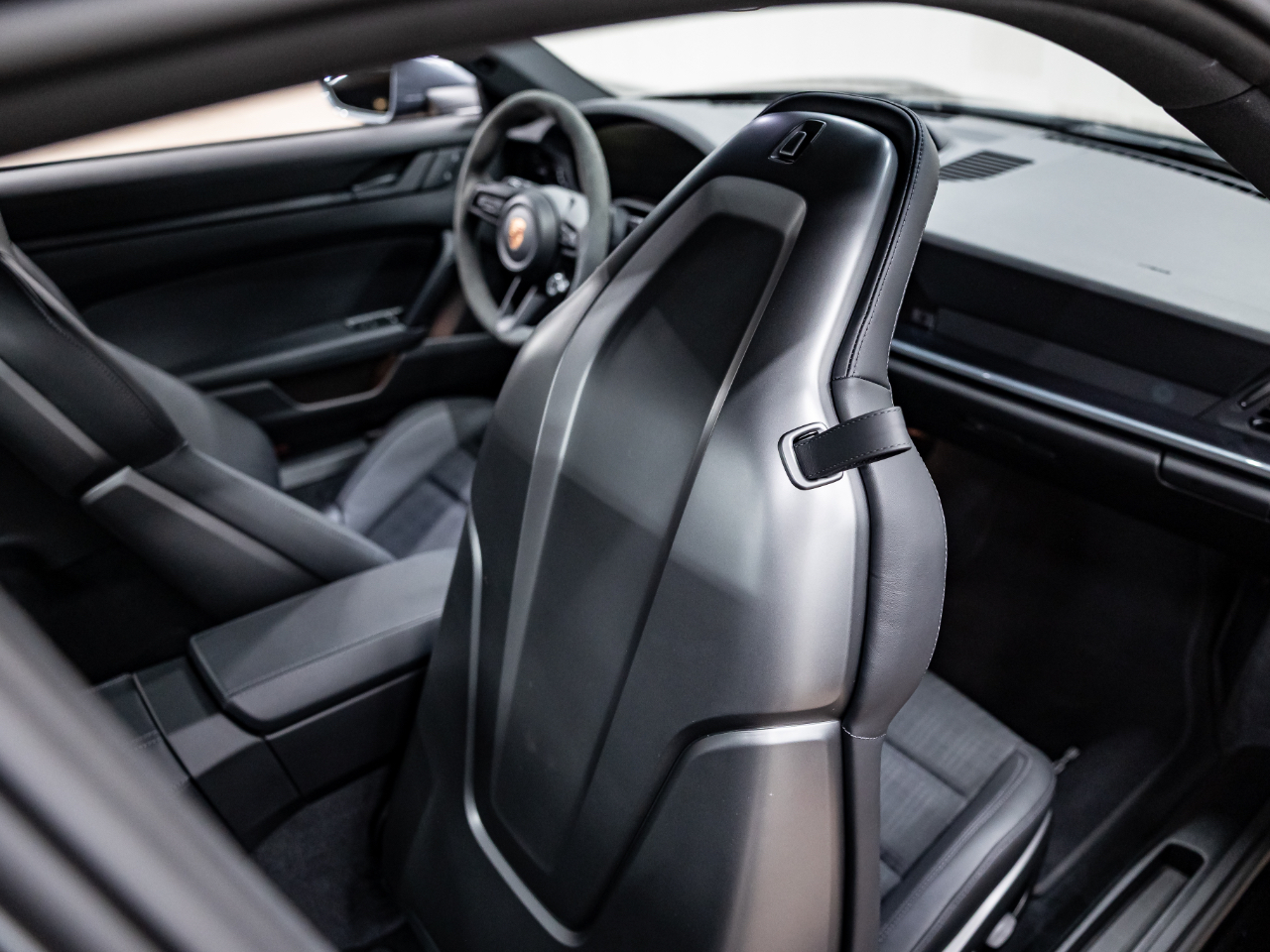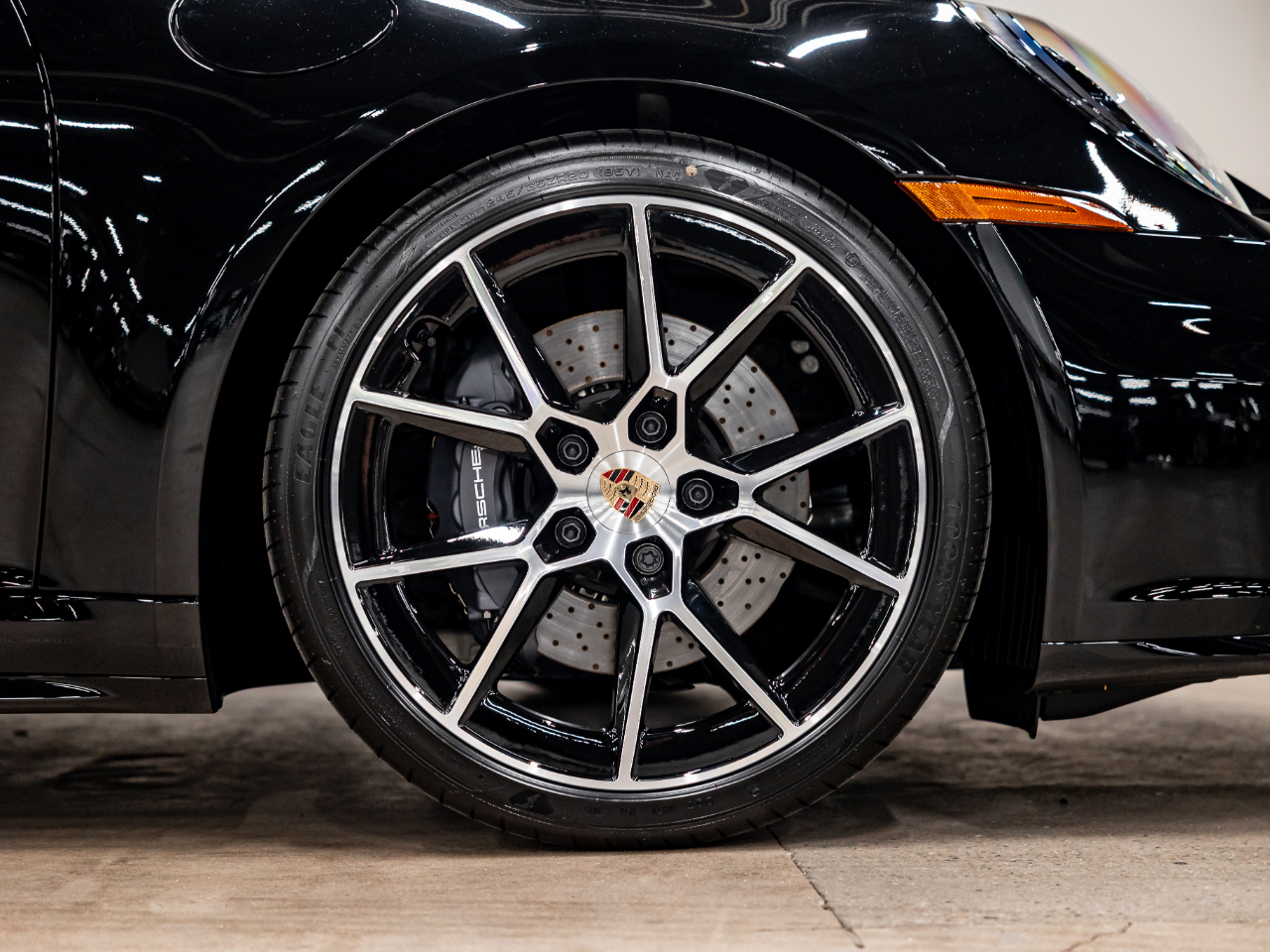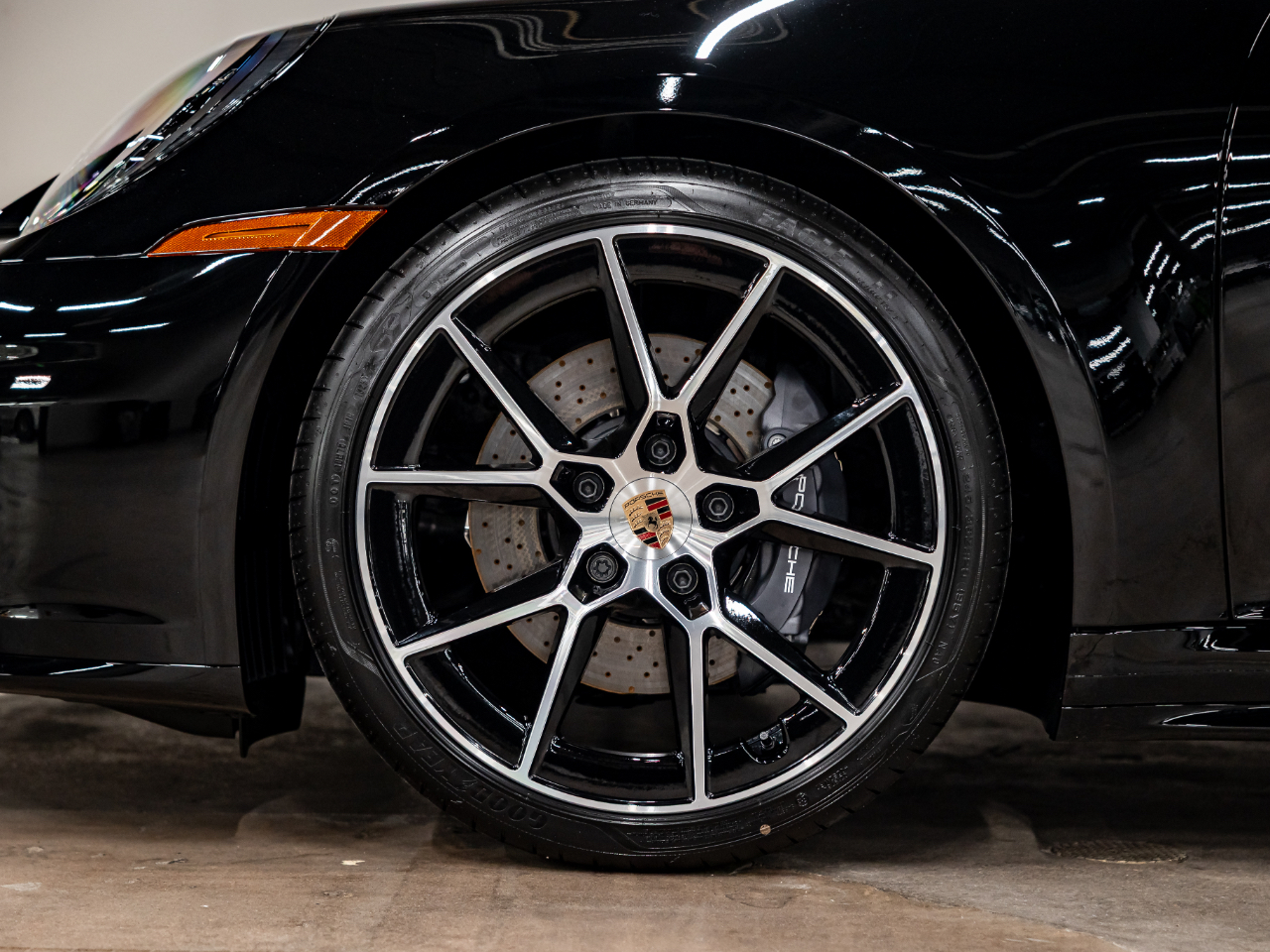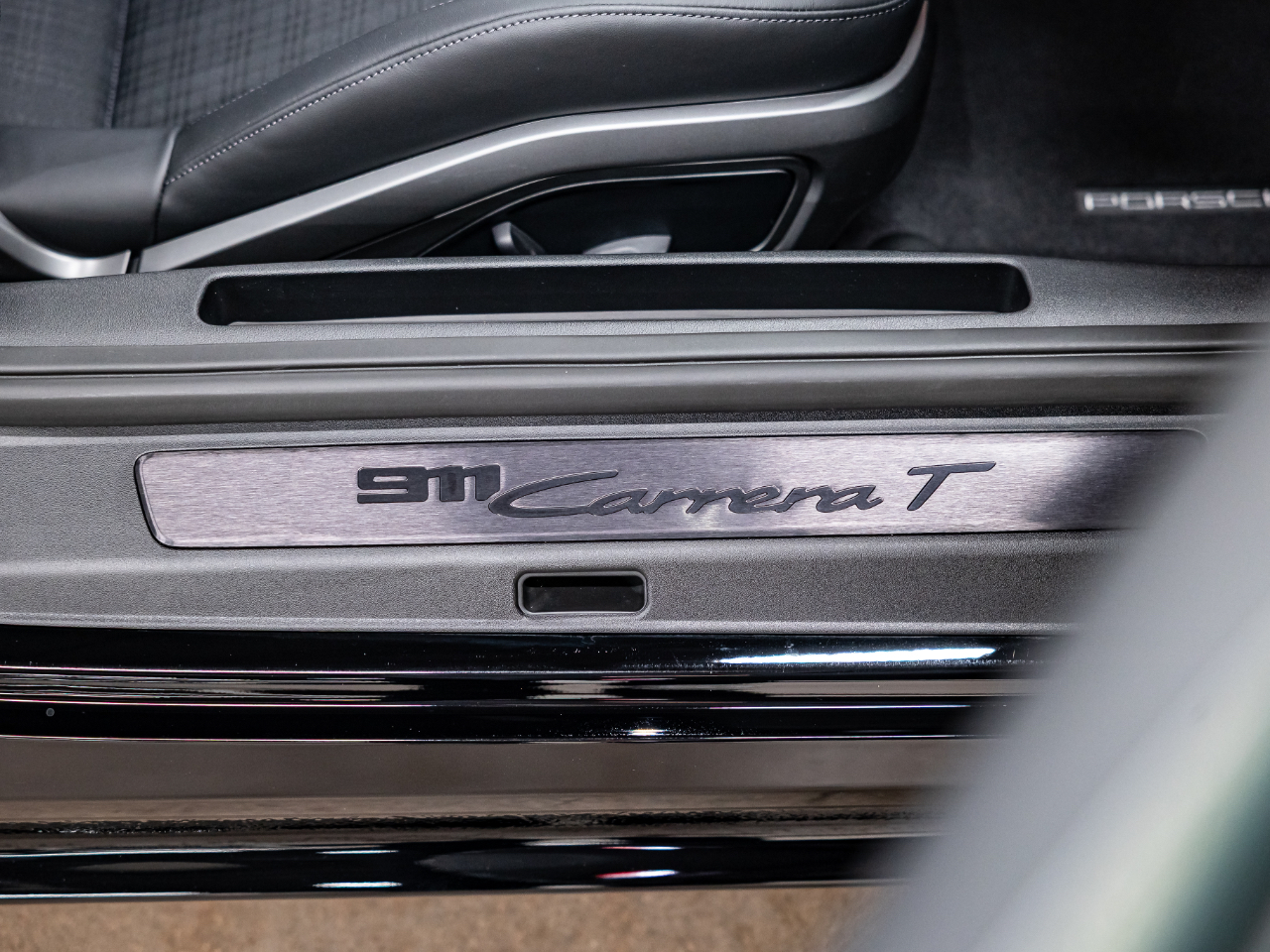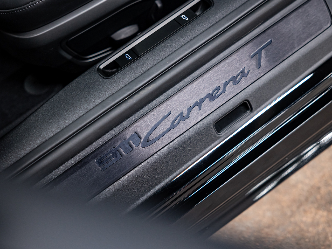 This Carrera T comes well-equipped with desirable factory options including the Aerokit, a heated GT Sport steering wheel in Race-Tex, rear seats, deletion of the rear model designation, and the ornamental Porsche crest. It currently rides on 20-inch front and 21-inch rear high-gloss wheels with highly polished surfaces, wrapped in Goodyear Eagle F1 tires.