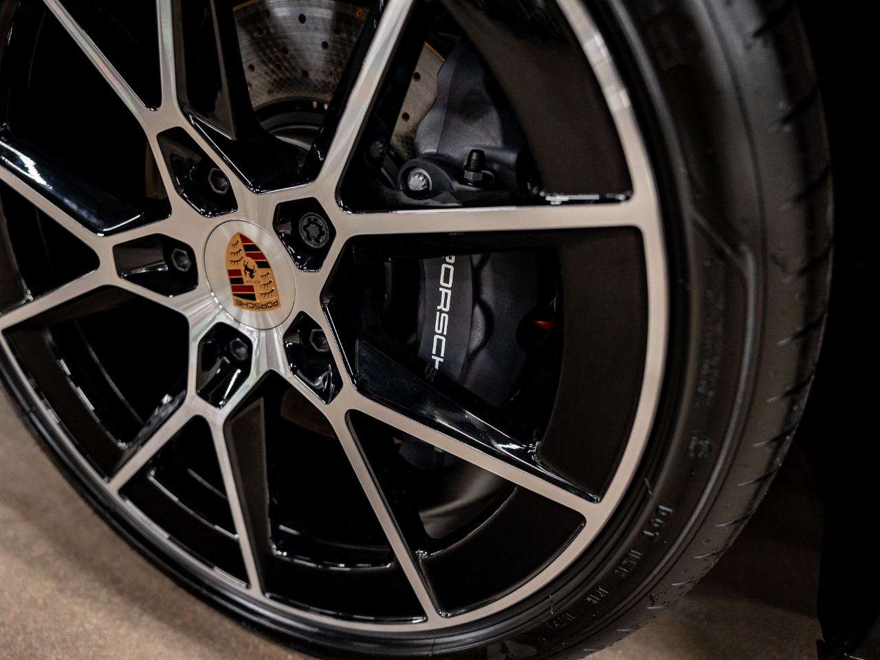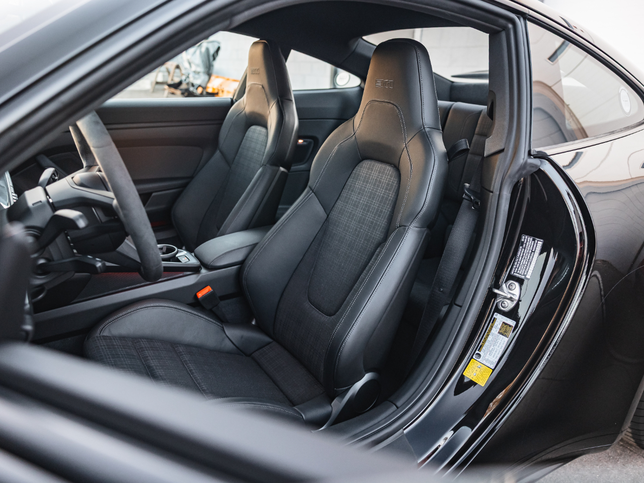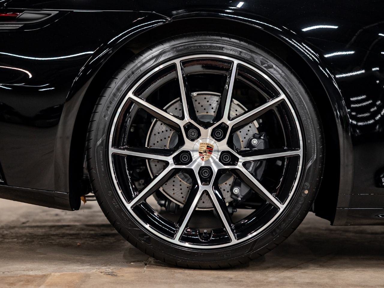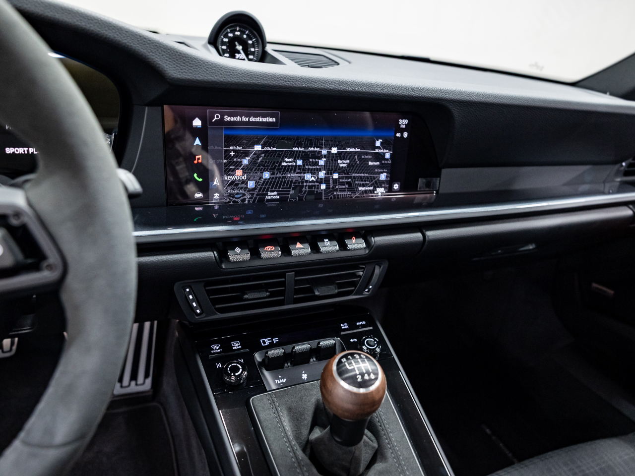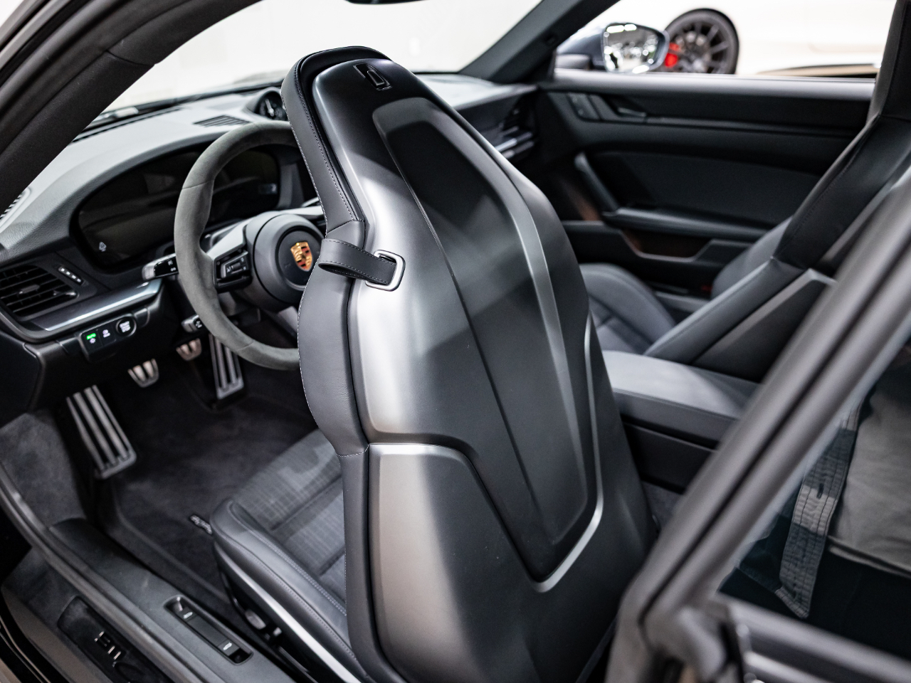 This Carrera T comes well-equipped with desirable factory options including the Aerokit, a heated GT Sport steering wheel in Race-Tex, rear seats, deletion of the rear model designation, and the ornamental Porsche crest. It currently rides on 20-inch front and 21-inch rear high-gloss wheels with highly polished surfaces, wrapped in Goodyear Eagle F1 tires.