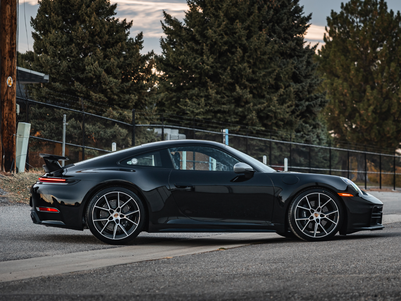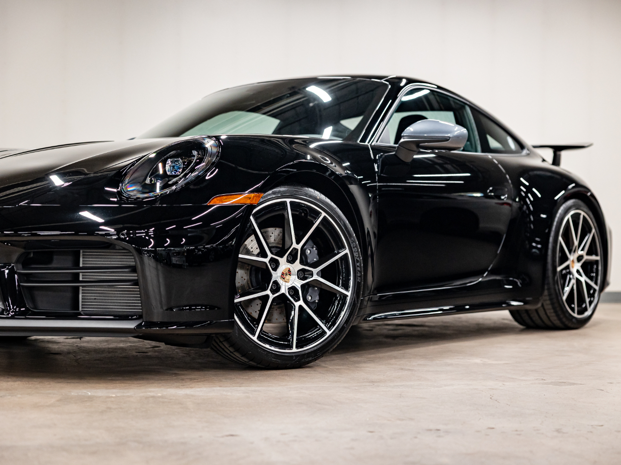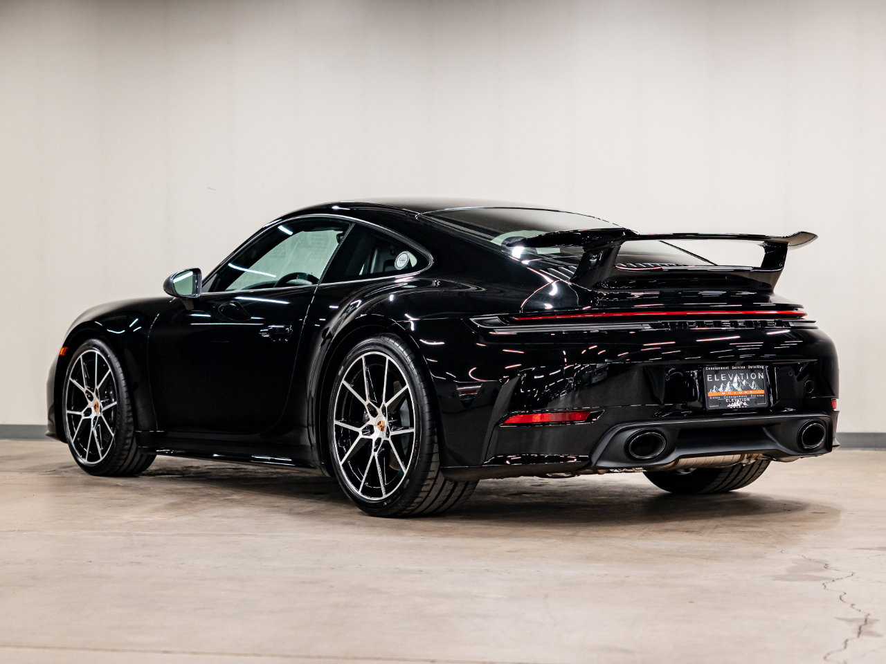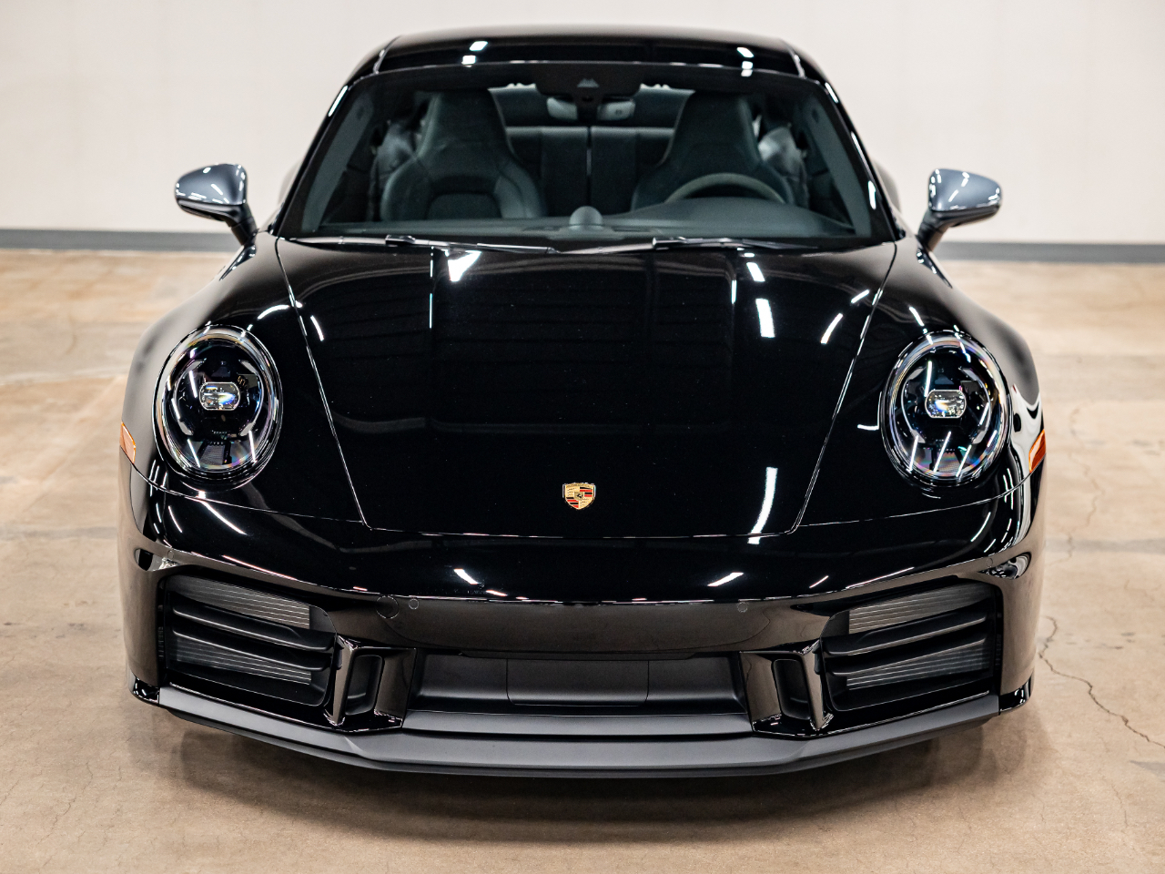 This Carrera T comes well-equipped with desirable factory options including the Aerokit, a heated GT Sport steering wheel in Race-Tex, rear seats, deletion of the rear model designation, and the ornamental Porsche crest. It currently rides on 20-inch front and 21-inch rear high-gloss wheels with highly polished surfaces, wrapped in Goodyear Eagle F1 tires.