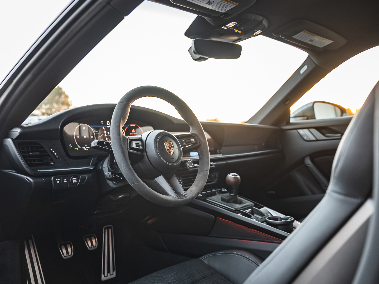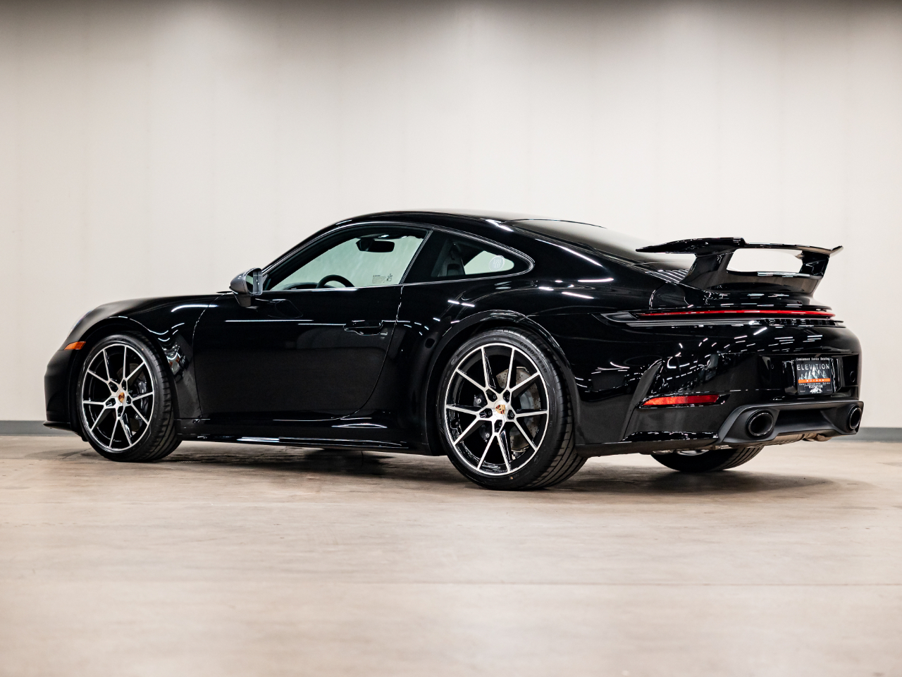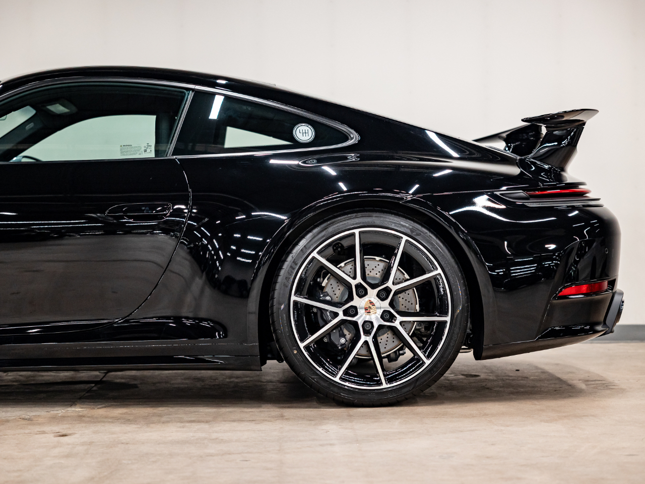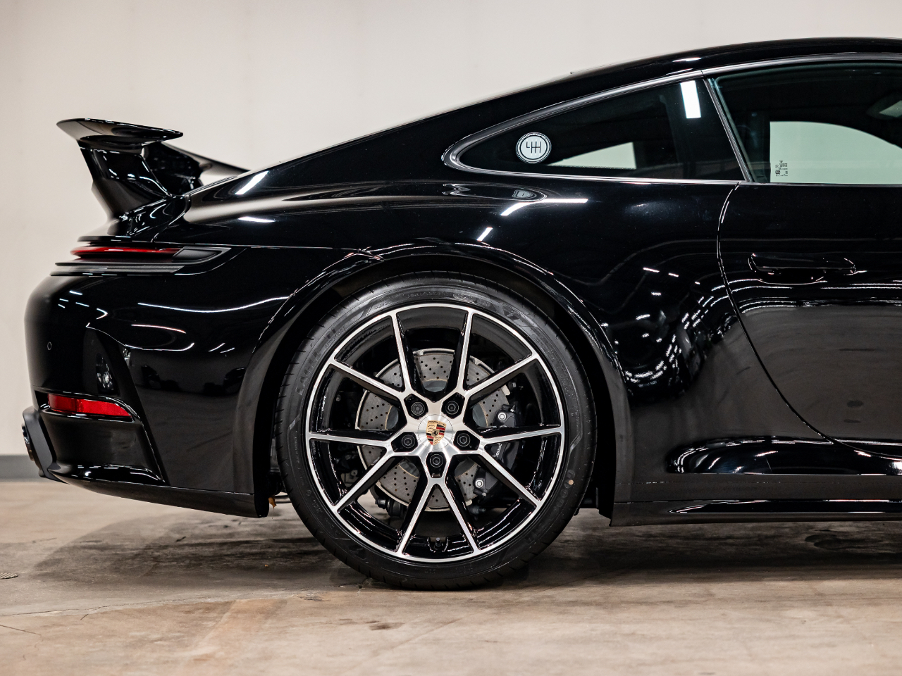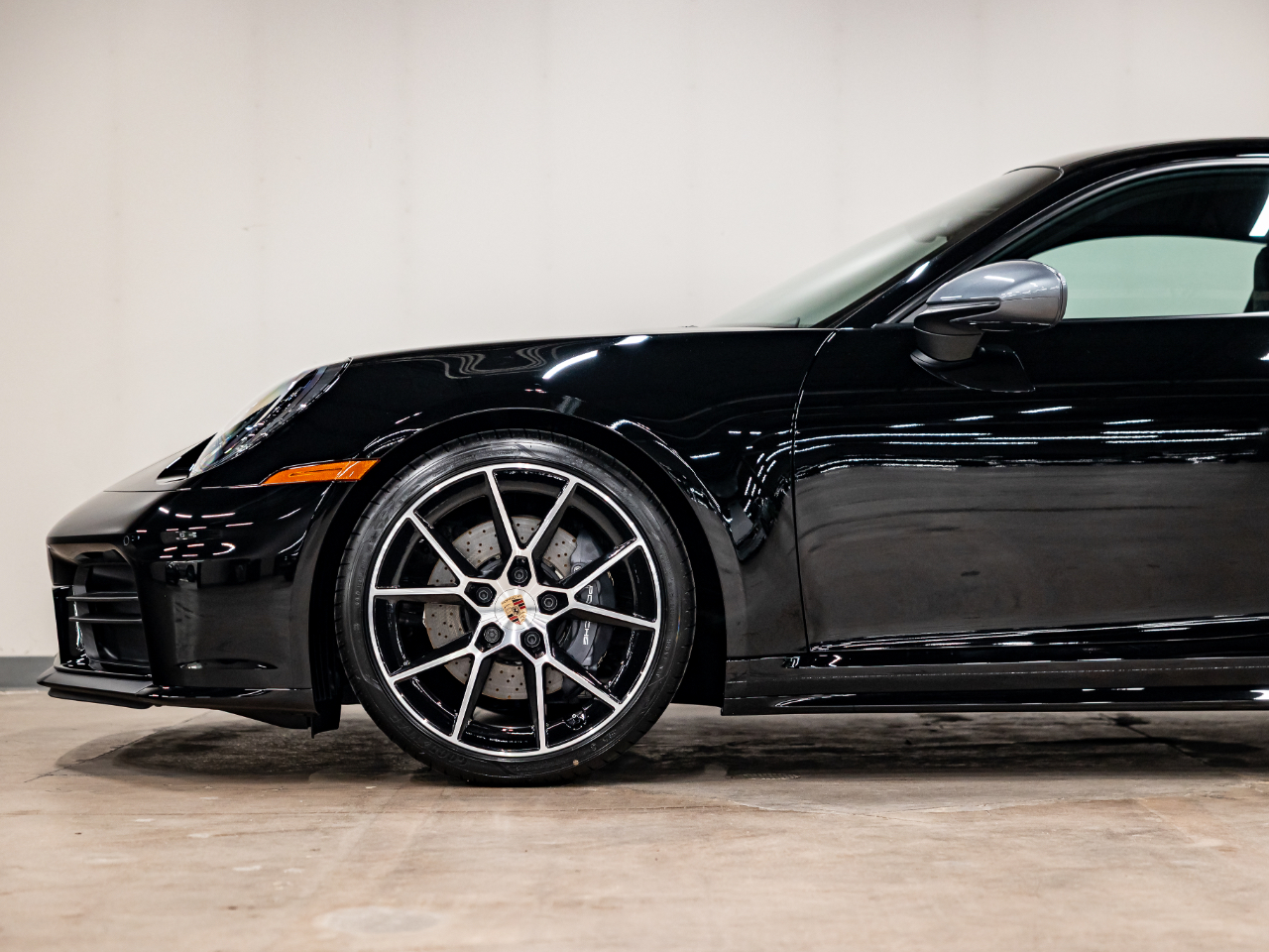 This Carrera T comes well-equipped with desirable factory options including the Aerokit, a heated GT Sport steering wheel in Race-Tex, rear seats, deletion of the rear model designation, and the ornamental Porsche crest. It currently rides on 20-inch front and 21-inch rear high-gloss wheels with highly polished surfaces, wrapped in Goodyear Eagle F1 tires.