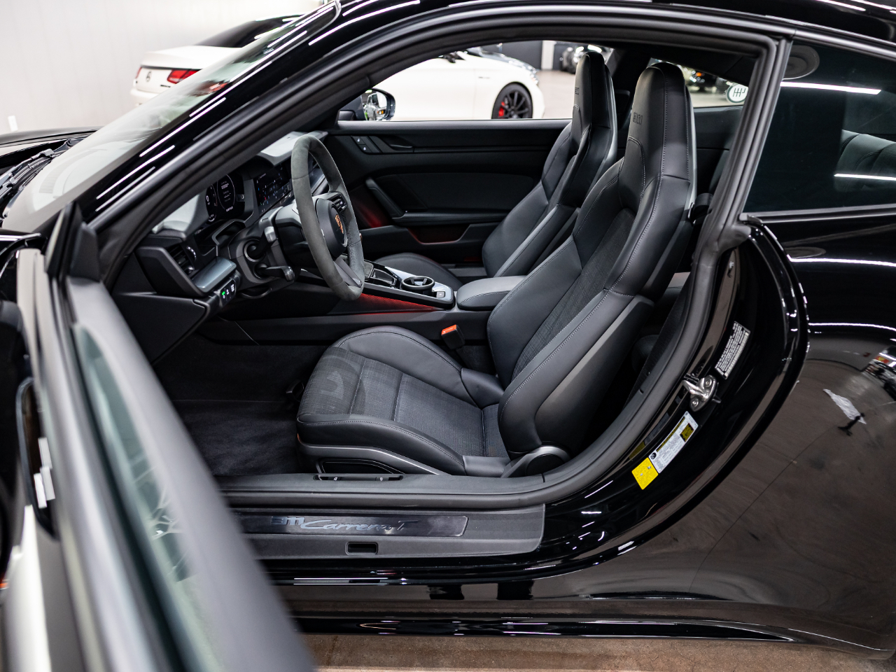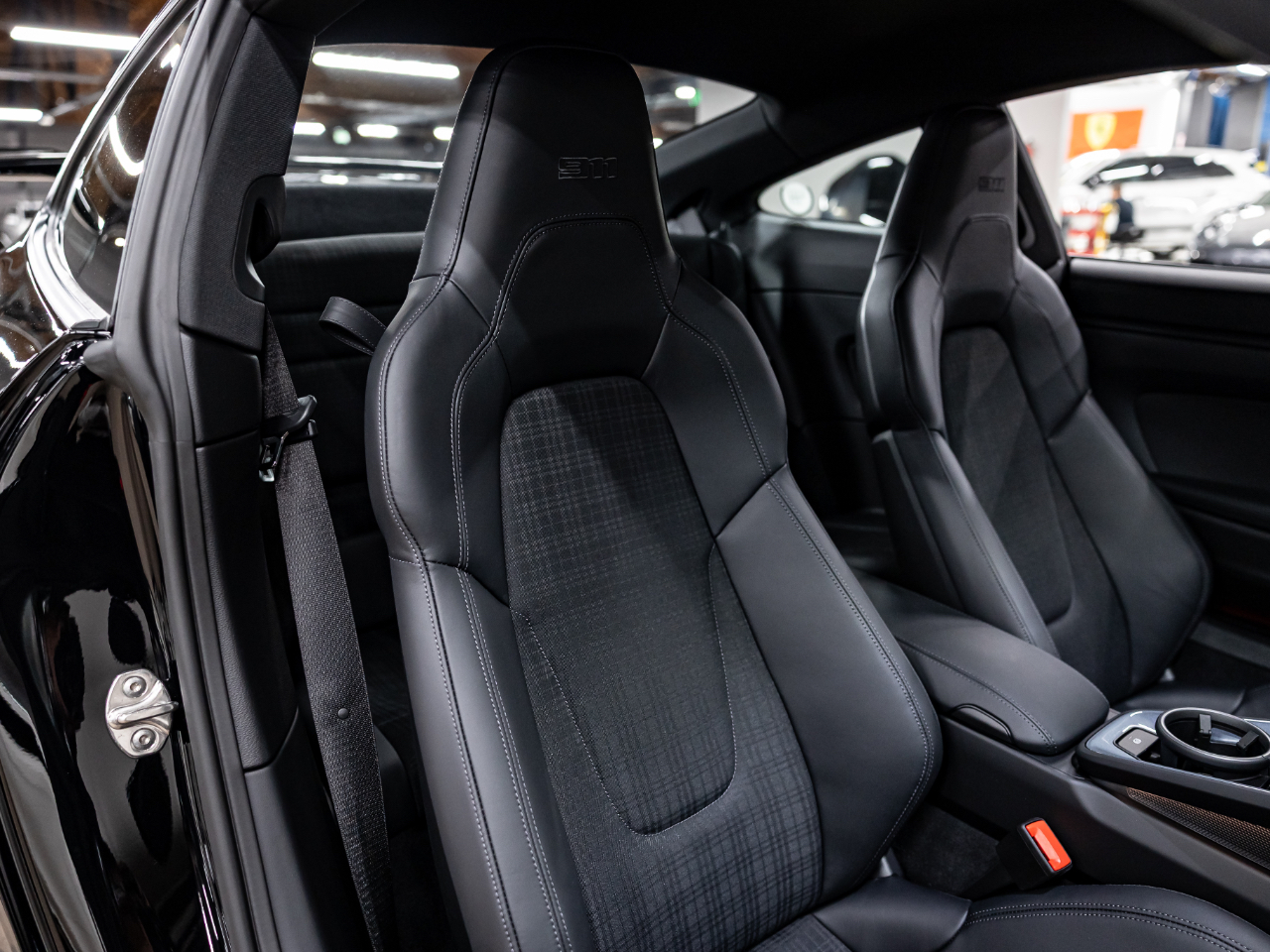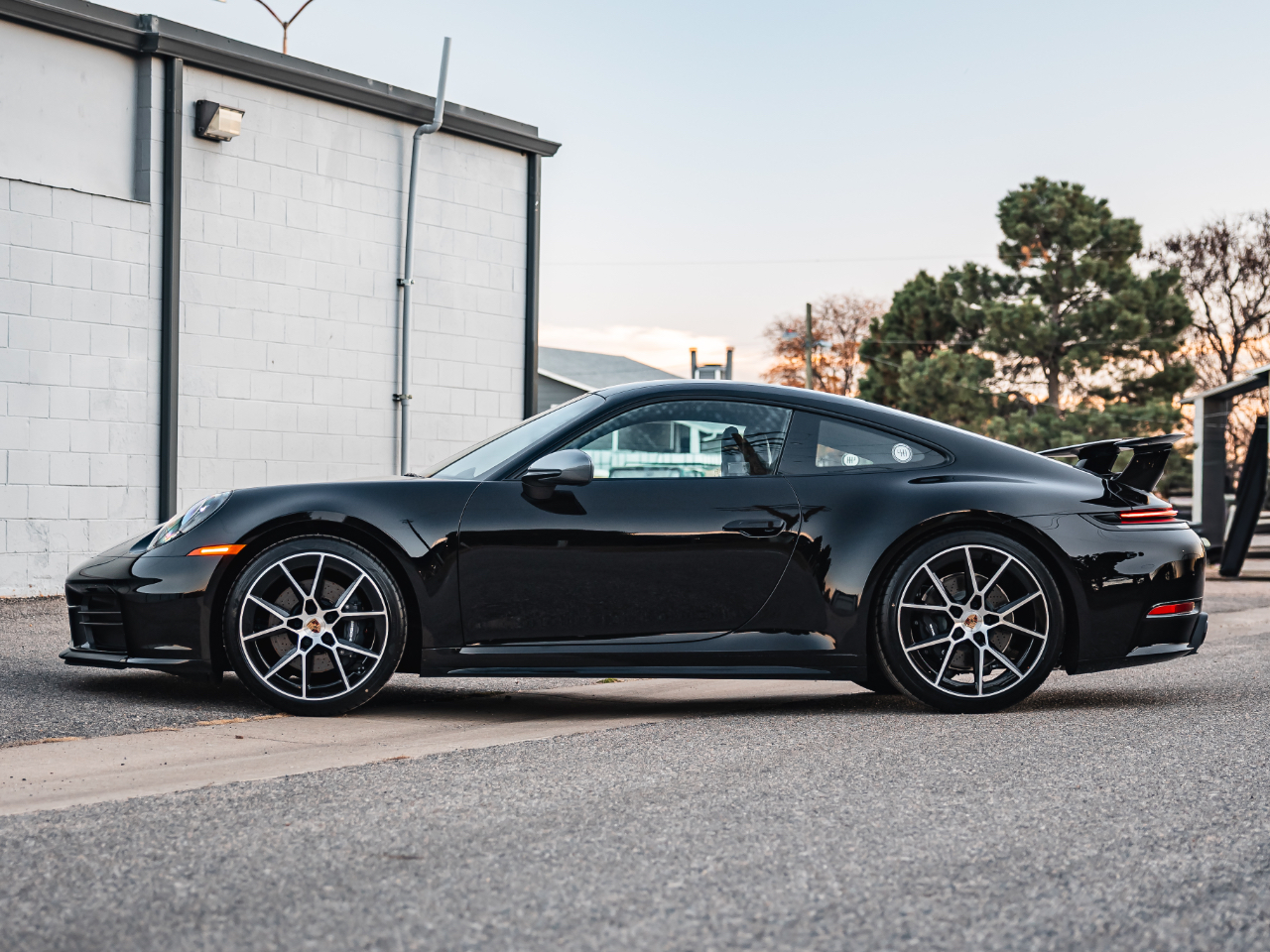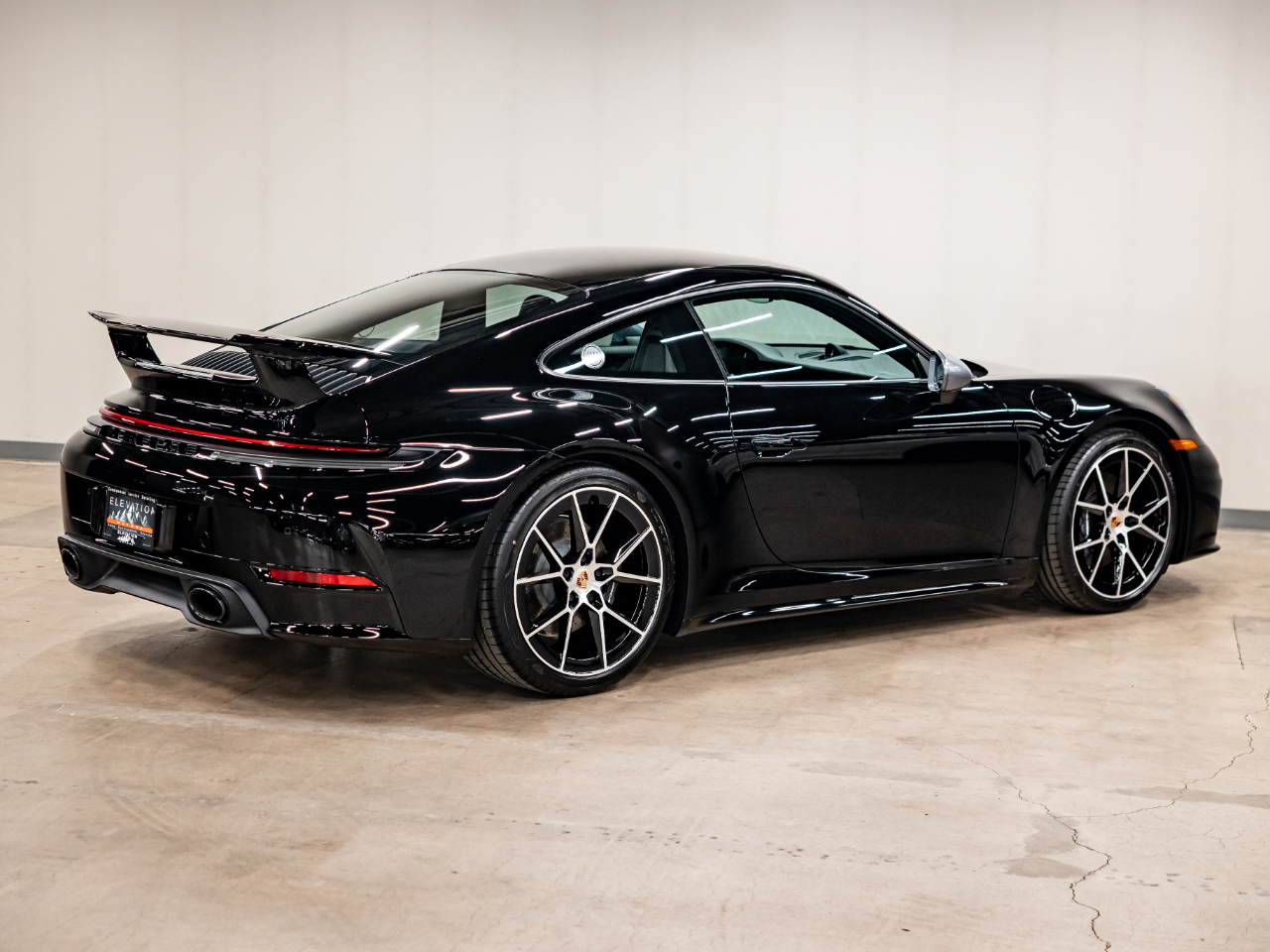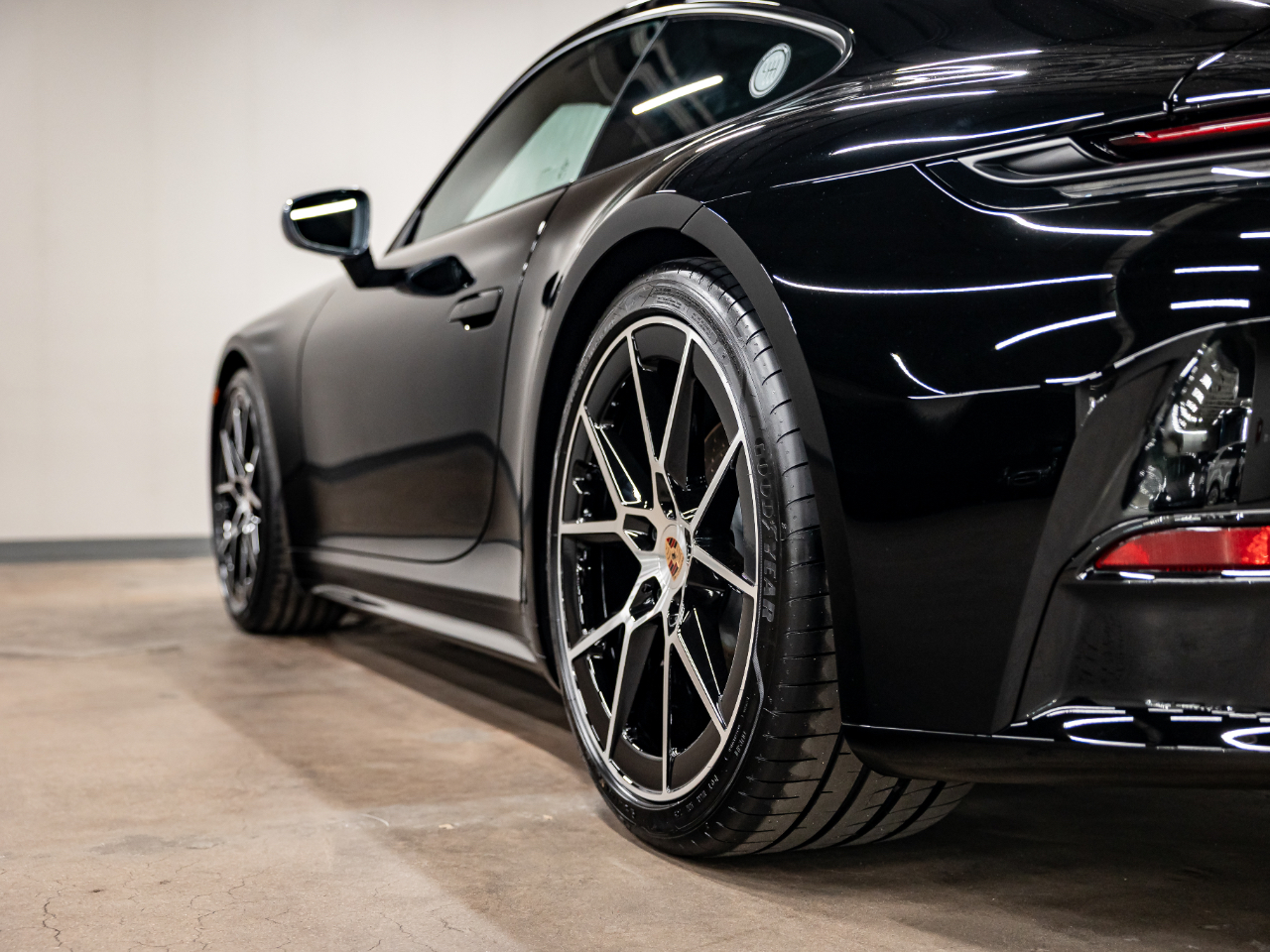 This Carrera T comes well-equipped with desirable factory options including the Aerokit, a heated GT Sport steering wheel in Race-Tex, rear seats, deletion of the rear model designation, and the ornamental Porsche crest. It currently rides on 20-inch front and 21-inch rear high-gloss wheels with highly polished surfaces, wrapped in Goodyear Eagle F1 tires.