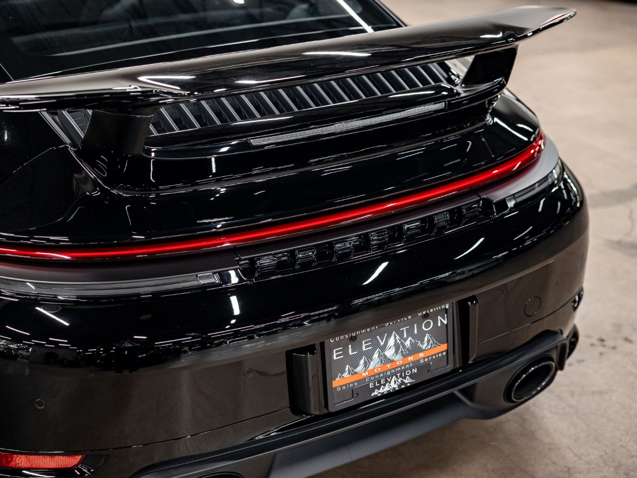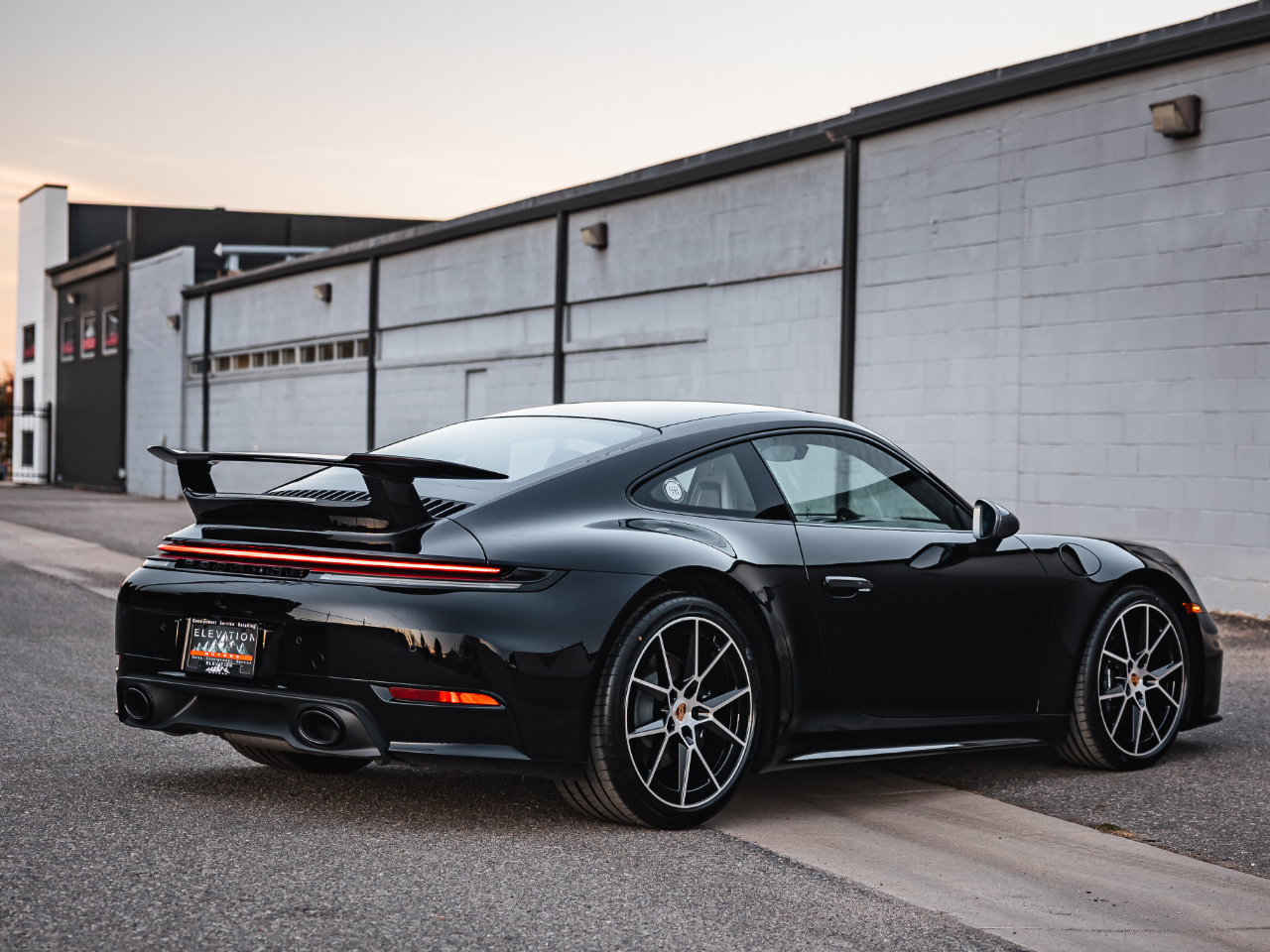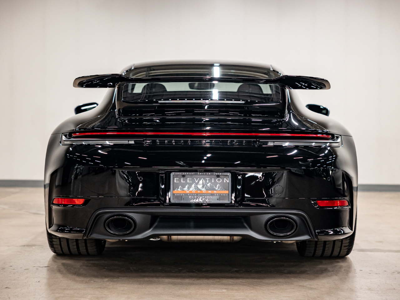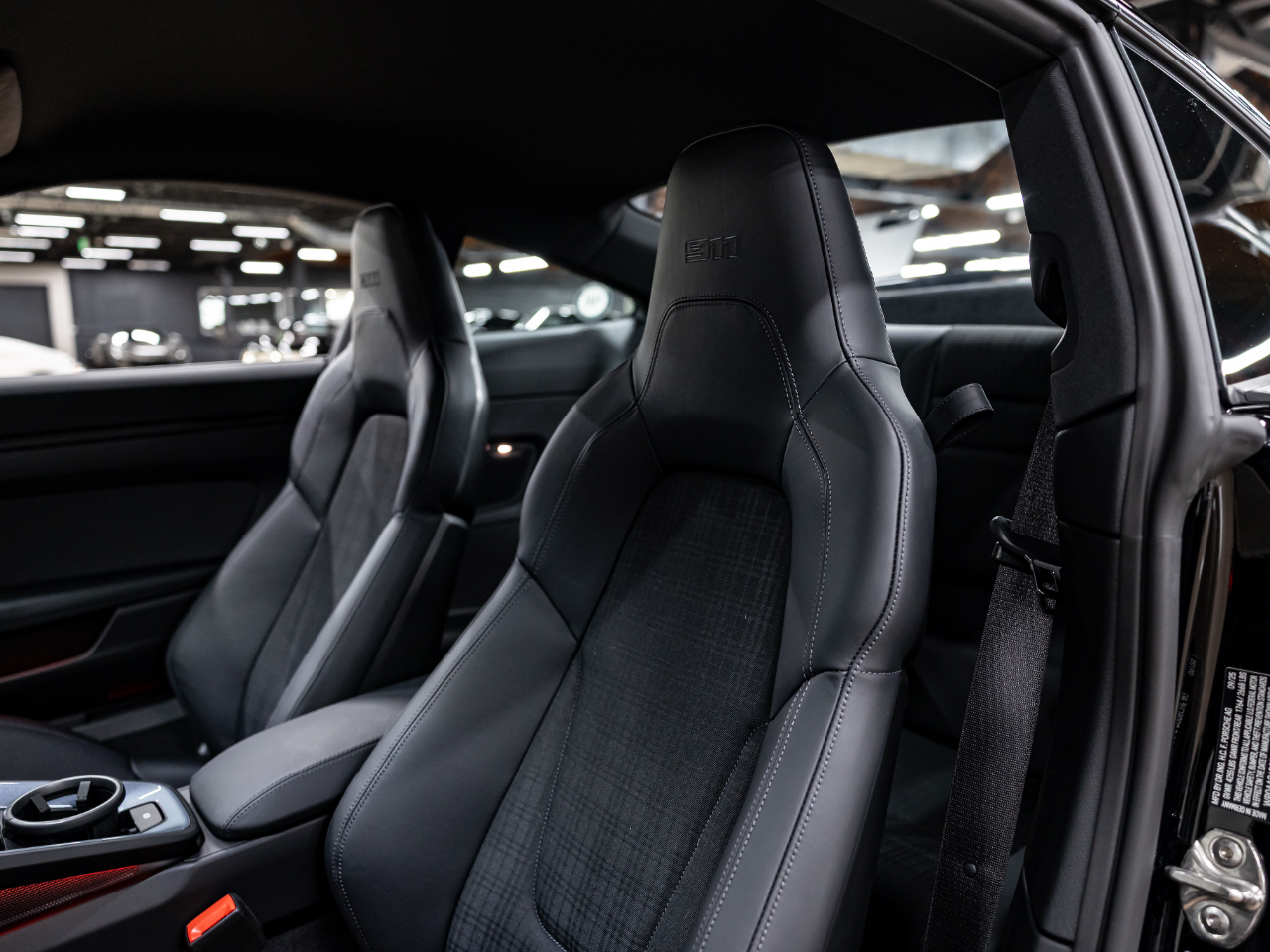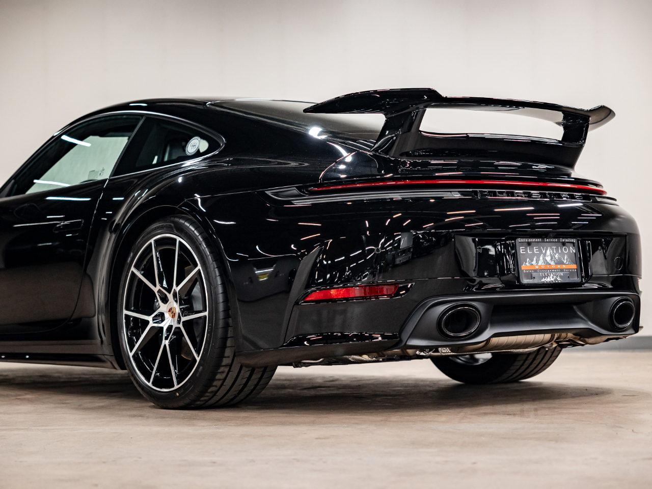 This Carrera T comes well-equipped with desirable factory options including the Aerokit, a heated GT Sport steering wheel in Race-Tex, rear seats, deletion of the rear model designation, and the ornamental Porsche crest. It currently rides on 20-inch front and 21-inch rear high-gloss wheels with highly polished surfaces, wrapped in Goodyear Eagle F1 tires.