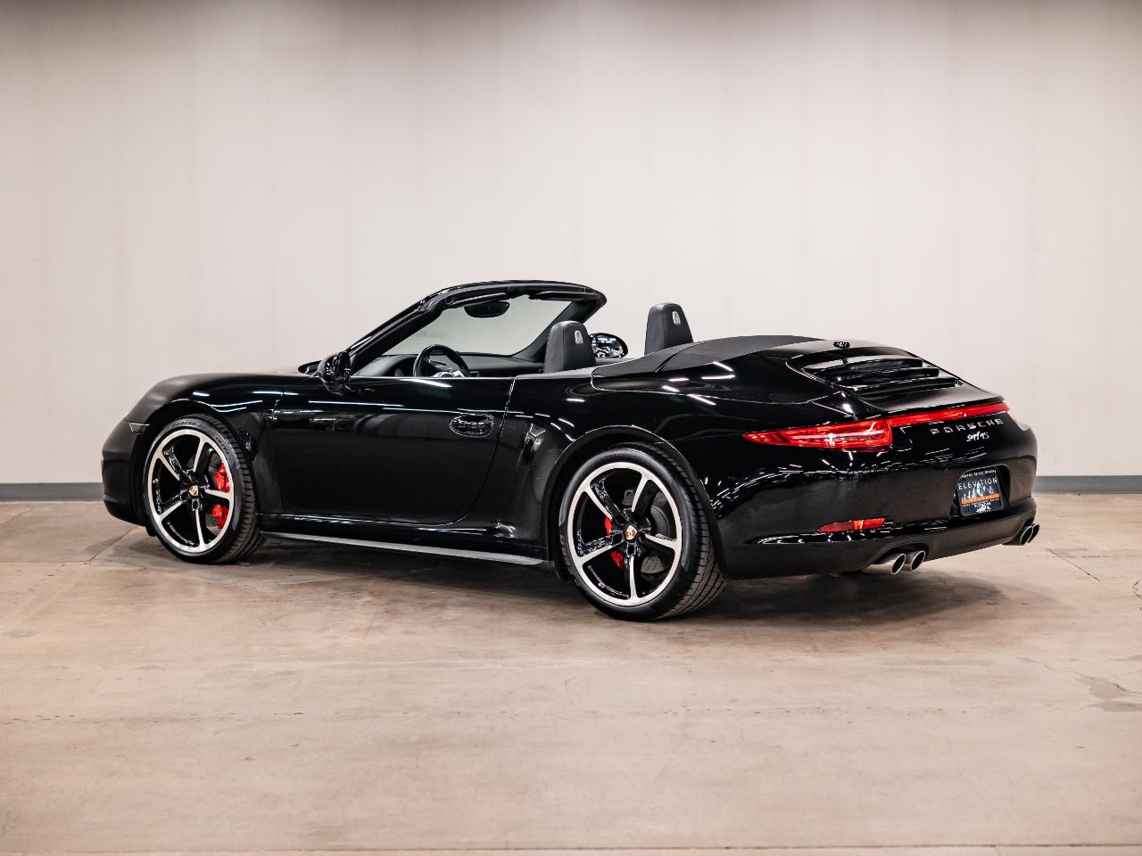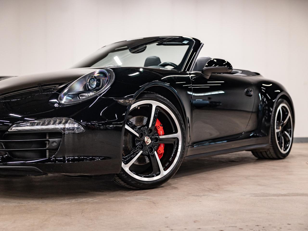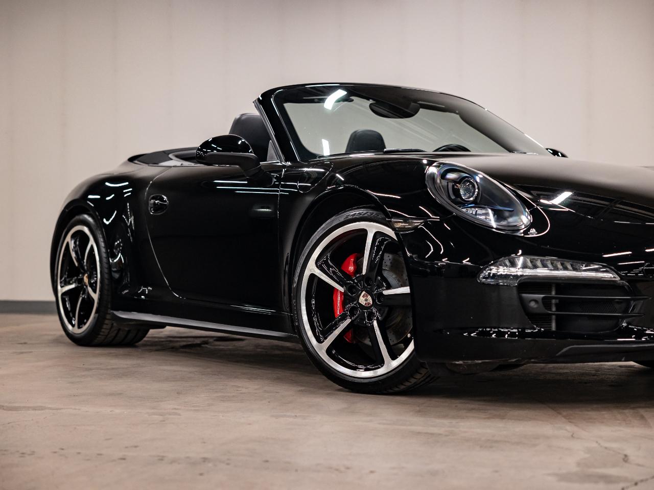 This 2013 Porsche 911 Carrera 4S Cabriolet is finished in Black over a Black leather interior. Power comes from a 3.8-liter flat-six engine producing 400 horsepower and 325 lb-ft of torque, sent to all four wheels through a 7-speed PDK dual-clutch transmission and Porsche’s all-wheel-drive system.